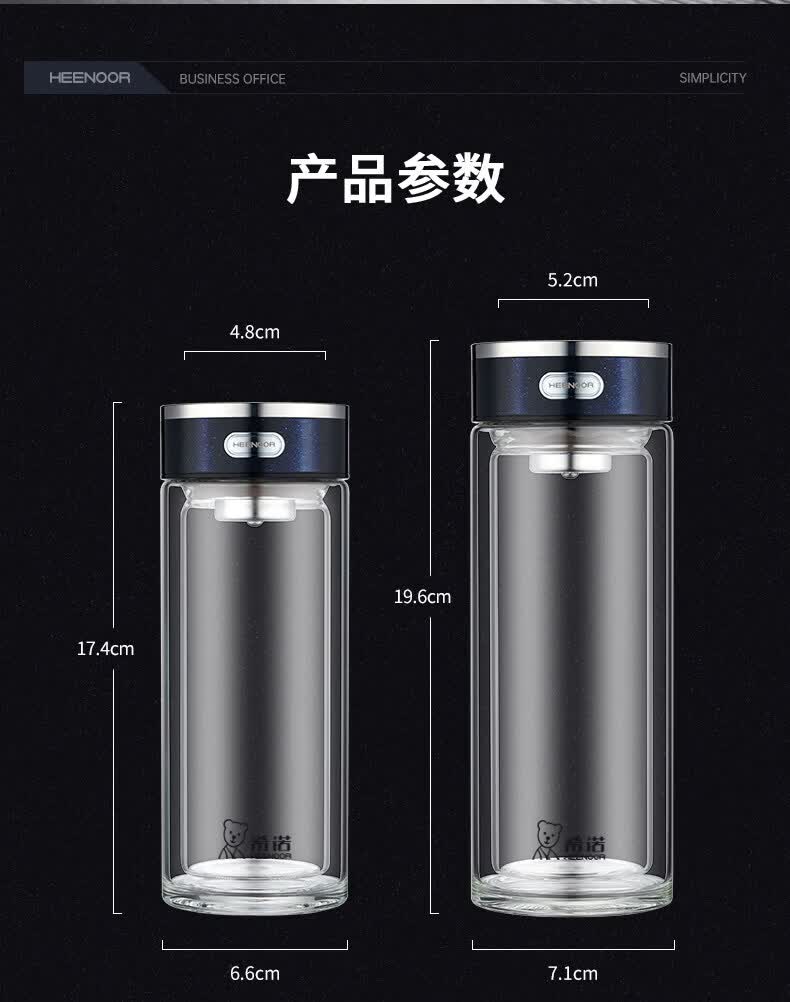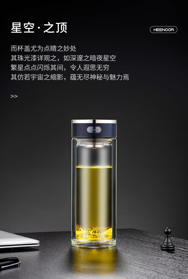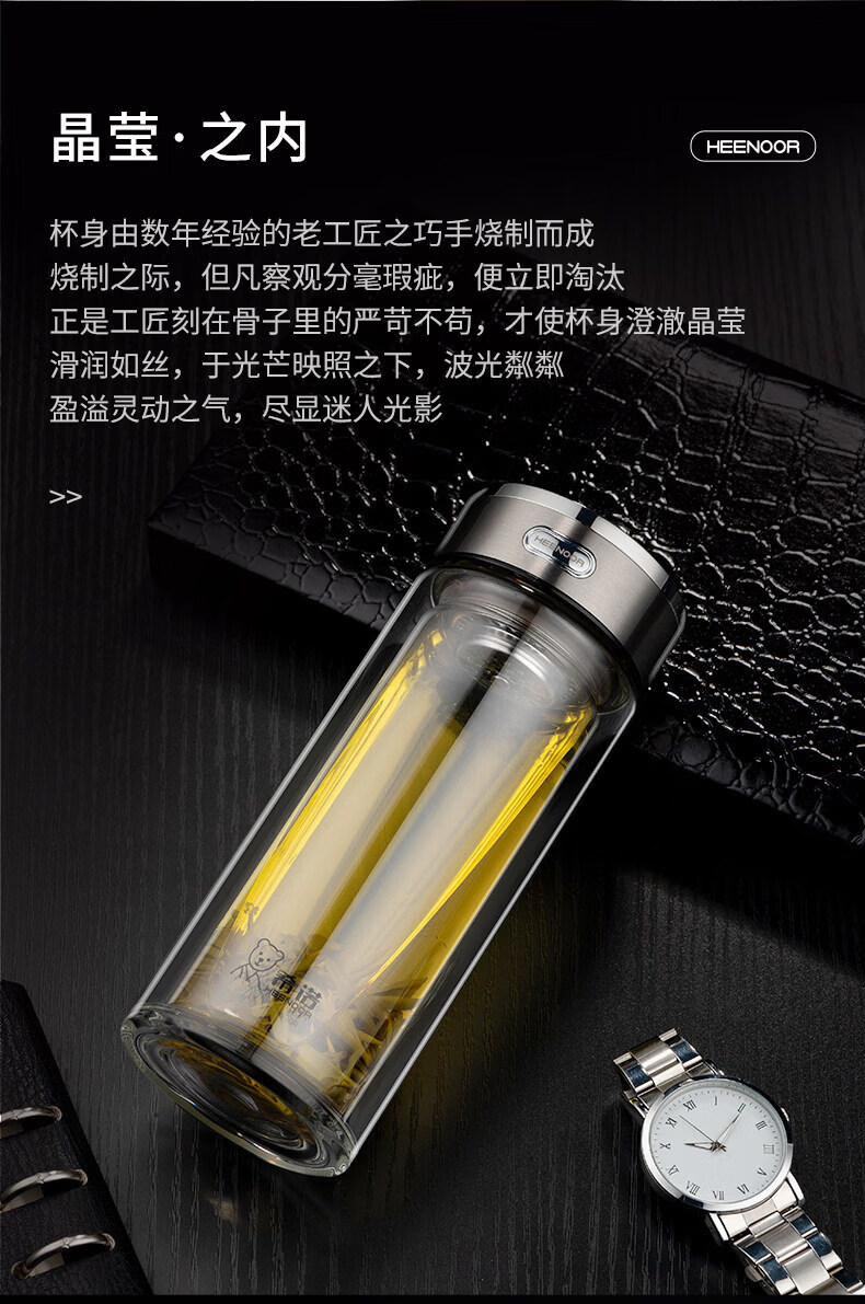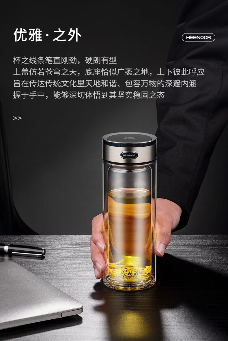 希诺(heenoor)双层玻璃杯男士大容量商务泡茶杯办公室水杯家用喝水便携杯子女 紫罗兰360ml XN-L601 双层高硼硅玻璃