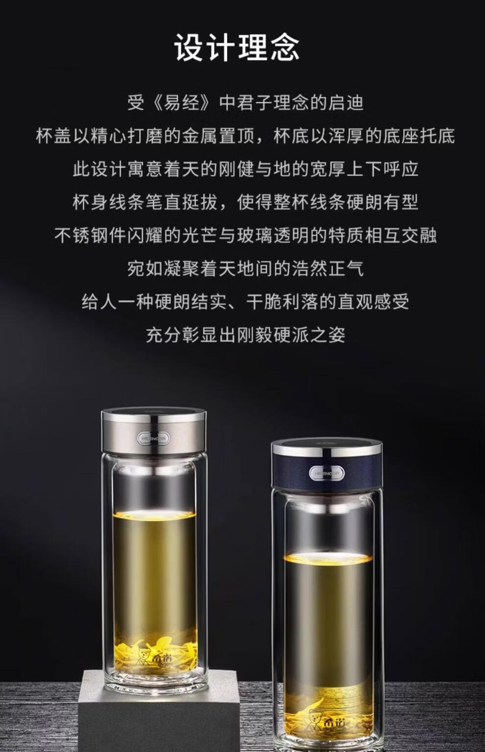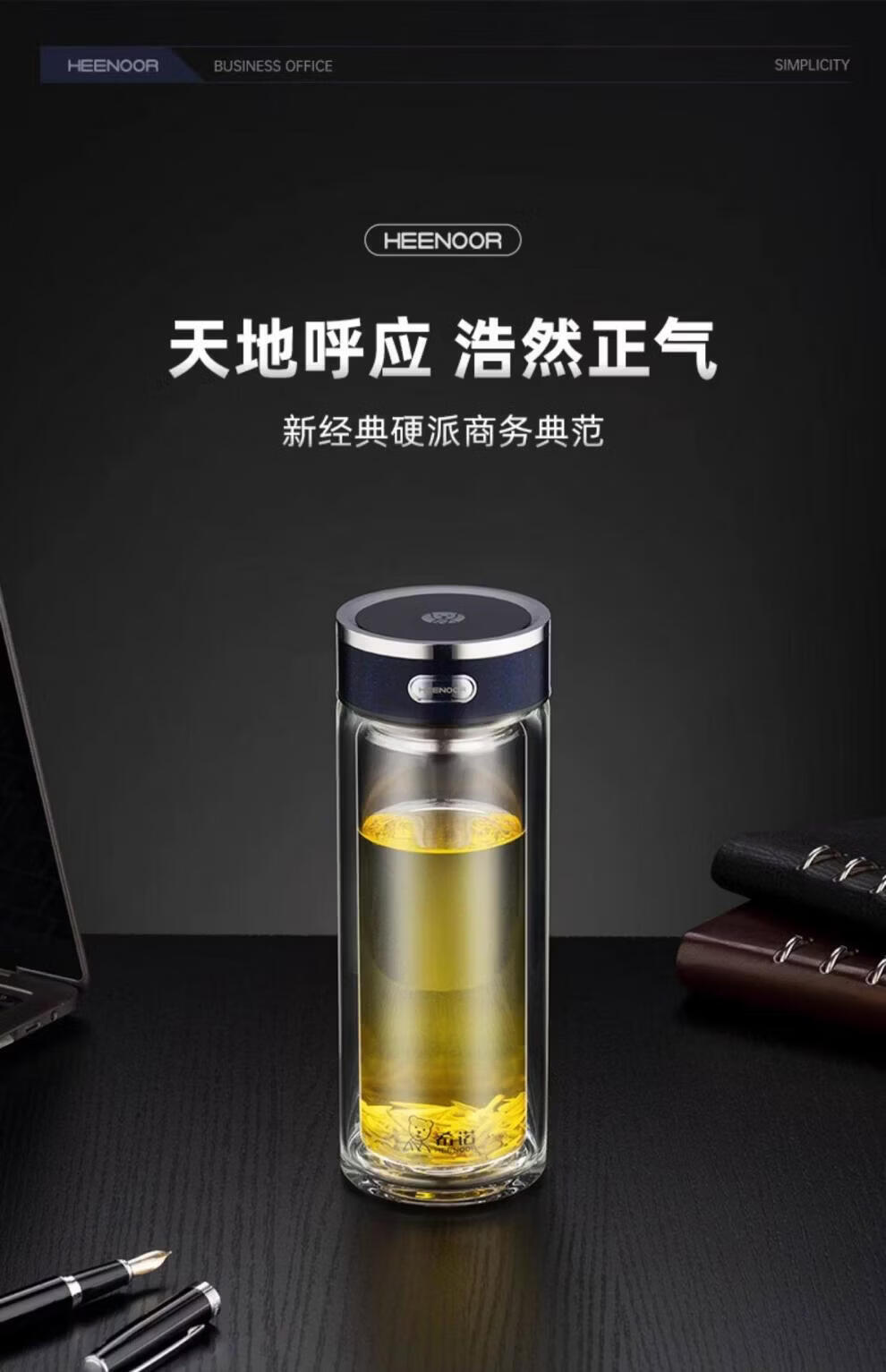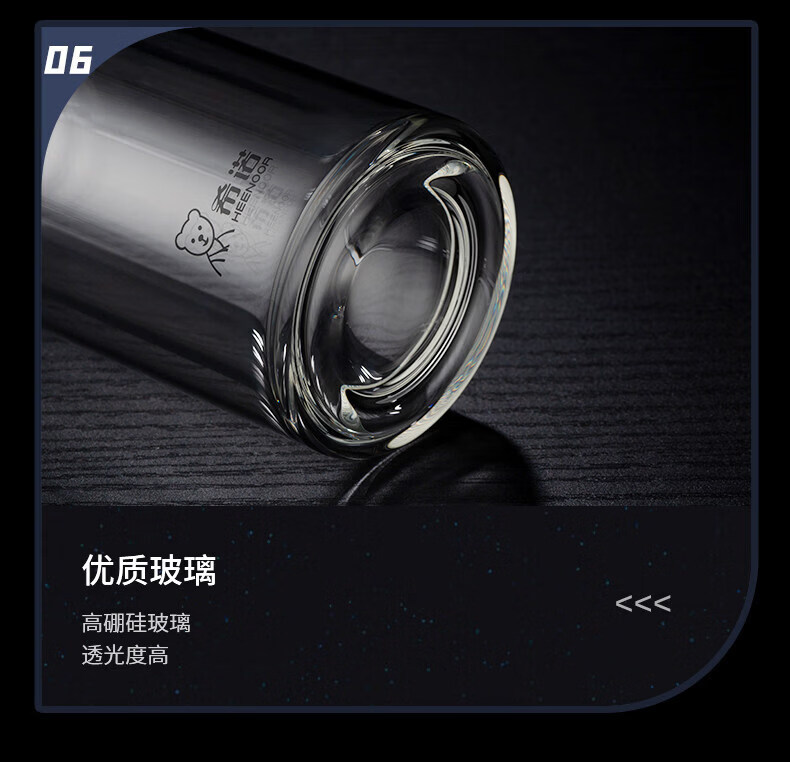 希诺(heenoor)双层玻璃杯男士大容量商务泡茶杯办公室水杯家用喝水便携杯子女 紫罗兰360ml XN-L601 双层高硼硅玻璃