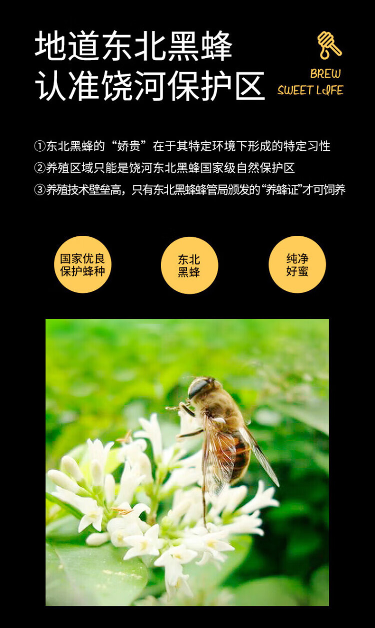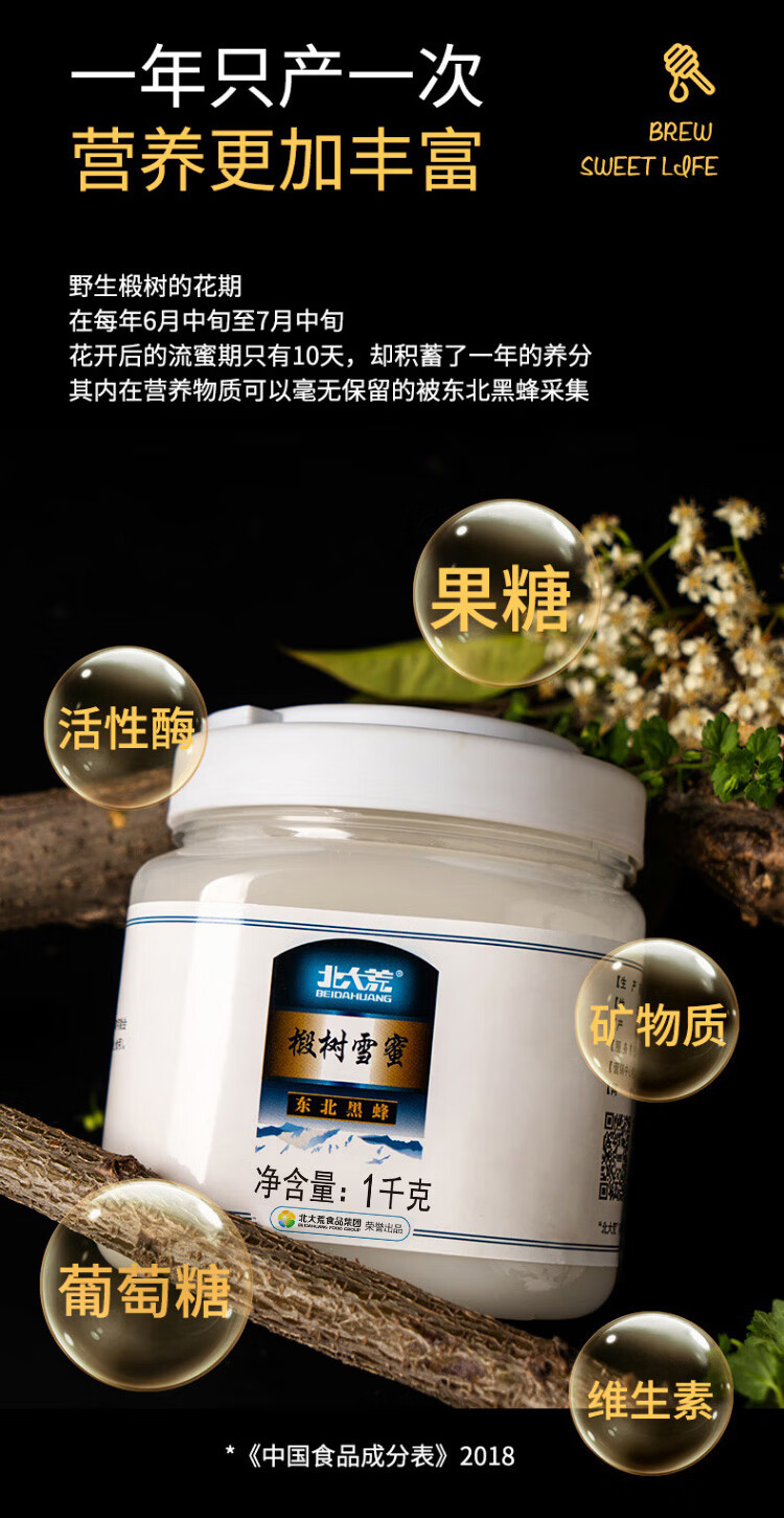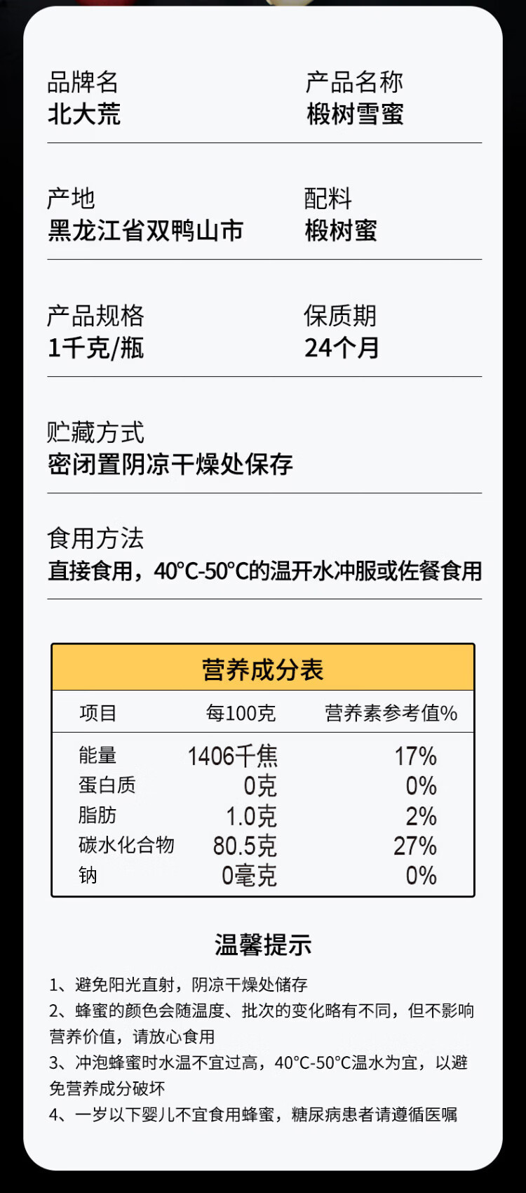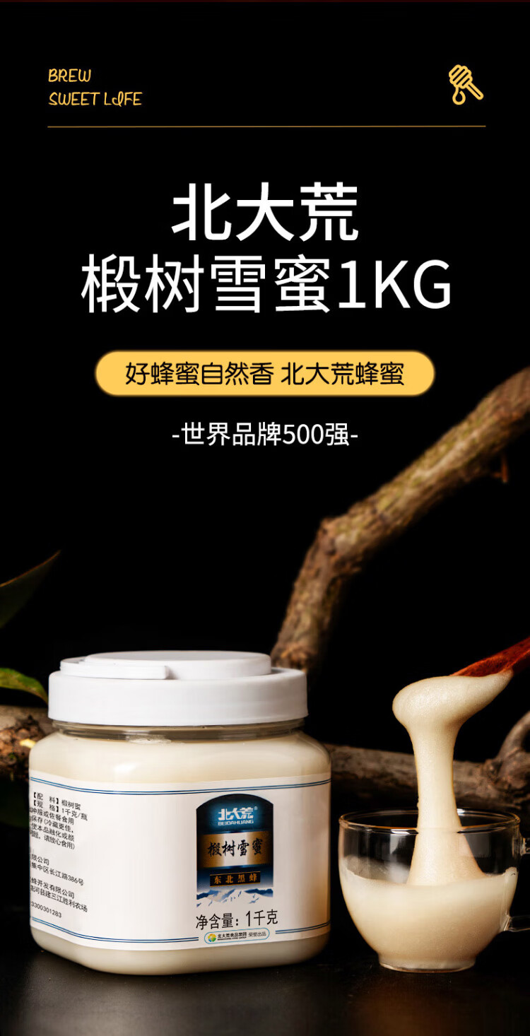 北大荒 东北黑蜂 椴树雪蜜 纯蜂蜜1000g 源产地 冲饮搭档