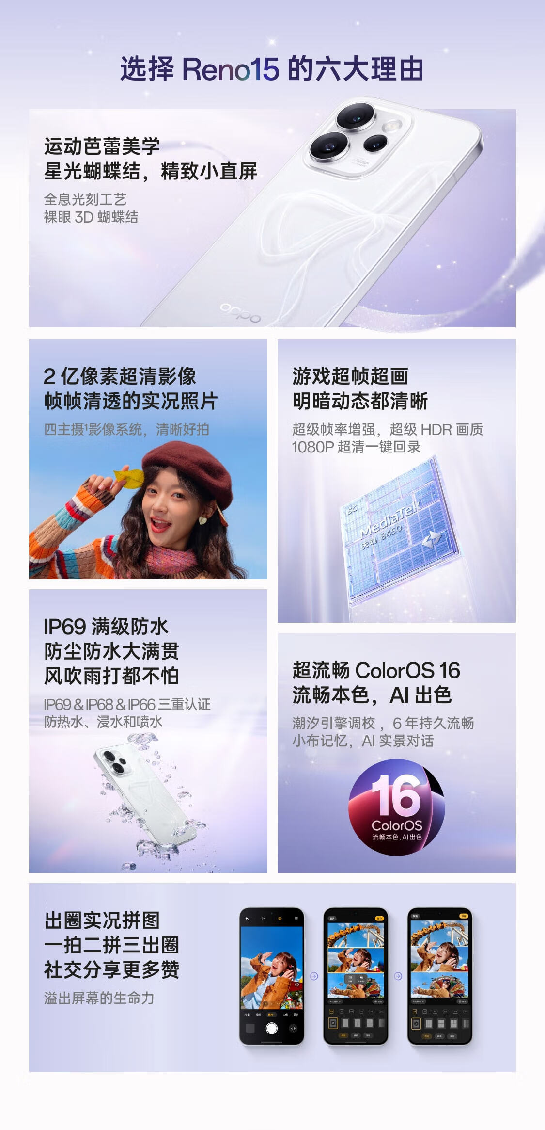 OPPO【国家补贴减15%】 OPPO Reno15 星光蝴蝶结 2亿像素超清影像 超出圈实况 5GAI拍照手机reno15 星光蝴蝶结 12GB+512GB