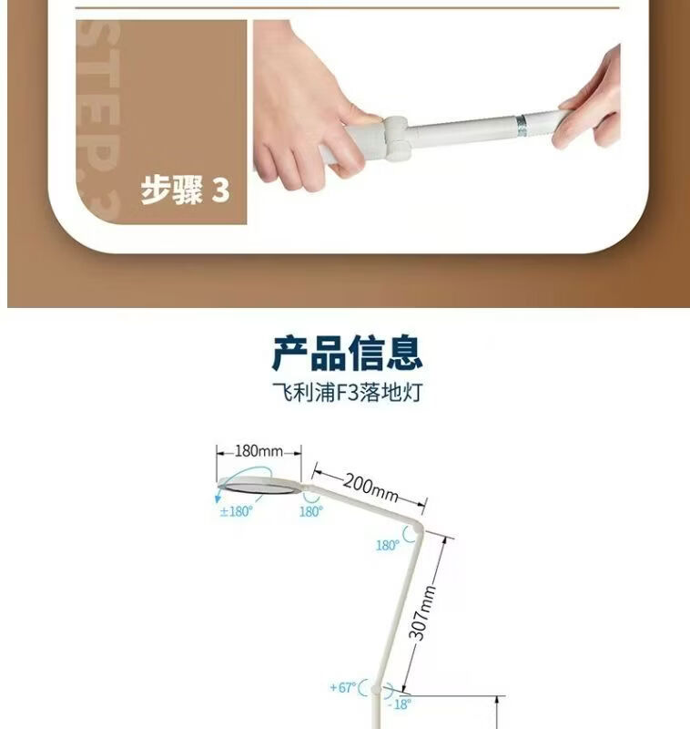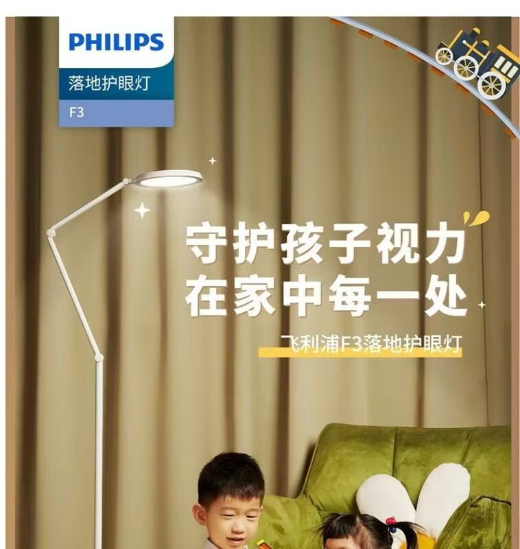 飞利浦(PHILIPS)国AA级护眼儿童房阅读钢琴照明灯LED床头客厅卧室舒服照明灯 F3落地阅读灯 71667 F3落地阅读灯