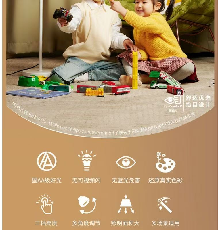 飞利浦(PHILIPS)LED台灯儿童阅读全光谱床头客厅卧室国AA近视防控 F2护眼落地灯 TFS261 F2落地灯