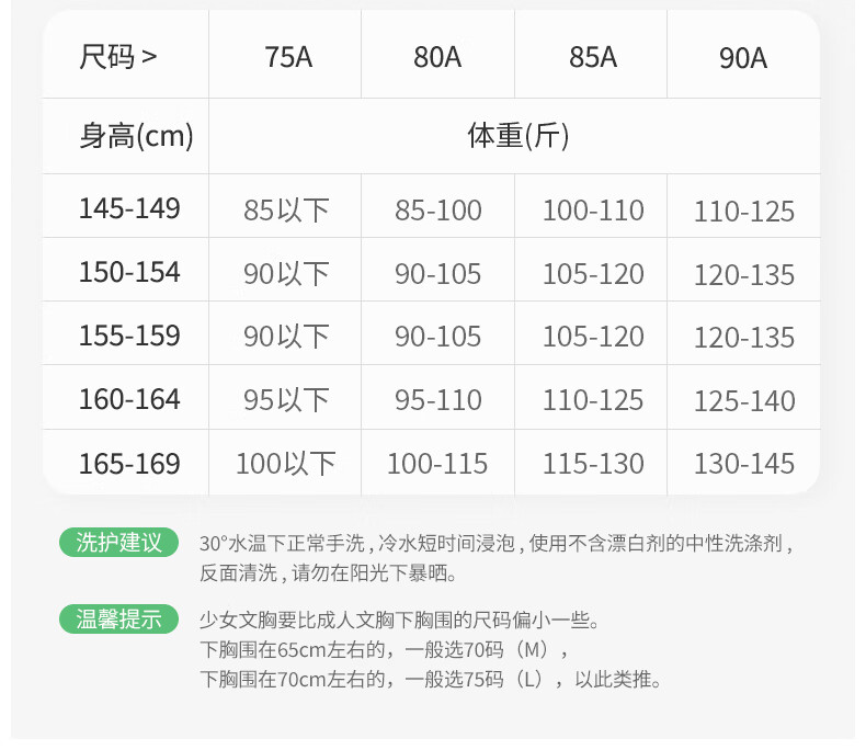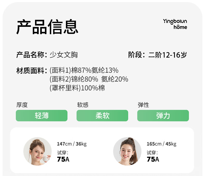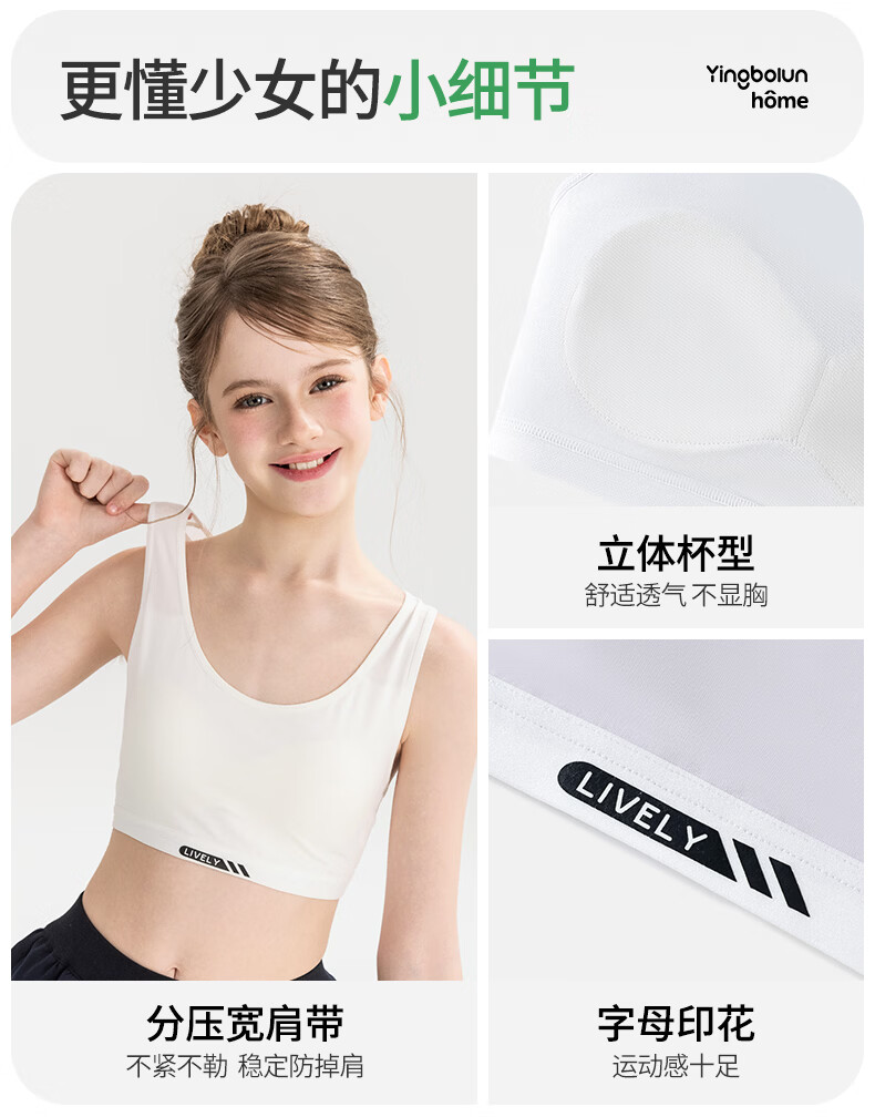 英博伦少女发育内衣13岁女童初高中生文胸二阶段青春期运动背心 30219奶白 均码 75