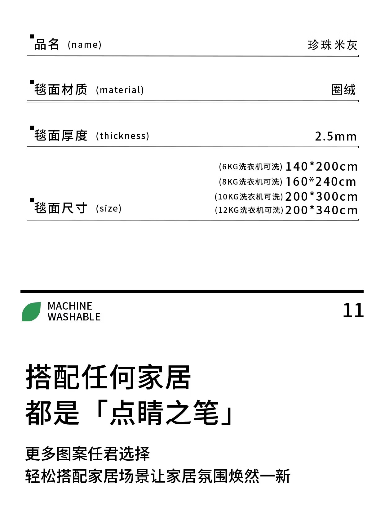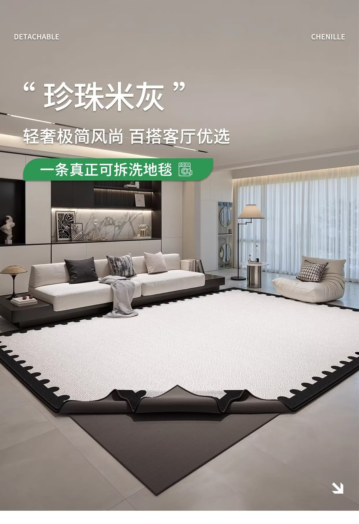 Y U-LIVE可拆洗地毯客厅卧室2026新款大面积全铺极简风轻奢高级隔音地 可拆洗-圈绒-珍珠米灰 140x200CM(毯面+4mm标准底)
