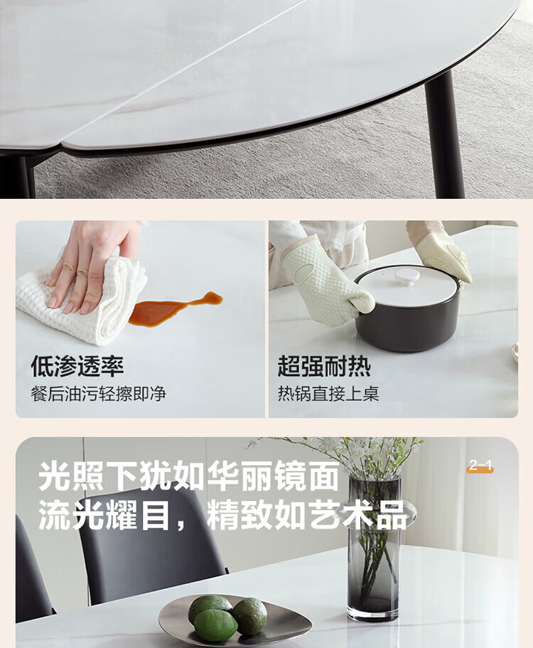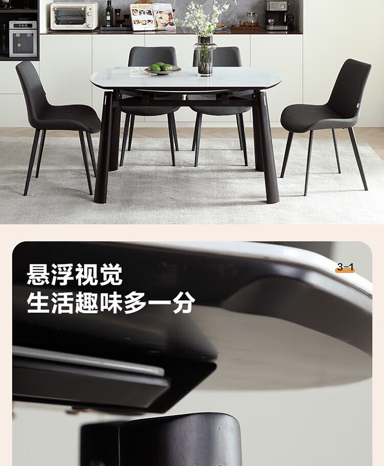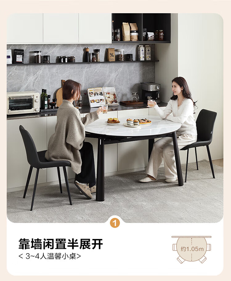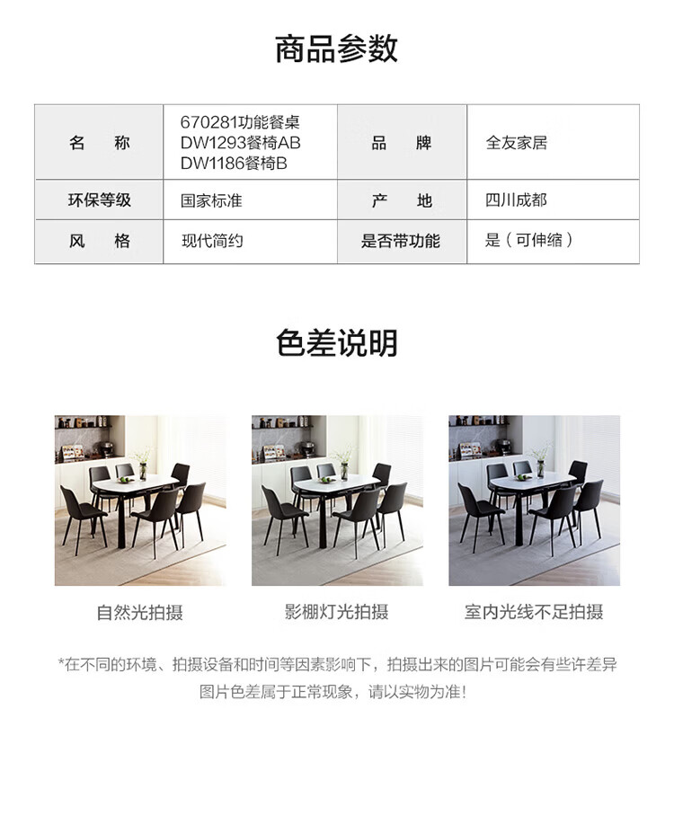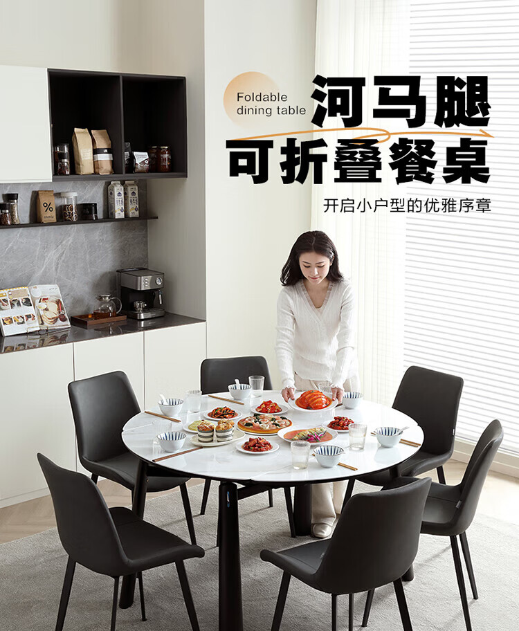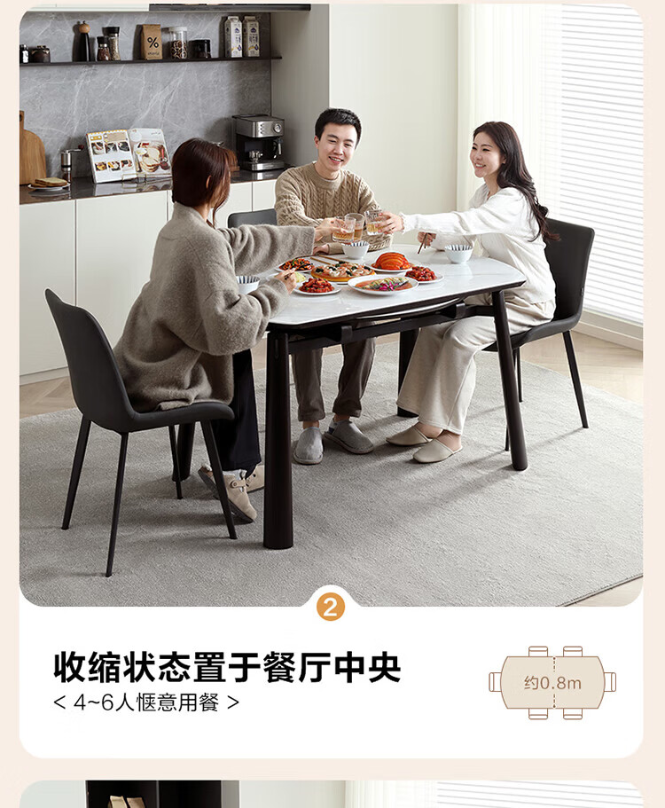 全友家居 现代奶油风餐桌椅子全套客厅多功能可折叠伸缩饭桌家用4-6人