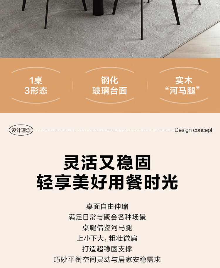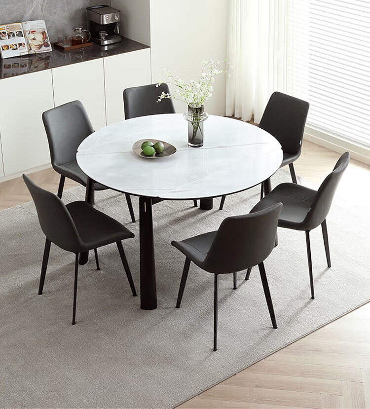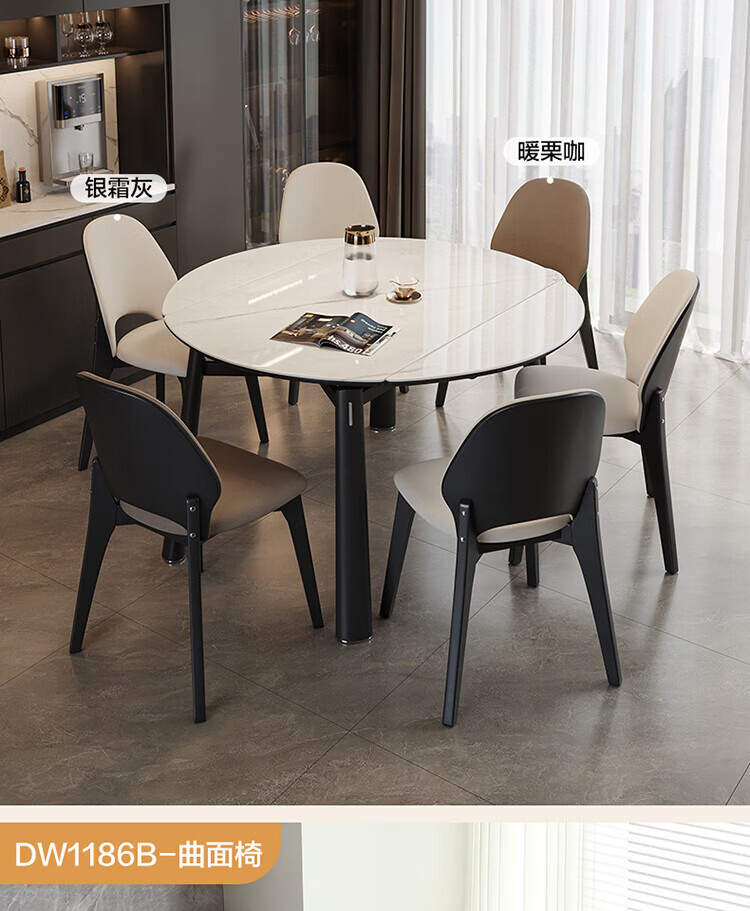 全友(QUANU)【迷瞪清仓货盘】餐桌玻璃桌面可折叠圆形家用餐桌一桌六椅组合 玻璃|功能餐桌+曲面椅*6