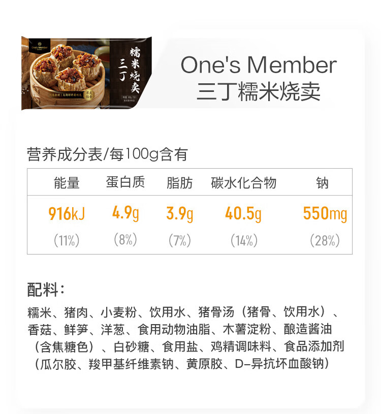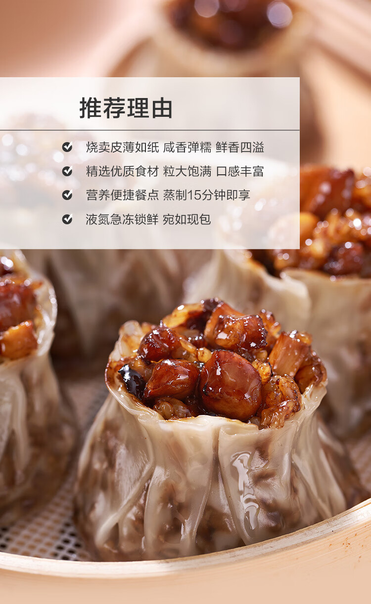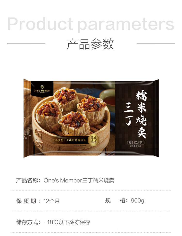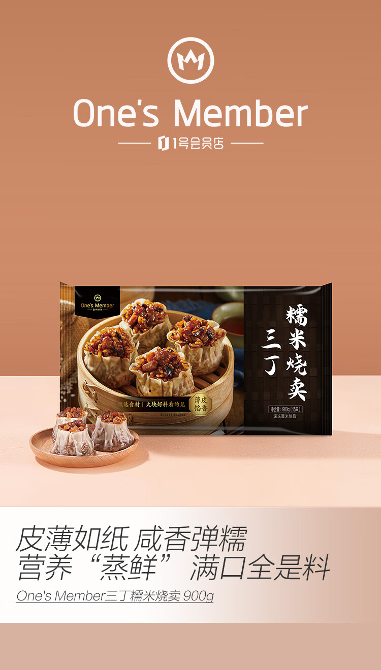 1号会员店(One's Member) 三丁糯米烧卖 900g(15只) 纸皮烧卖营养早餐便捷液氮锁鲜