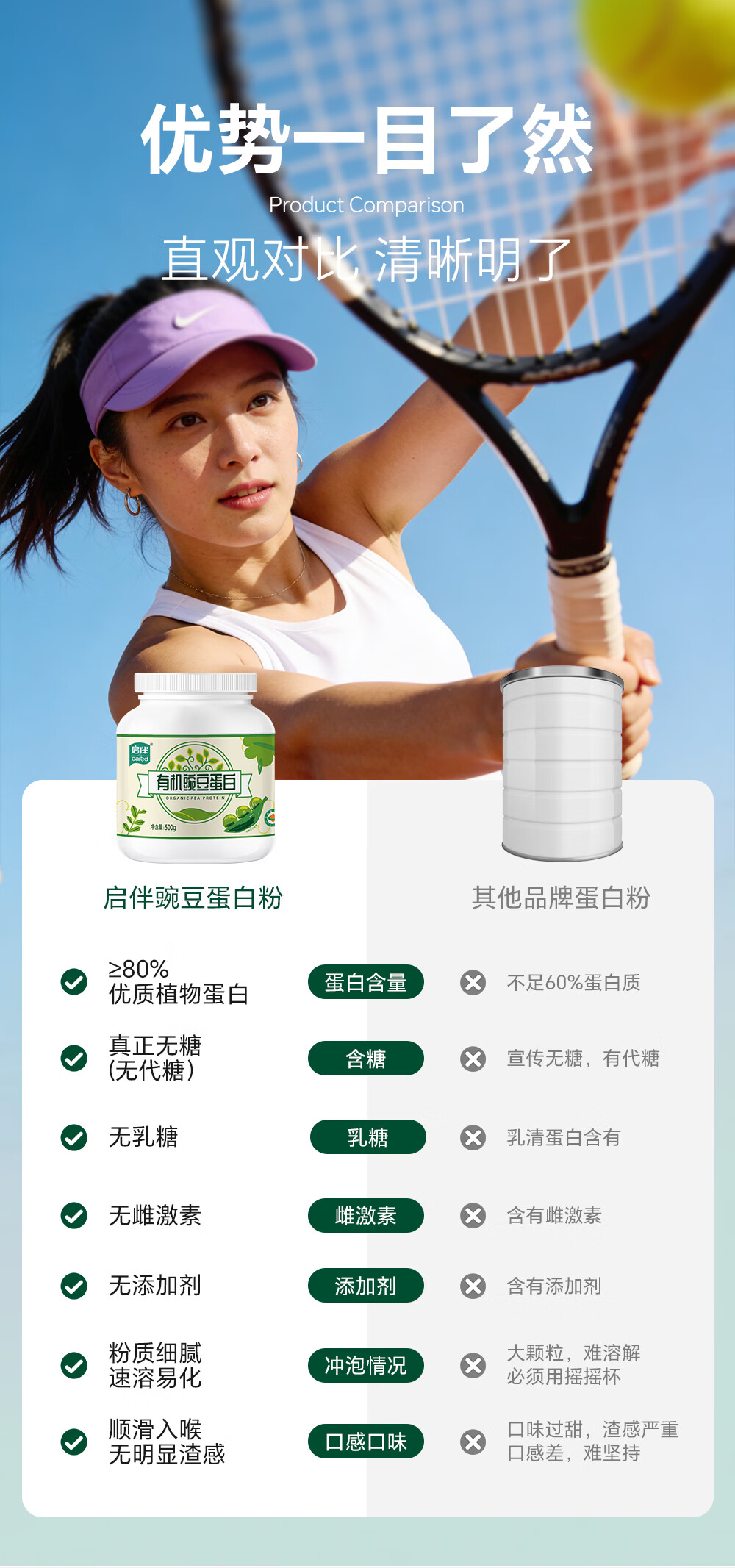 启伴有机豌豆蛋白粉青少年植物蛋白粉养生健康0脂无过敏原无乳糖 有机豌豆蛋白粉 500g*1罐