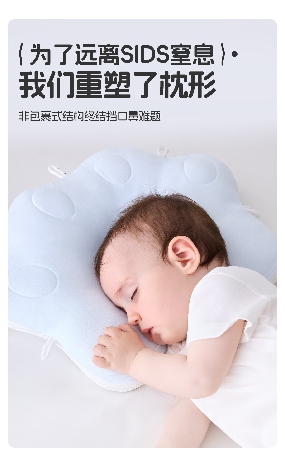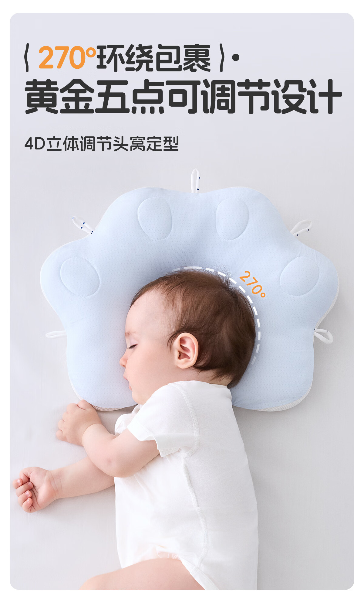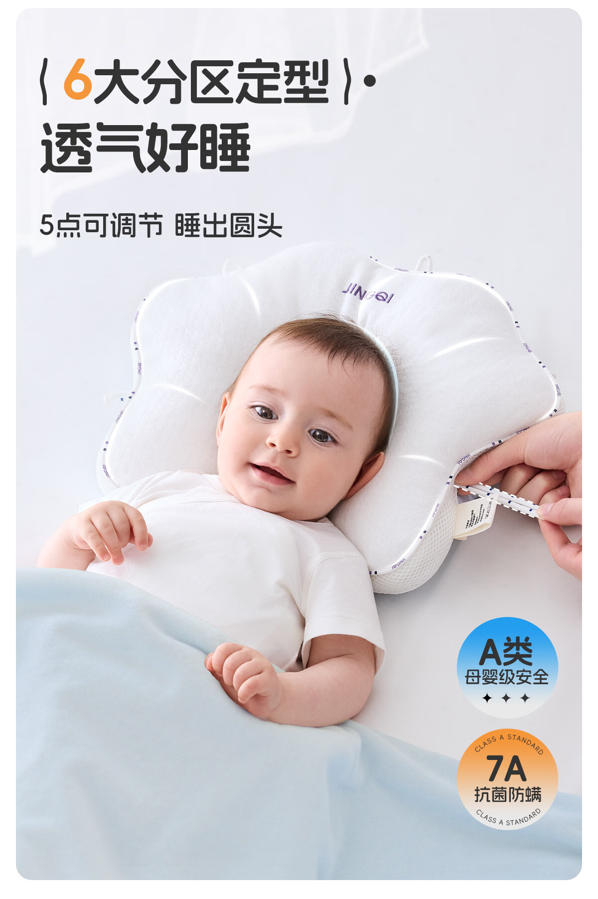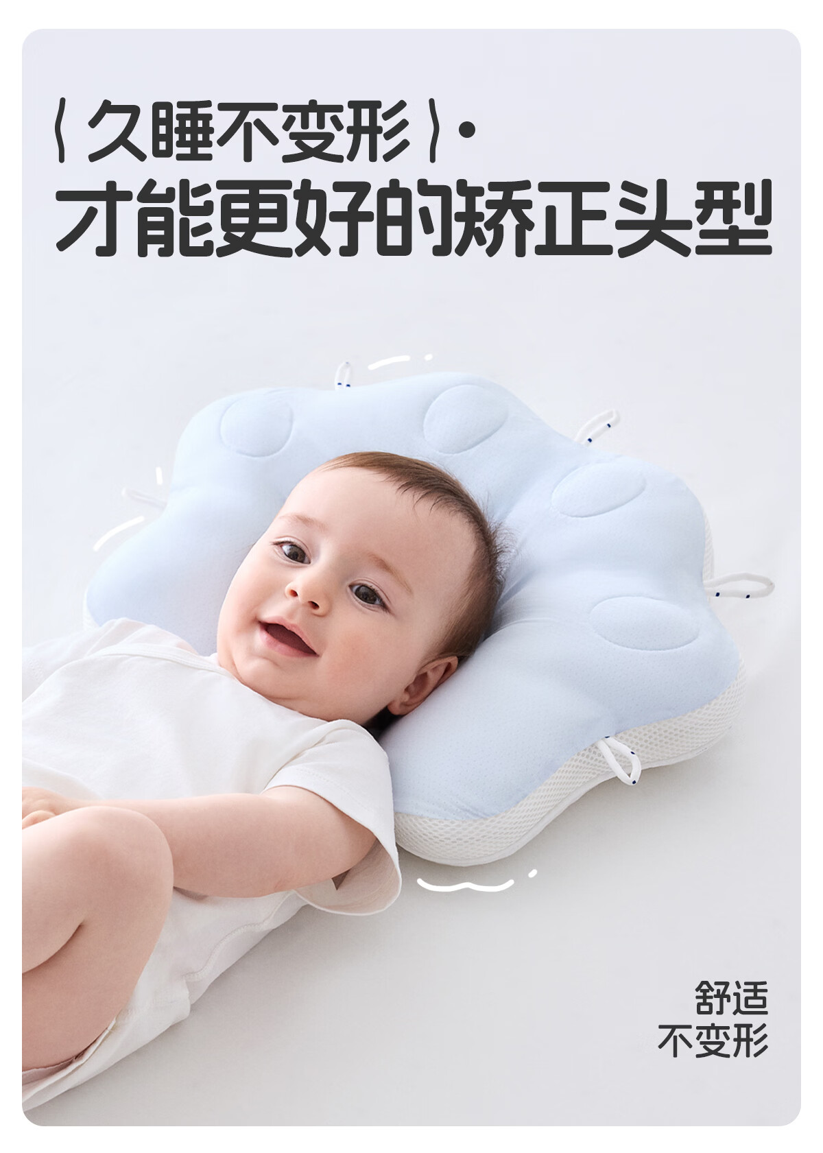 婧麒(JOYNCLEON)婴儿定型枕0-6个月睡圆头纠正头型宝宝防偏头0-1岁 蓝 Jzt194187