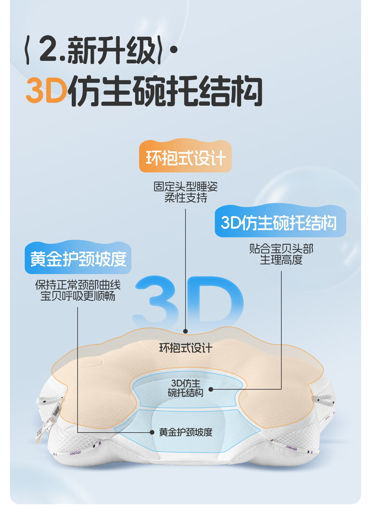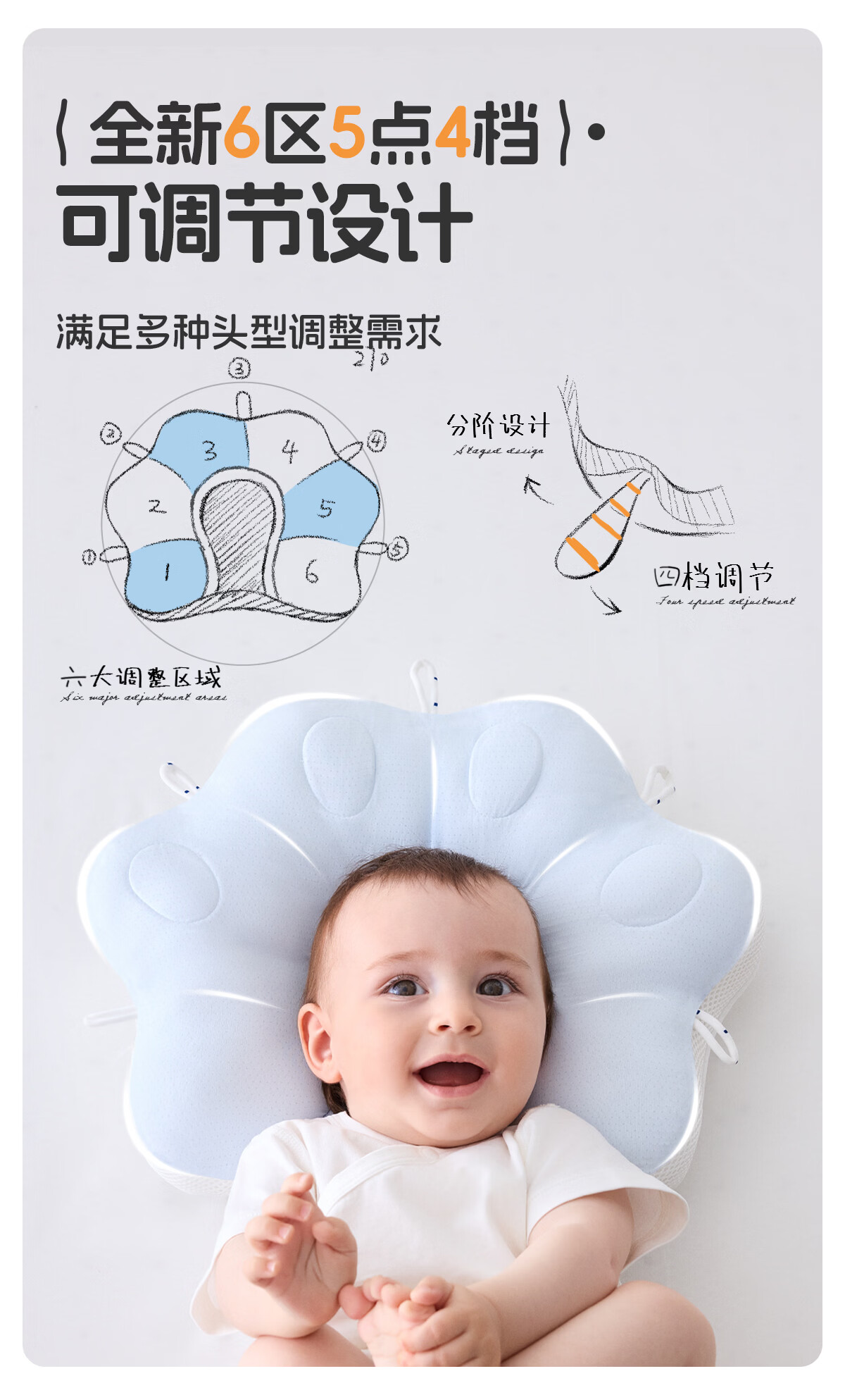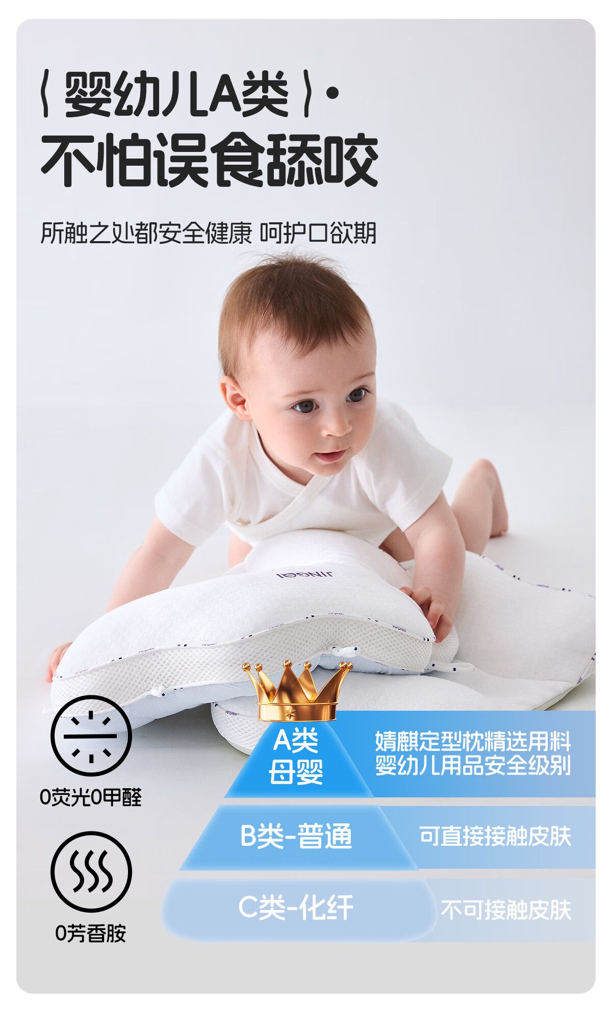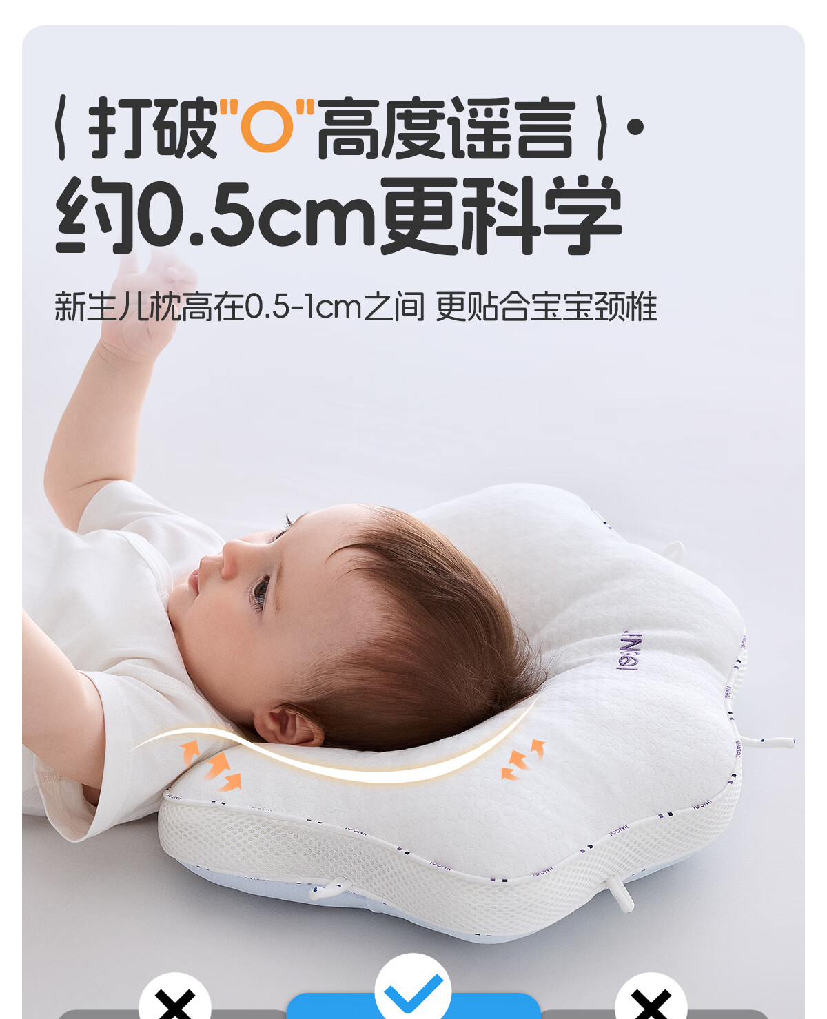 婧麒(JOYNCLEON)婴儿定型枕0-6个月睡圆头纠正头型宝宝防偏头0-1岁 蓝 Jzt194187