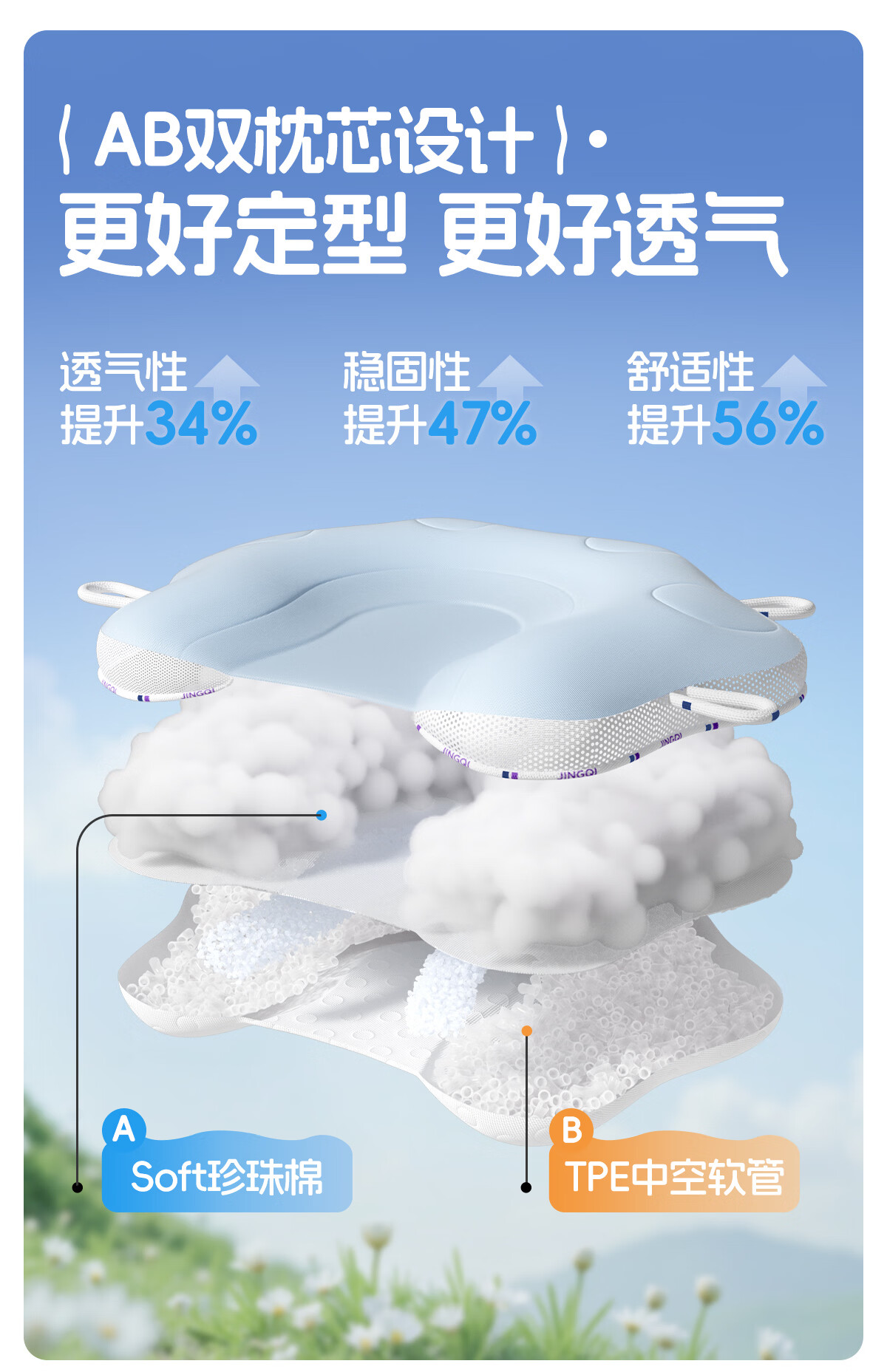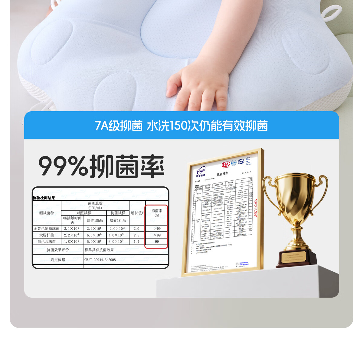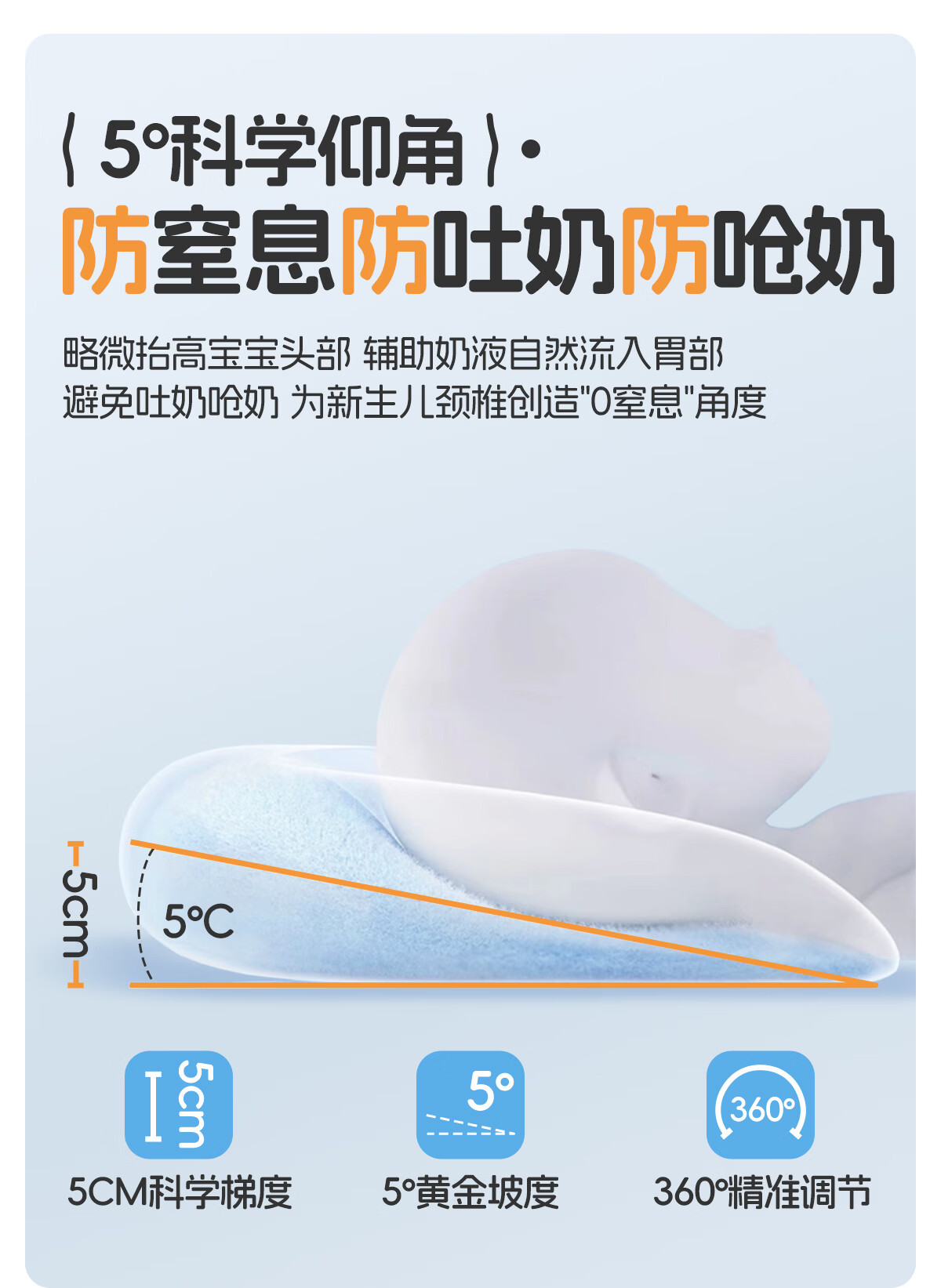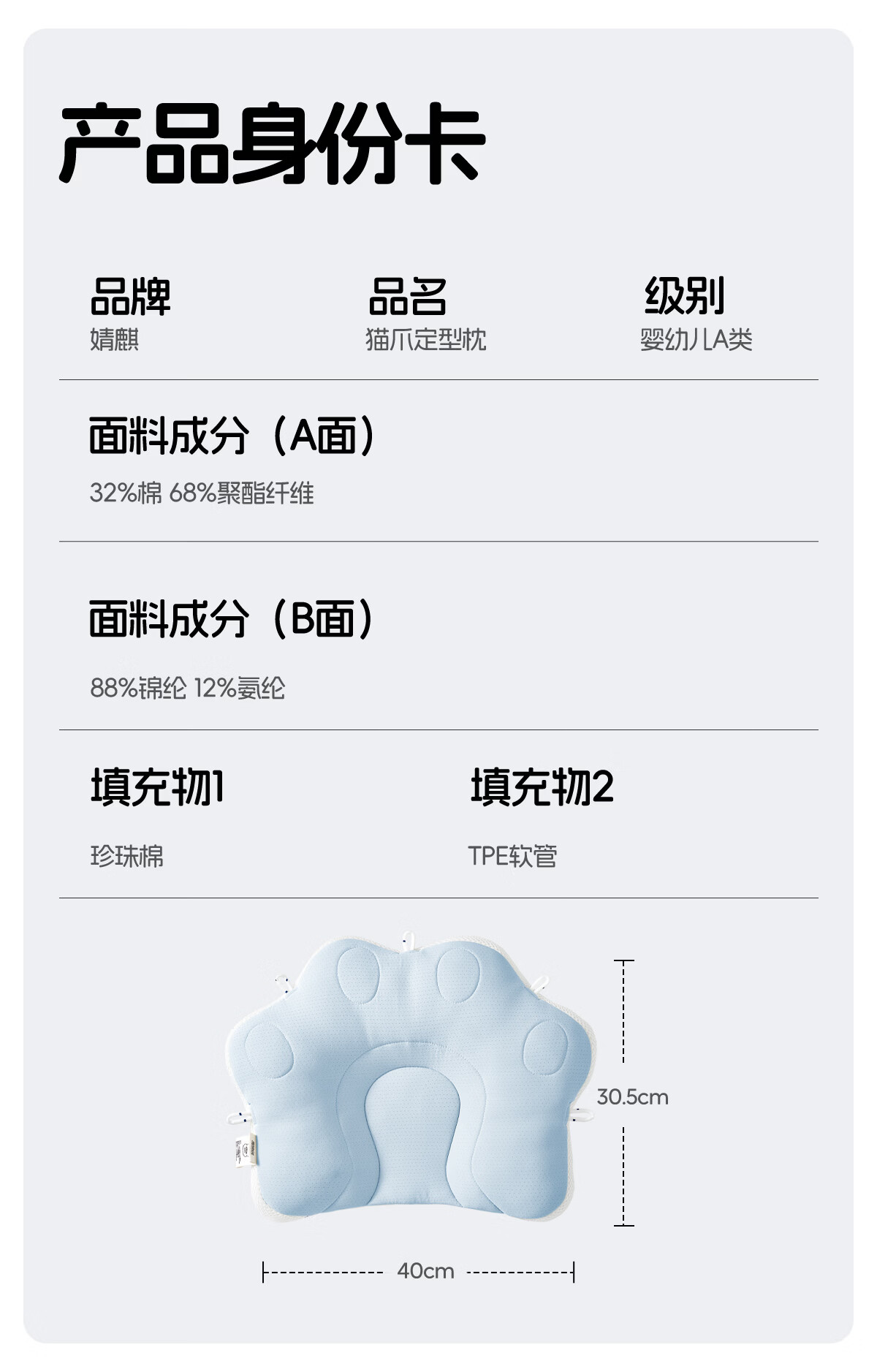 婧麒(JOYNCLEON)婴儿定型枕0-6个月睡圆头纠正头型宝宝防偏头0-1岁 蓝 Jzt194187