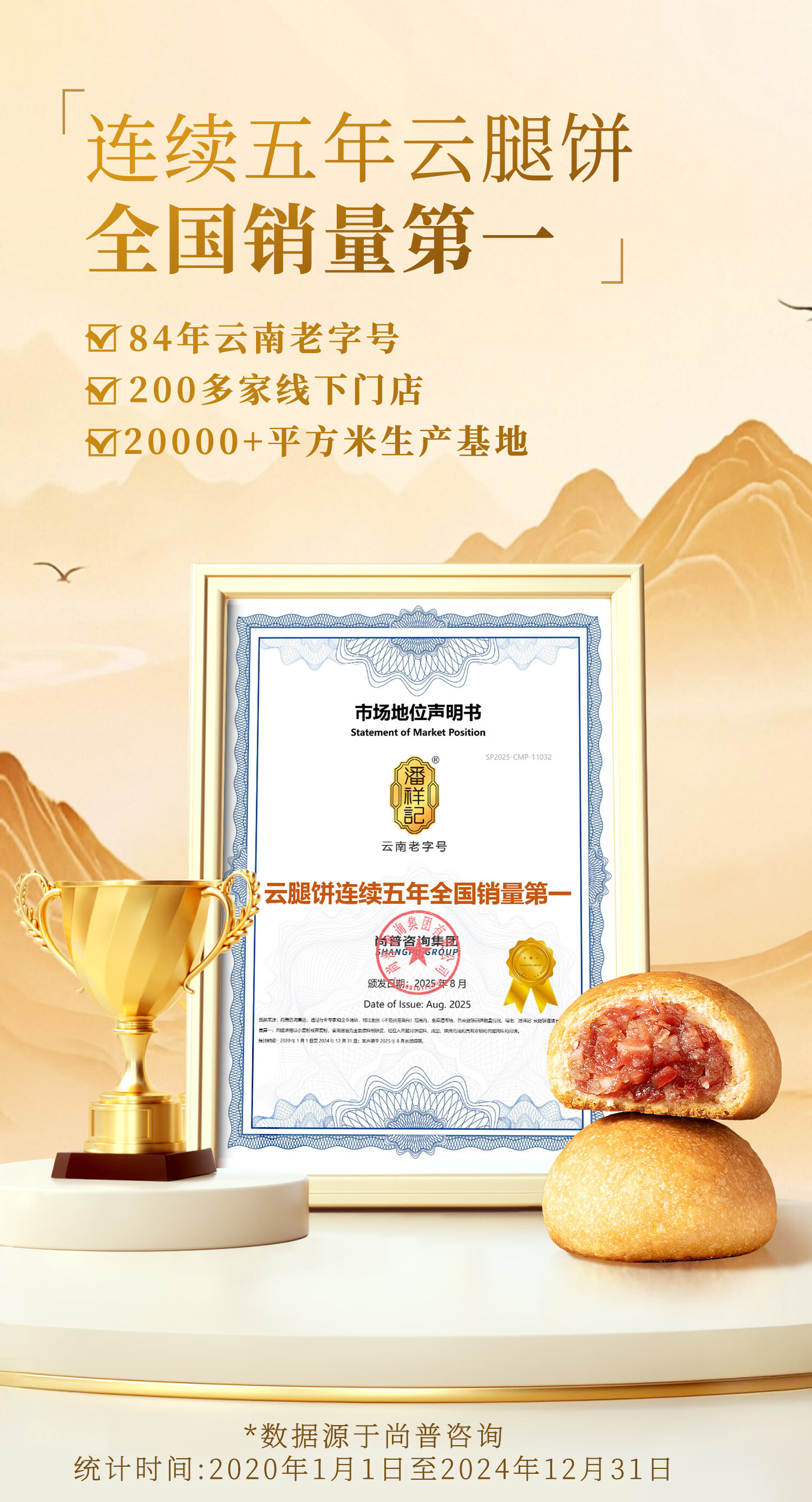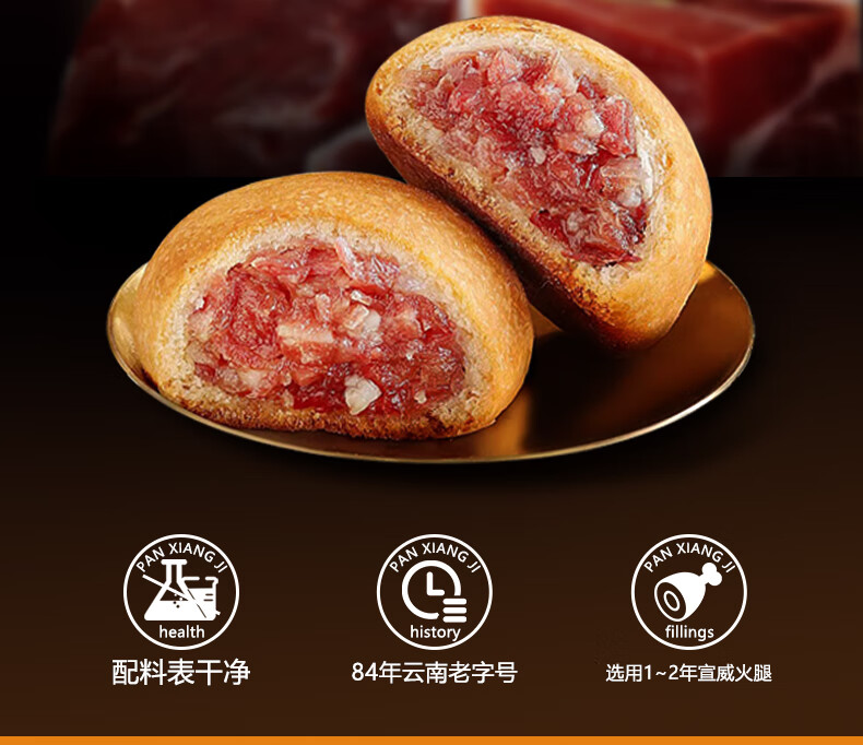 潘祥记云腿月饼滇式火腿小饼中秋酥皮月饼云腿月饼 10枚500g盒装