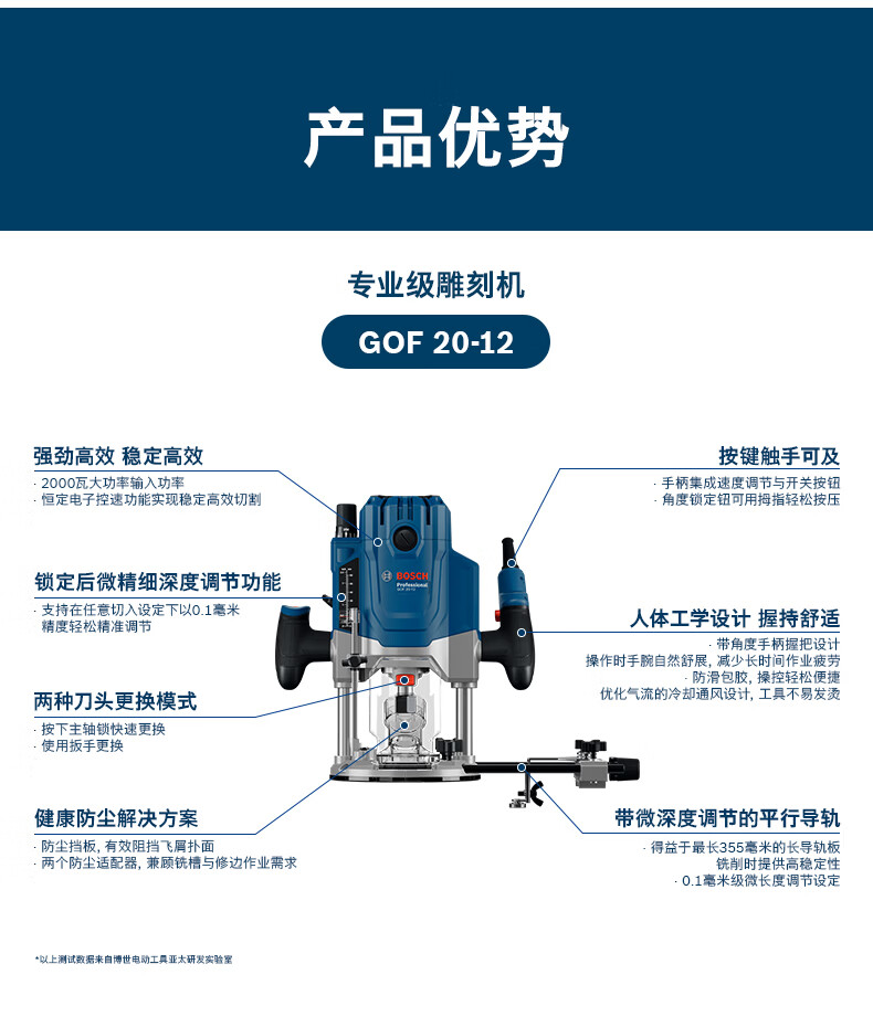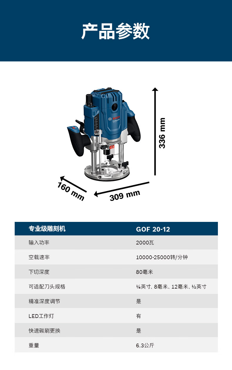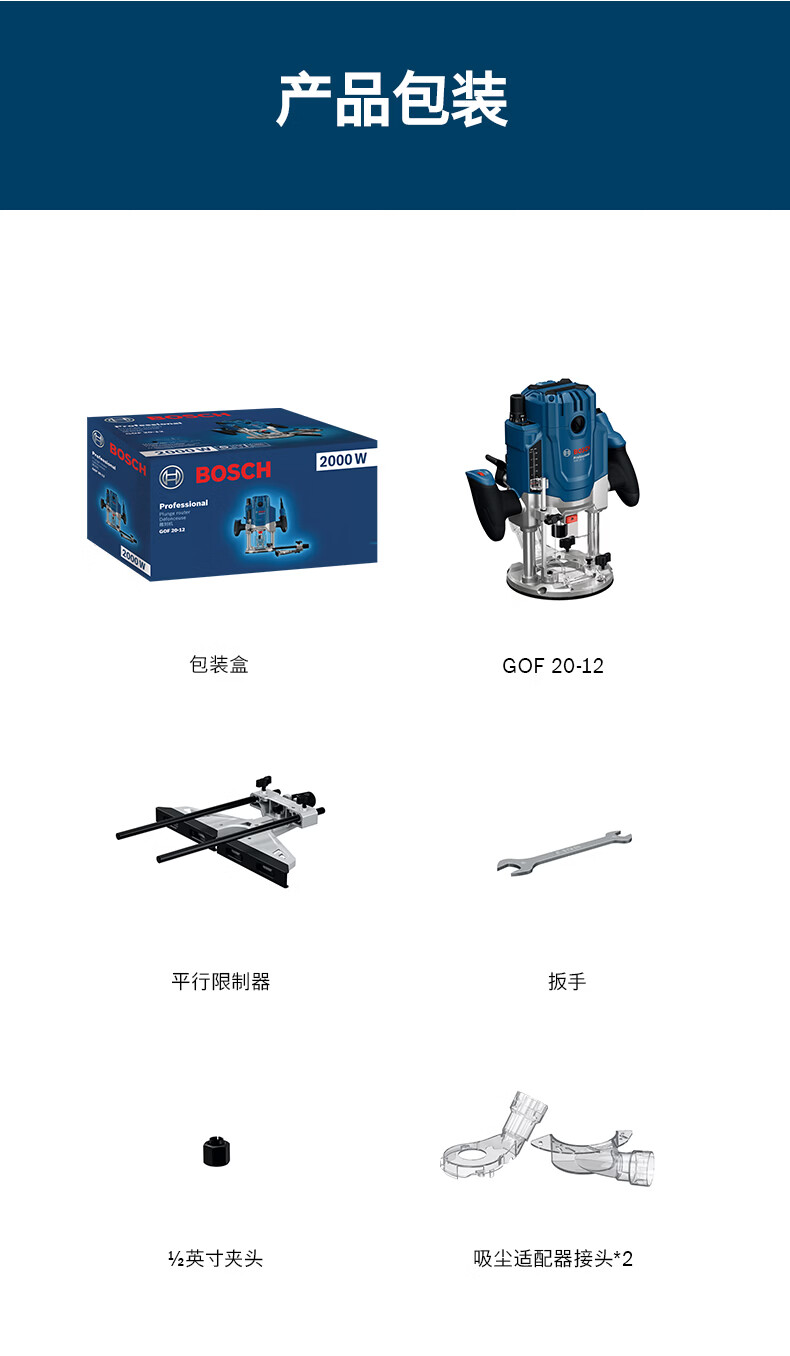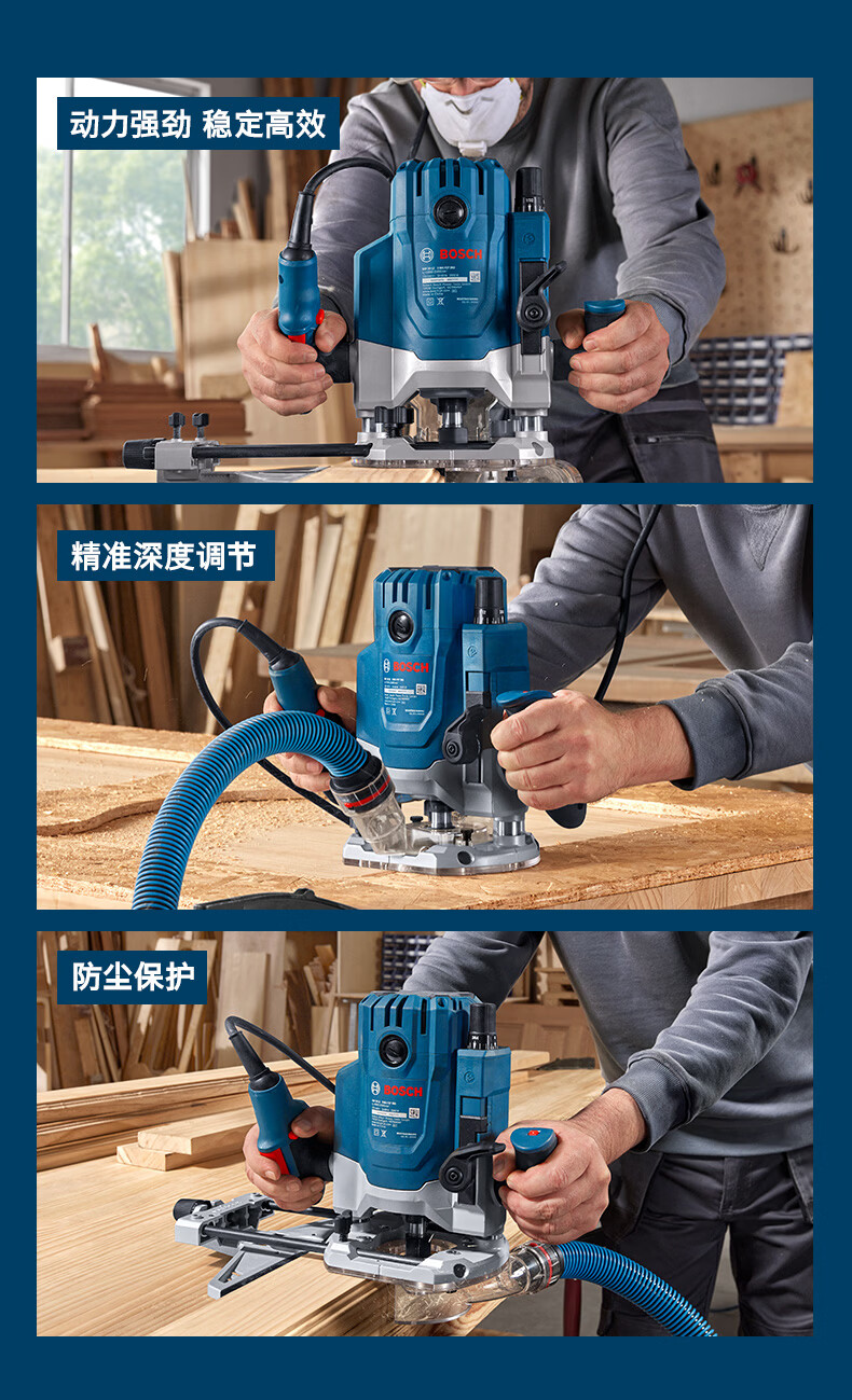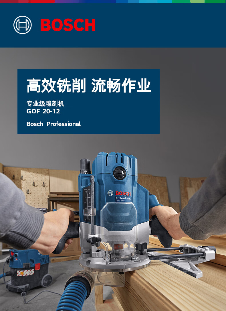 博世(BOSCH)GOF 20-12专业级雕刻机高效铣削木材修边机大功率电动木工倒角机 高效铣削雕刻机