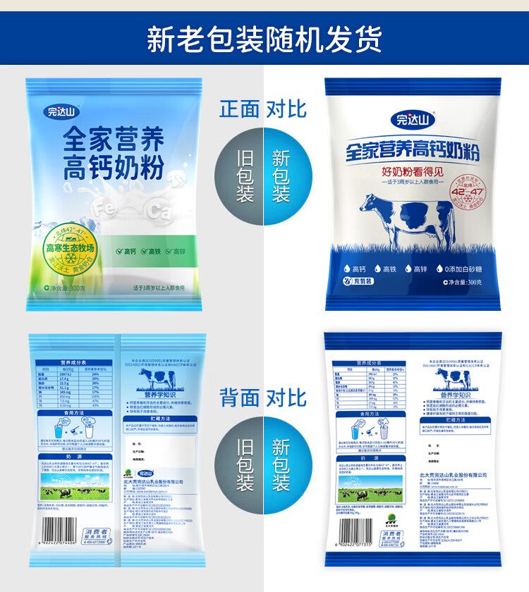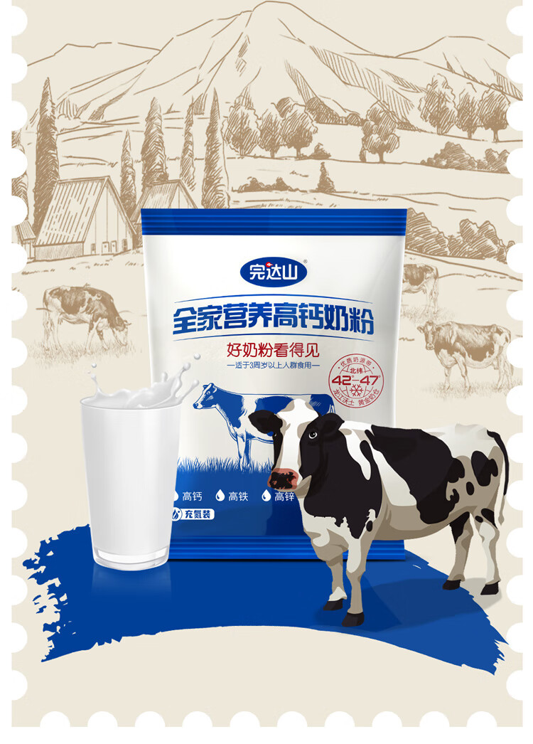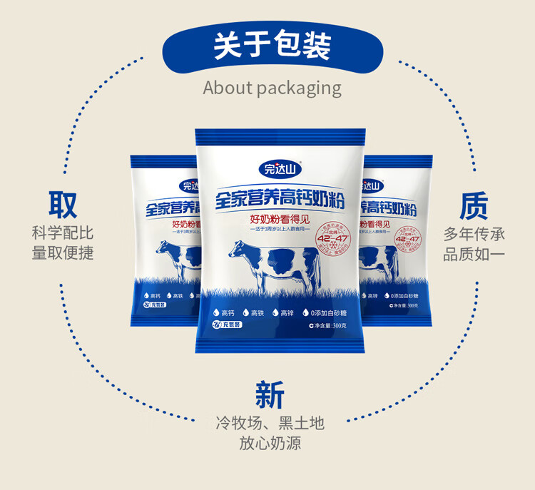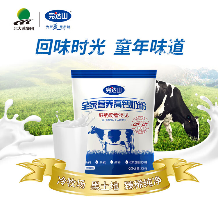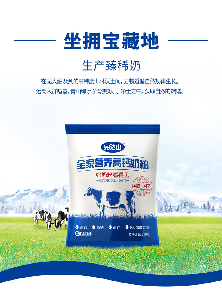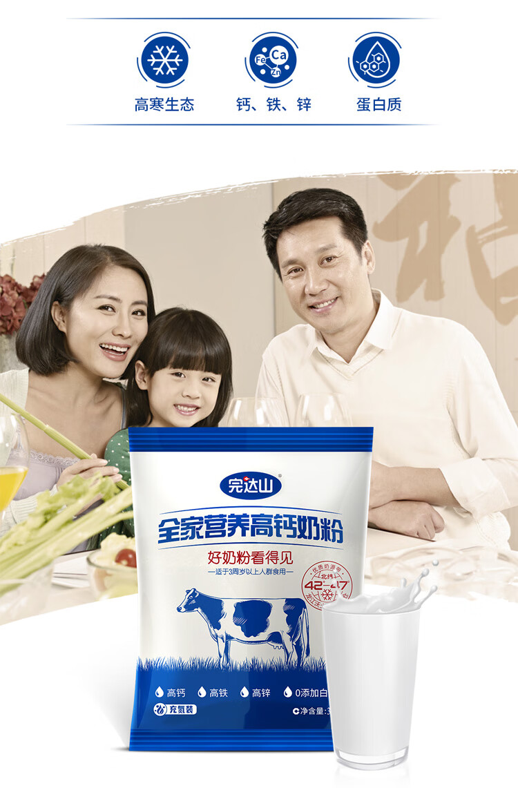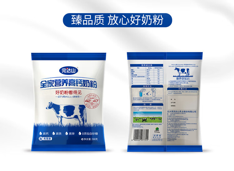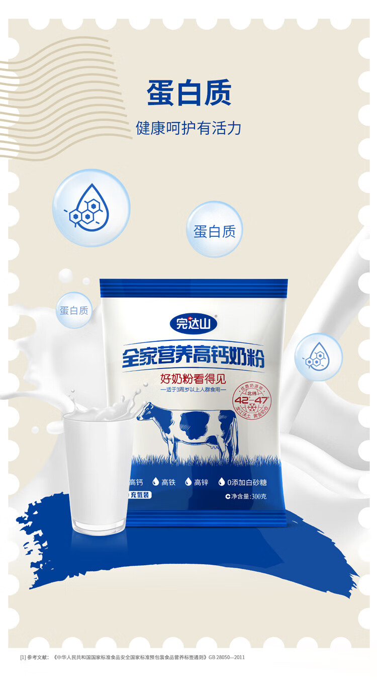 完达山全家营养高钙奶粉300g 高铁高锌0蔗糖儿童成人全家奶粉