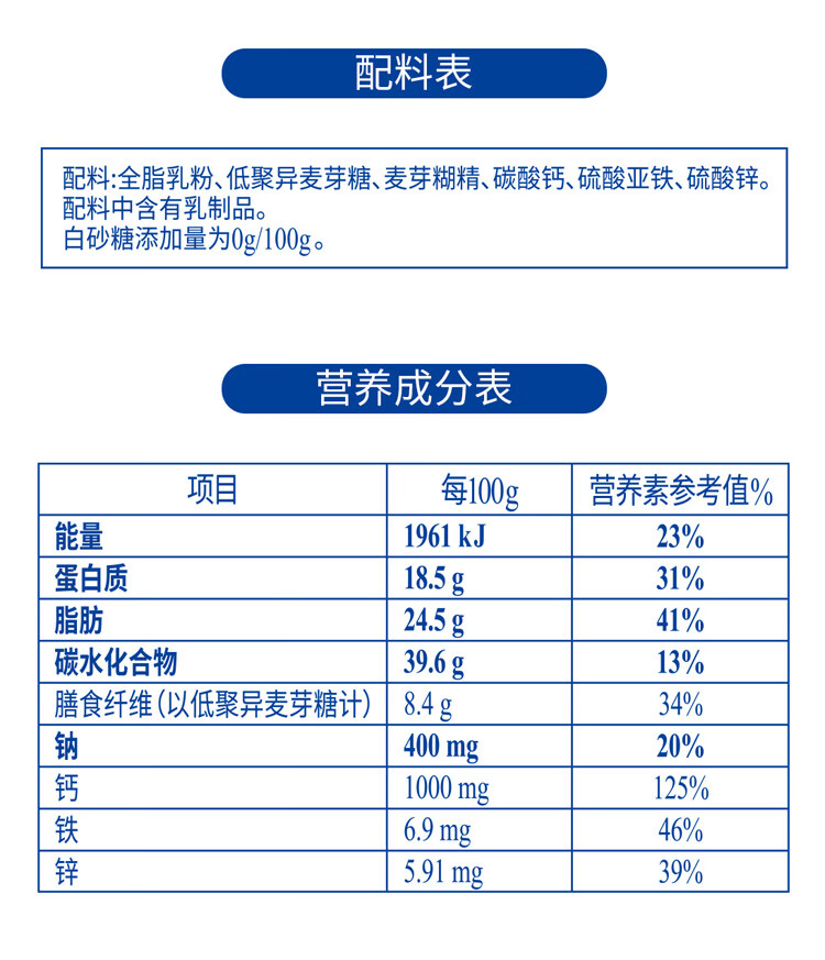 花园新疆老奶粉300g生牛乳0蔗糖全脂乳粉中老年成人学生奶粉营养品