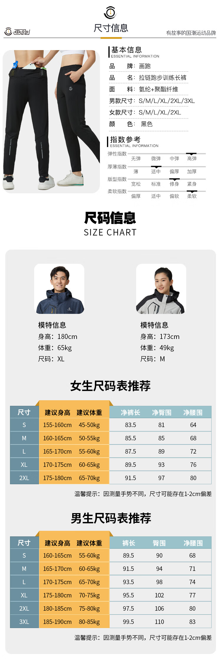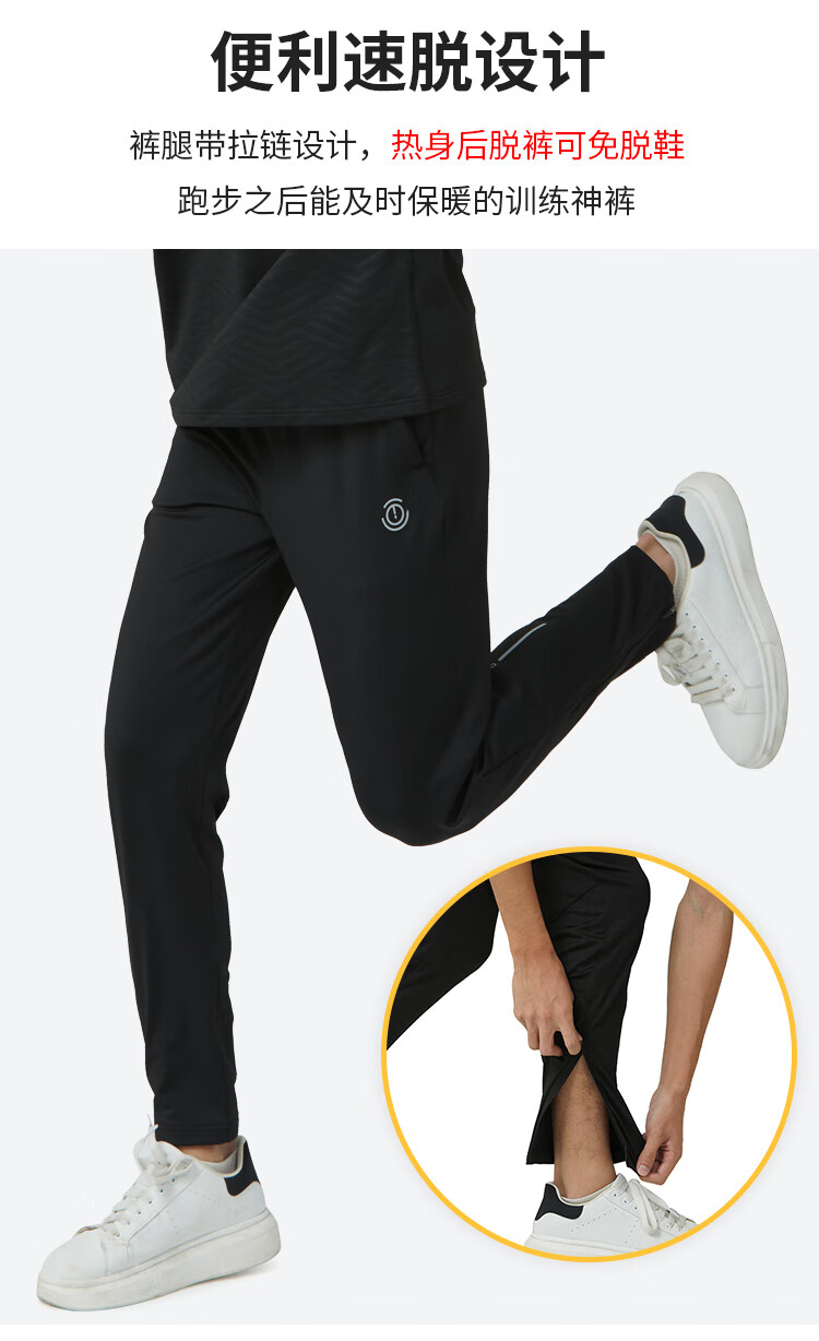 画跑【顺丰发货】专业运动速干训练拉链长裤跑步裤子春秋休闲裤男女裤 男款硬朗帅气黑色 XL