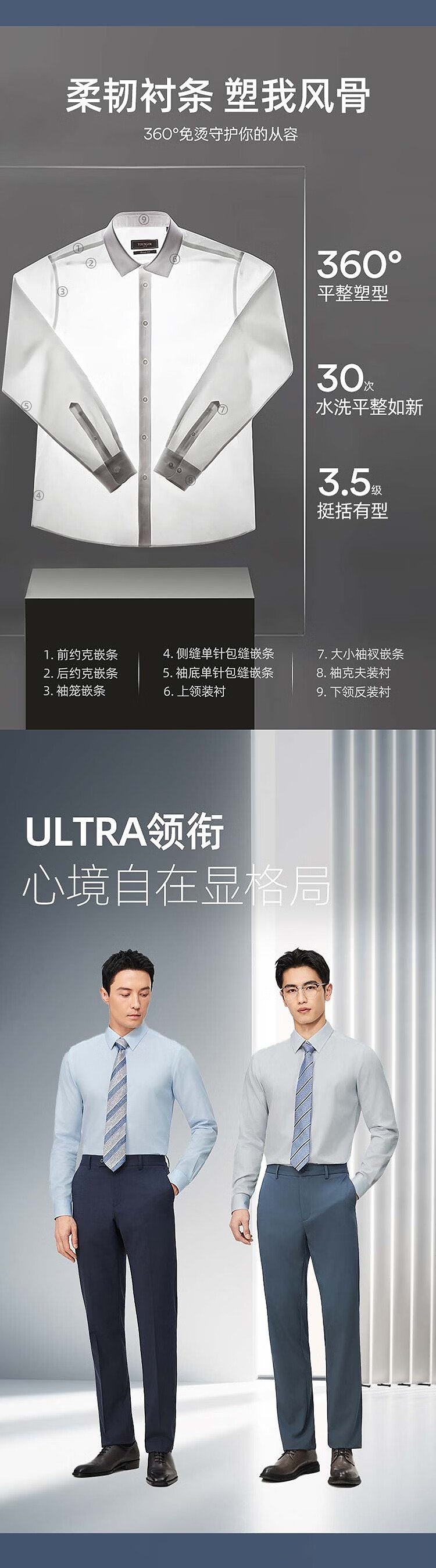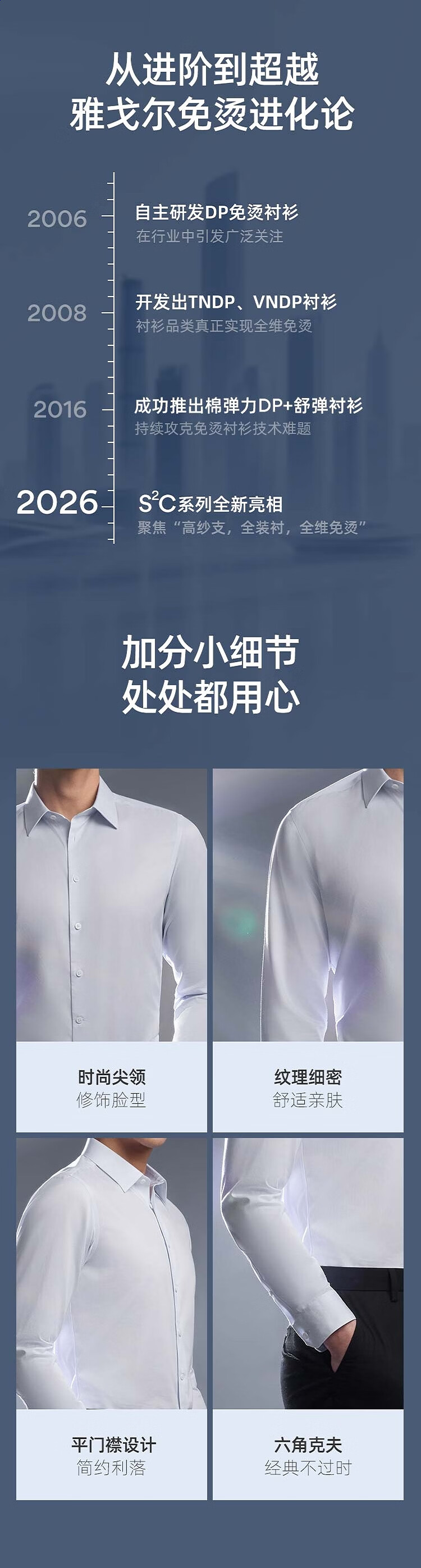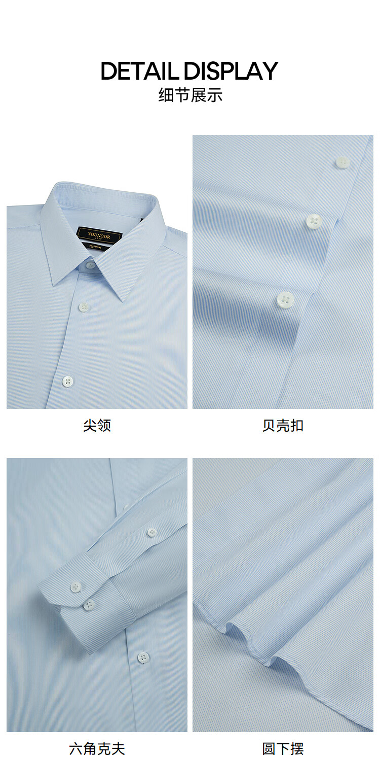雅戈尔(YOUNGOR)【300支+桑蚕丝】2026春季新品商务免烫高端衣服男细条纹长袖衬衫 蓝色条纹VLTP114786HJY 41 (175/96Y)