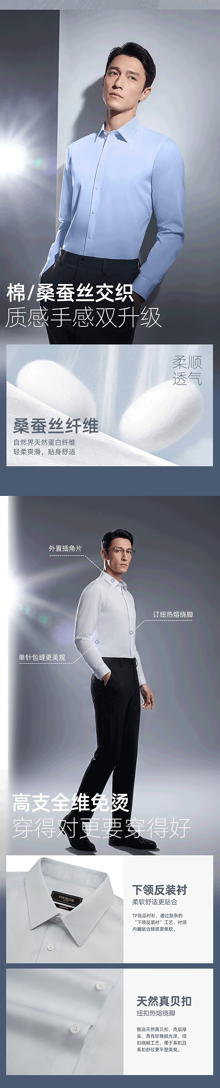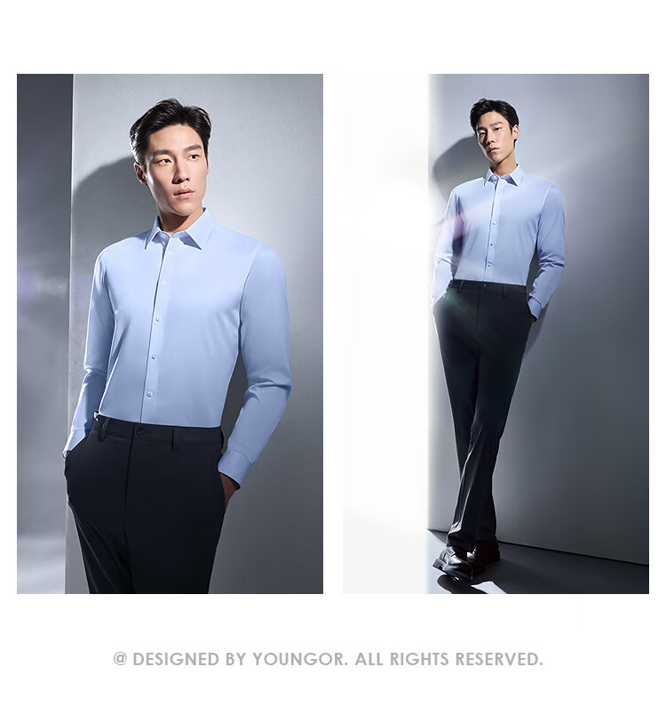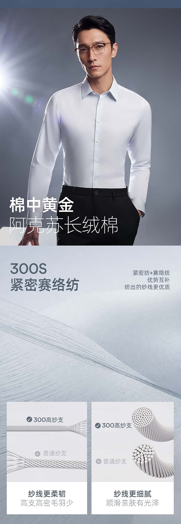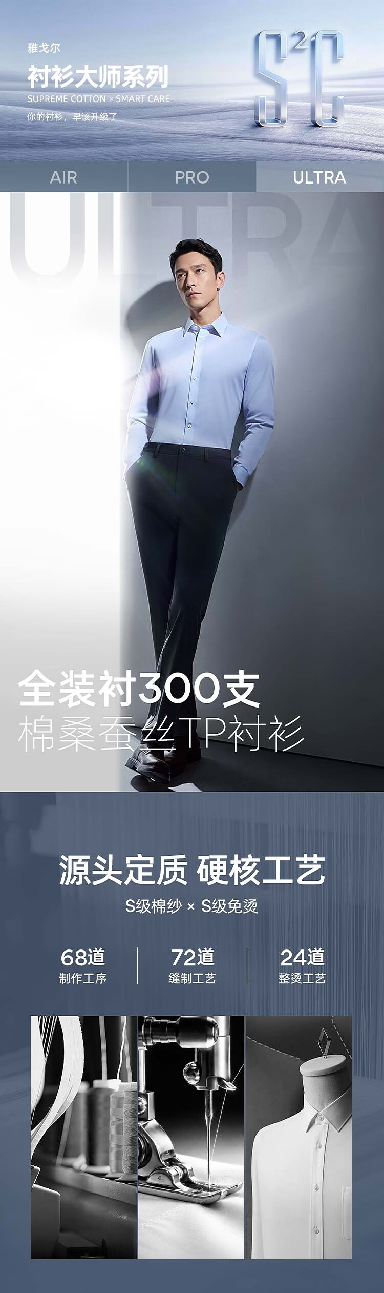 雅戈尔(YOUNGOR)【300支+桑蚕丝】2026春季新品商务免烫高端衣服男细条纹长袖衬衫 蓝色条纹VLTP114786HJY 41 (175/96Y)