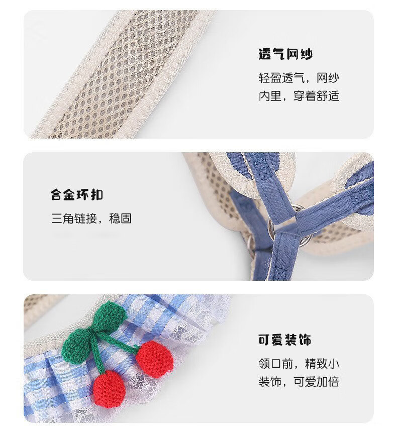 拉维佩特(LOVINGPET) 狗狗牵引绳胸背带 泰迪狗绳子可调节幼犬牵引绳小型犬遛狗绳子 蓝色 M 7-15斤左右 胸围35-60cm