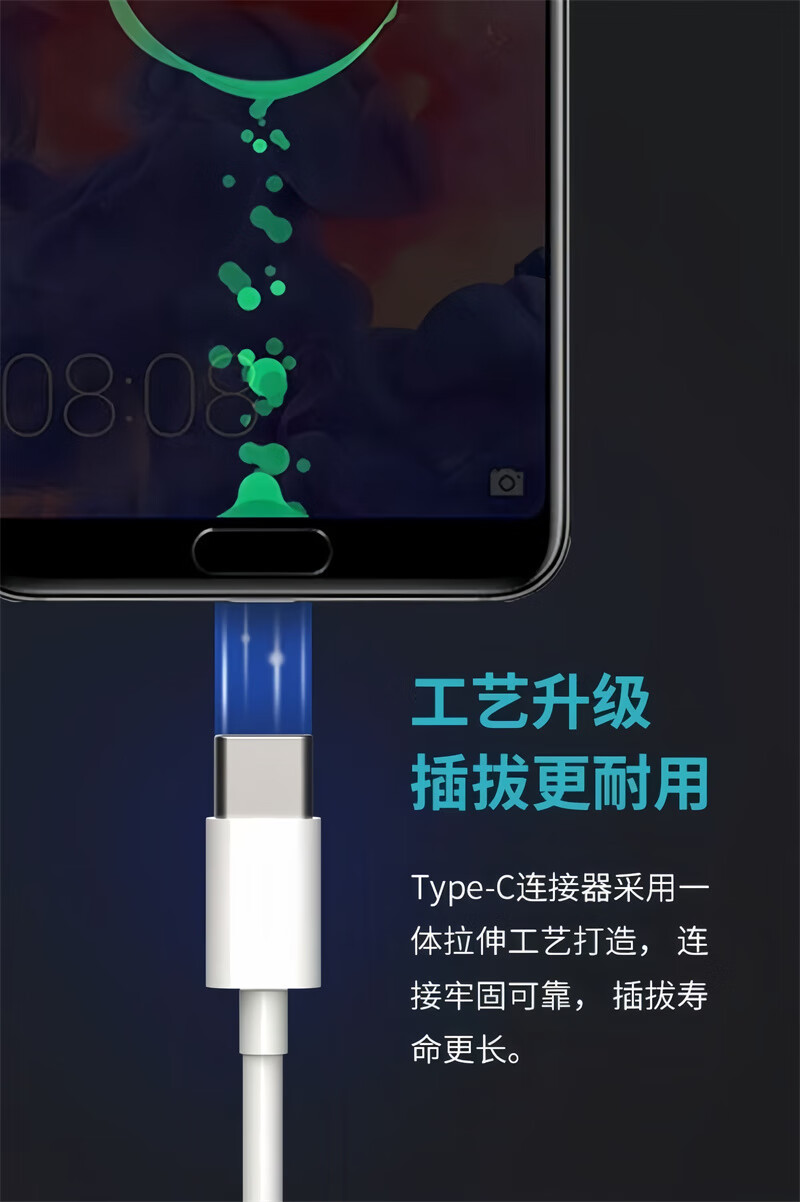 乔鸟【精选】typec快充数据线华为快充OPPOvivo小米通用快充线安卓 TPE-6A线 1米【2条装】
