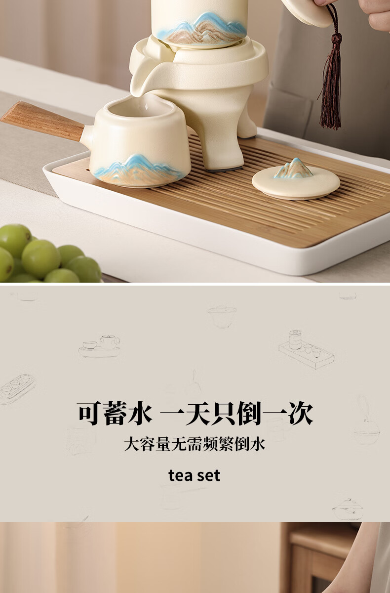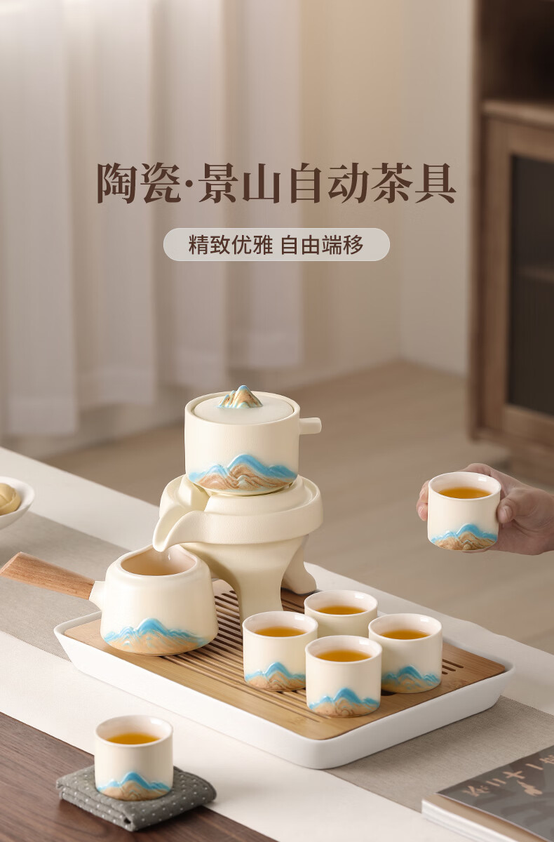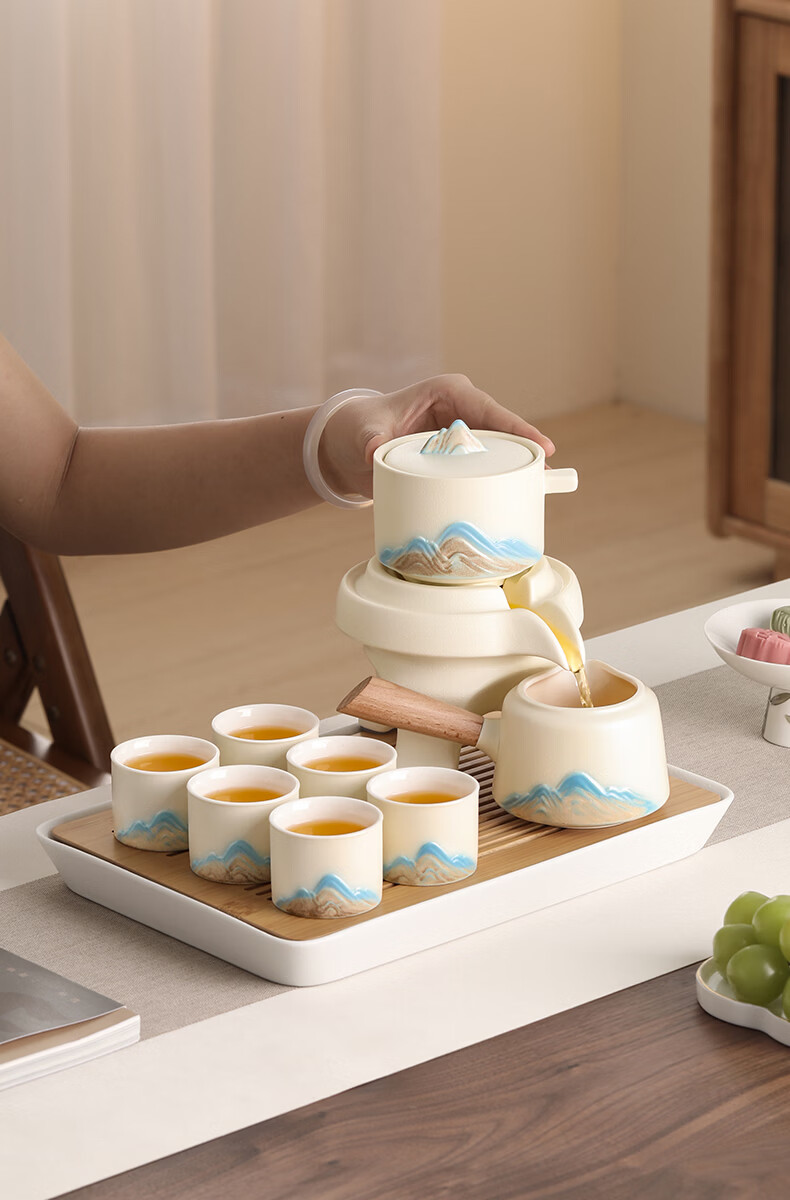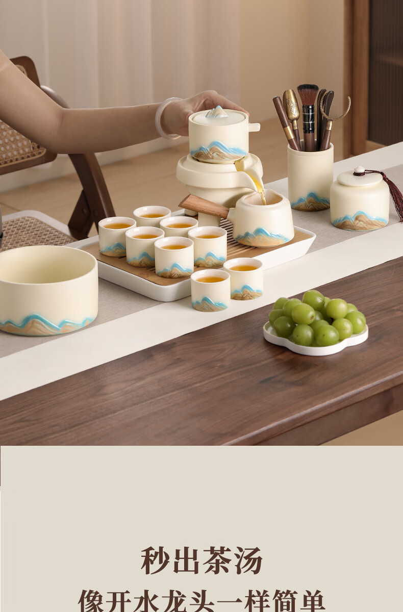 不拙年轻人茶具套装2026新款高颜值功夫茶具一整套高档自动懒人泡茶壶 1【泡茶新手 闭眼入】米黄色意景山自动茶具10入