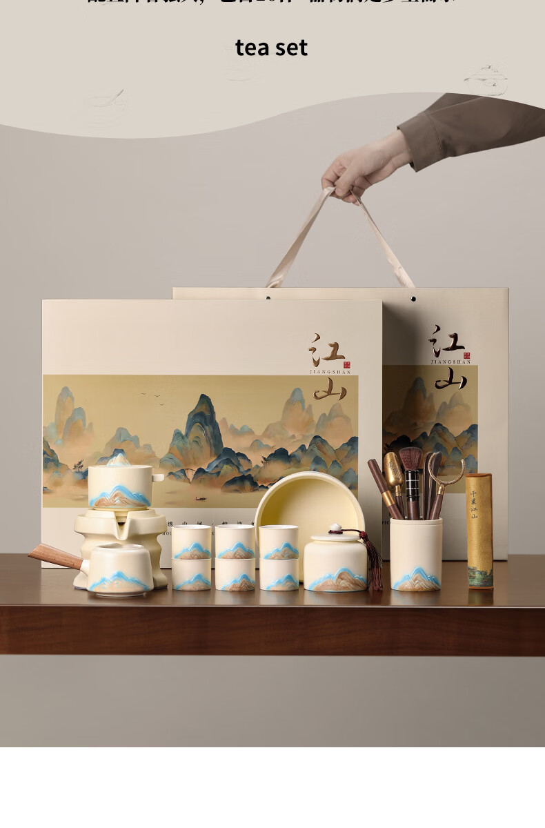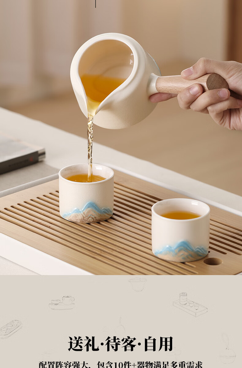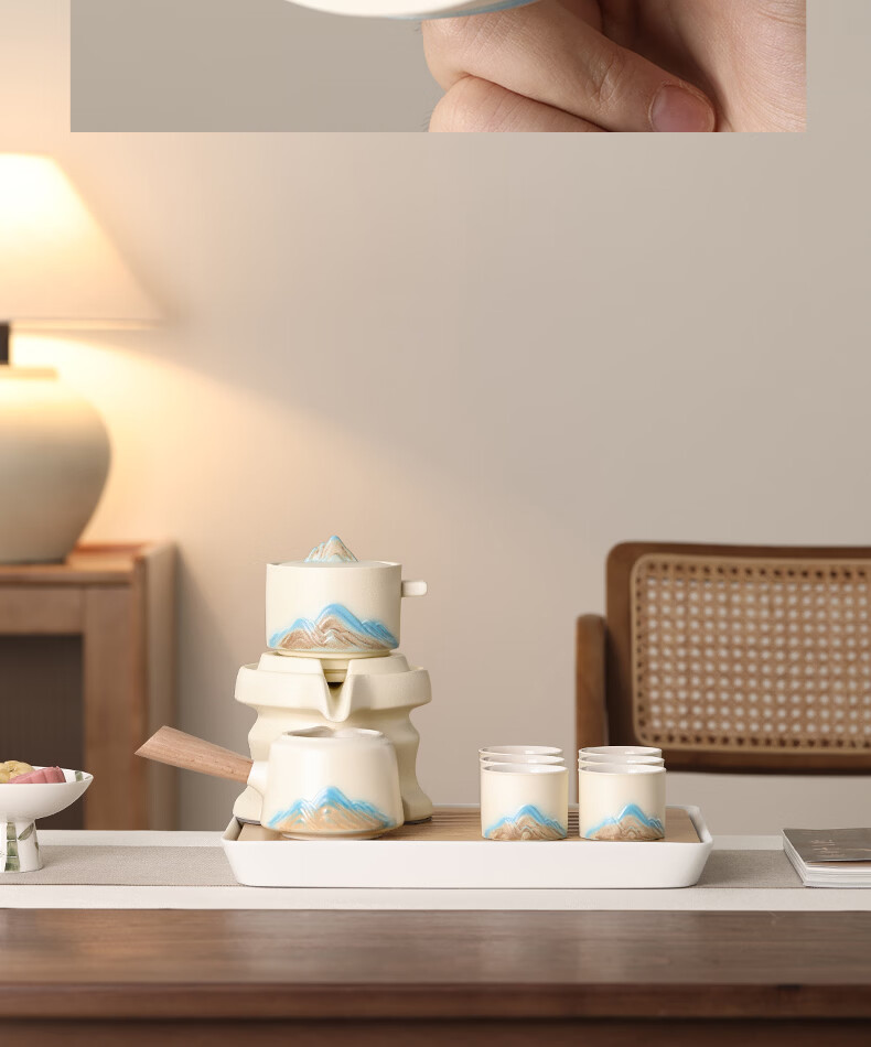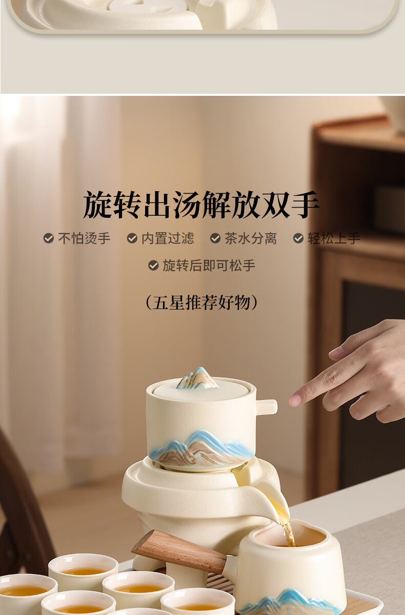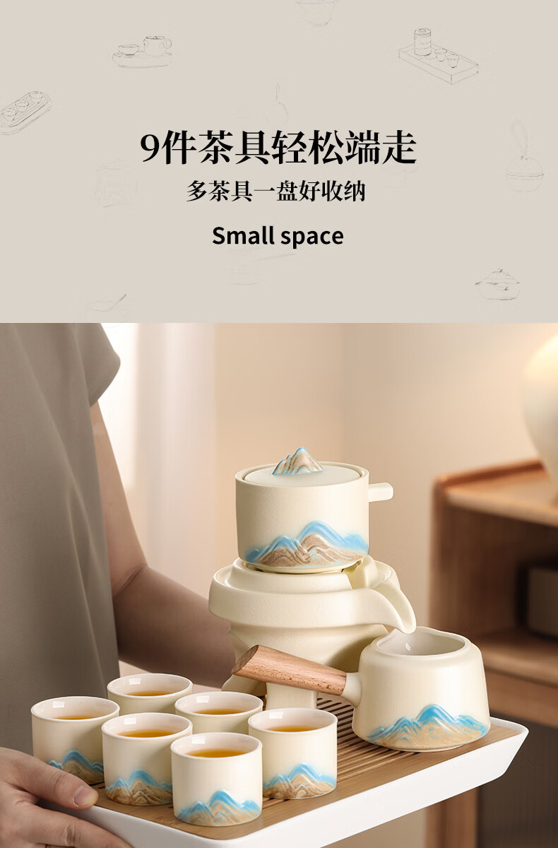 不拙年轻人茶具套装2026新款高颜值功夫茶具一整套高档自动懒人泡茶壶 1【泡茶新手 闭眼入】米黄色意景山自动茶具10入