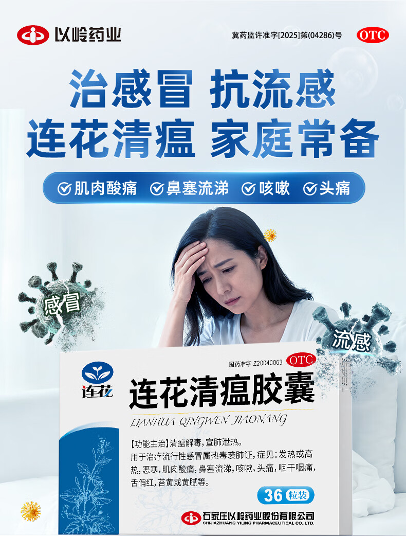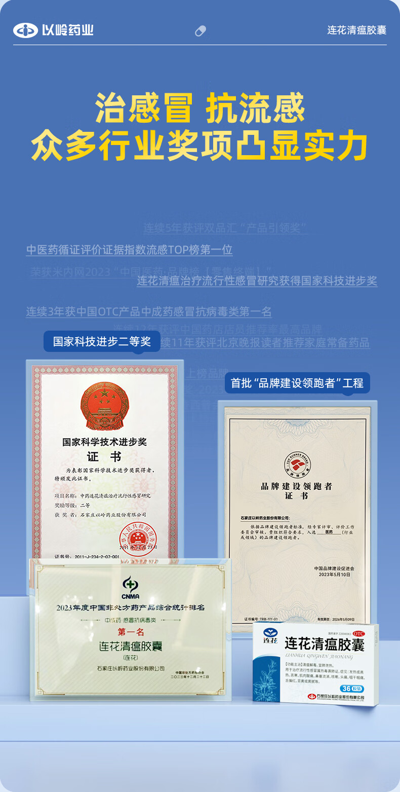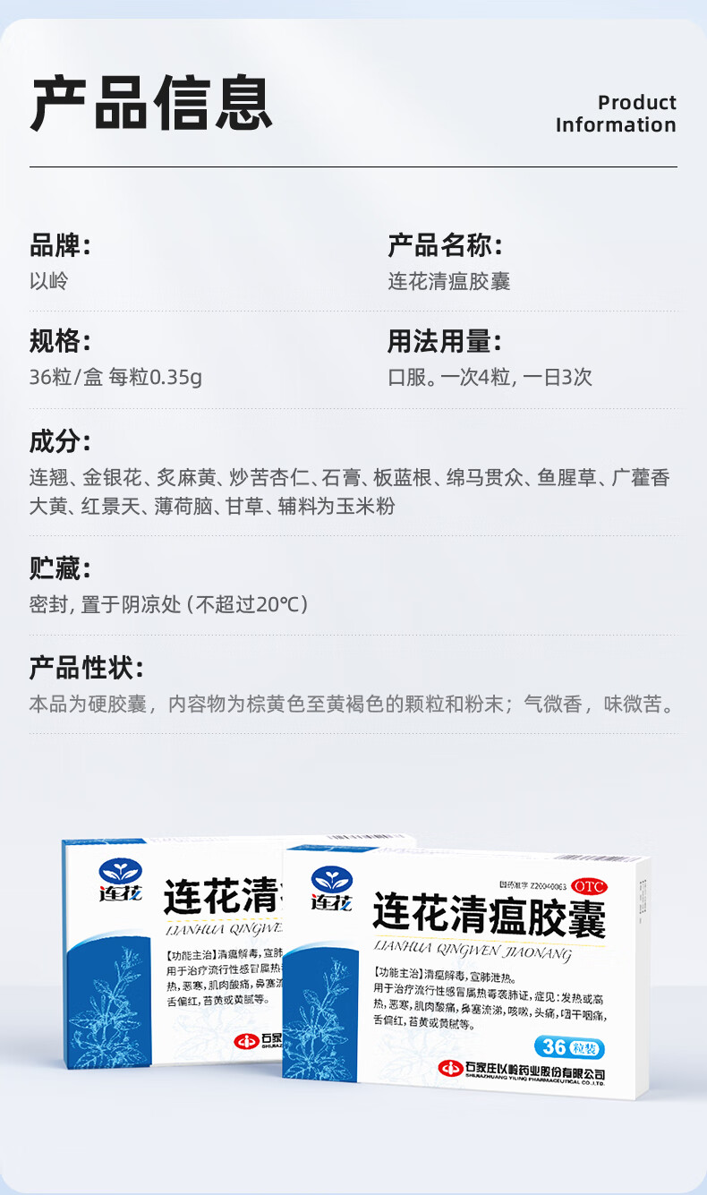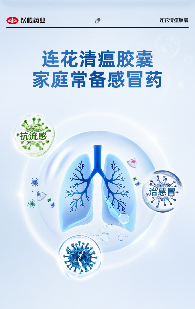 以岭连花清瘟胶囊 0.35g*36粒/盒 流感药 抗病毒用药 感冒咳嗽 感冒药 退烧药 解热镇痛 流感药 莲花温清