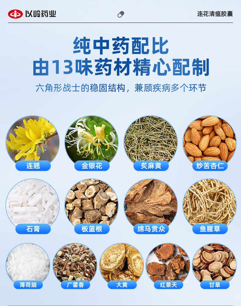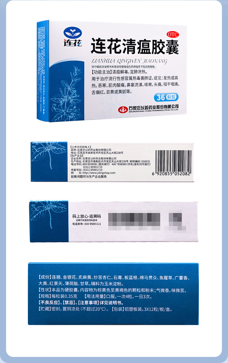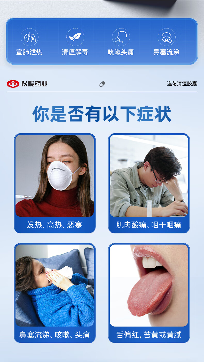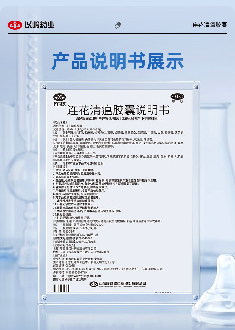 以岭连花清瘟胶囊 0.35g*36粒/盒 流感药 抗病毒用药 感冒咳嗽 感冒药 退烧药 解热镇痛 流感药 莲花温清