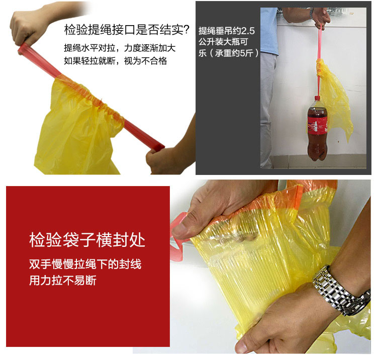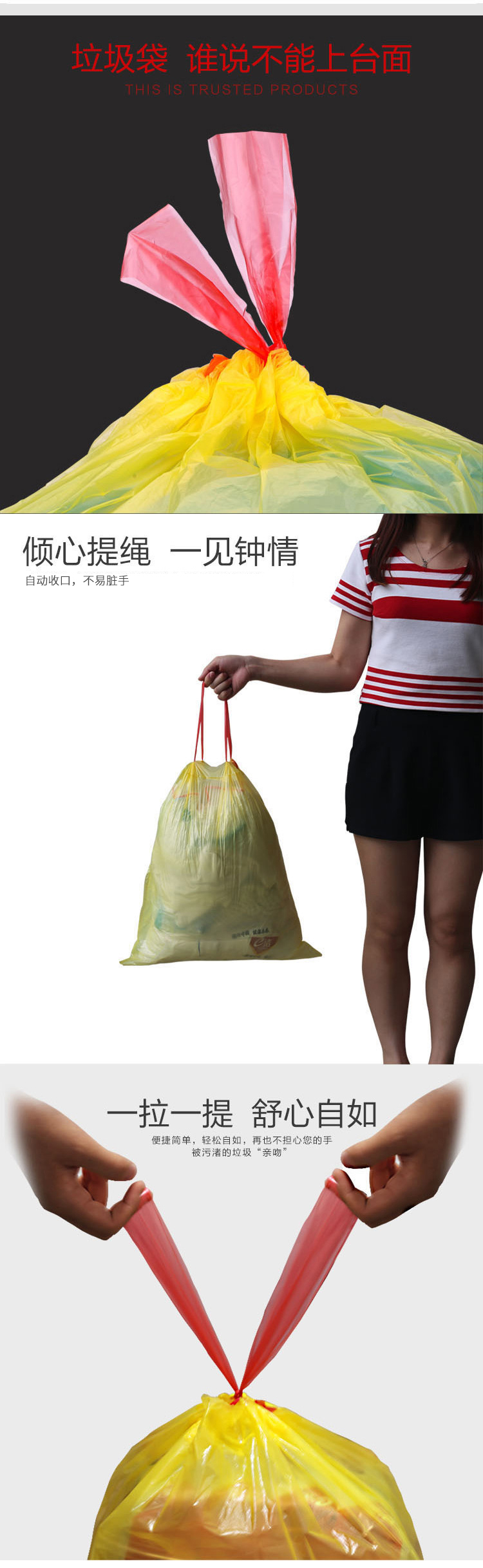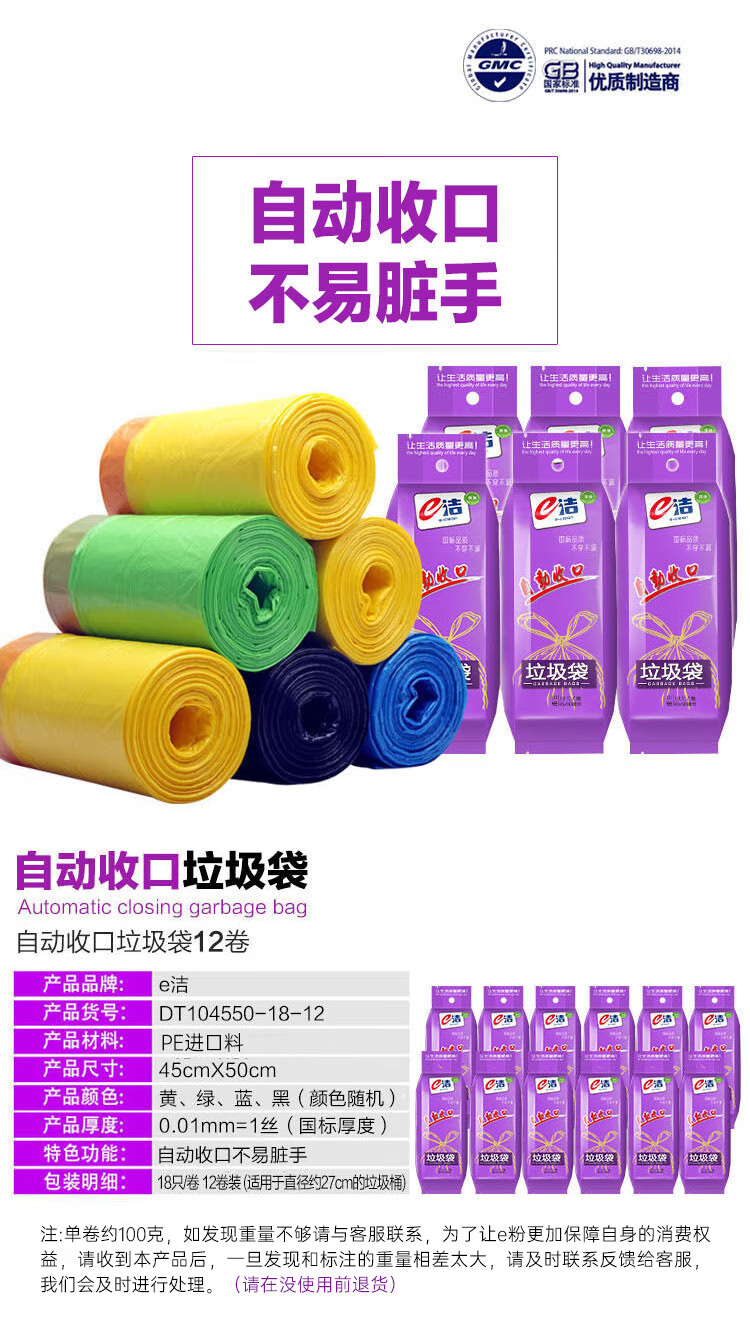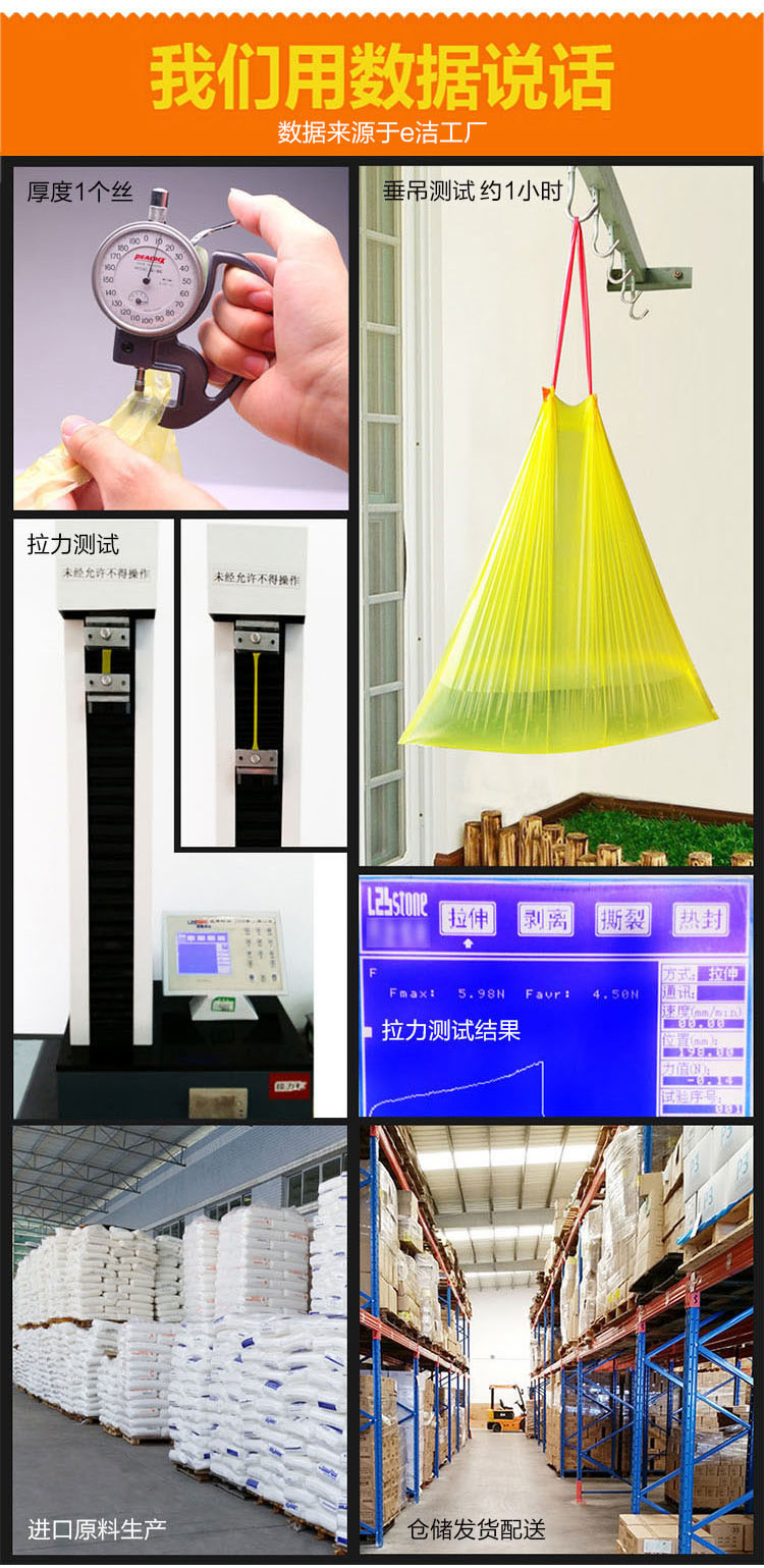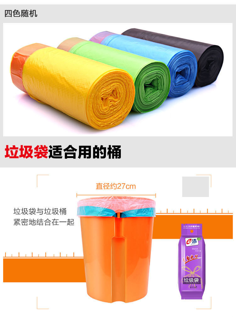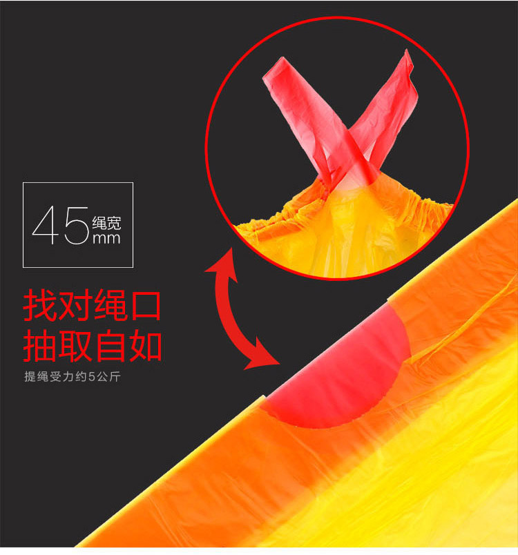 e洁抽绳垃圾袋45*50cm12卷*18只共216只1丝免撕家用手提穿绳颜色随机