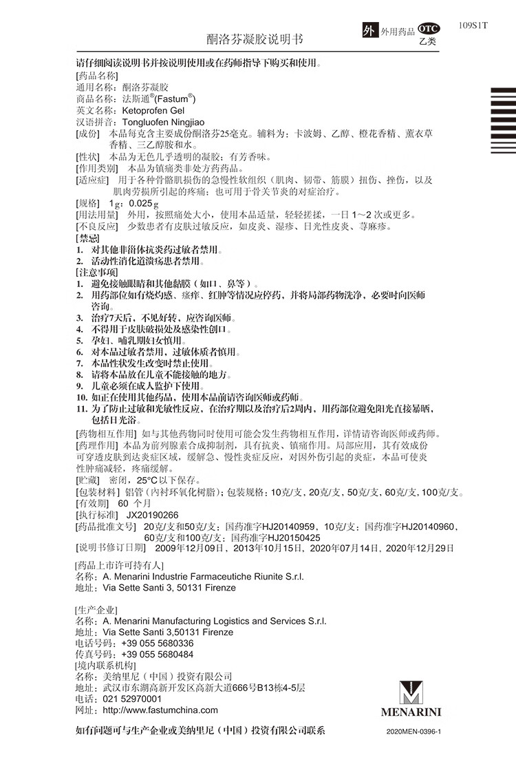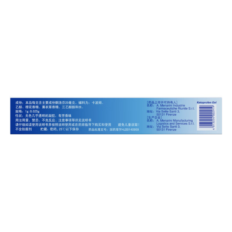 【原研药】法斯通酮洛芬凝胶50g 骨骼肌肉损伤软组织扭伤消炎镇痛 骨关节炎止痛膏风湿腱鞘炎