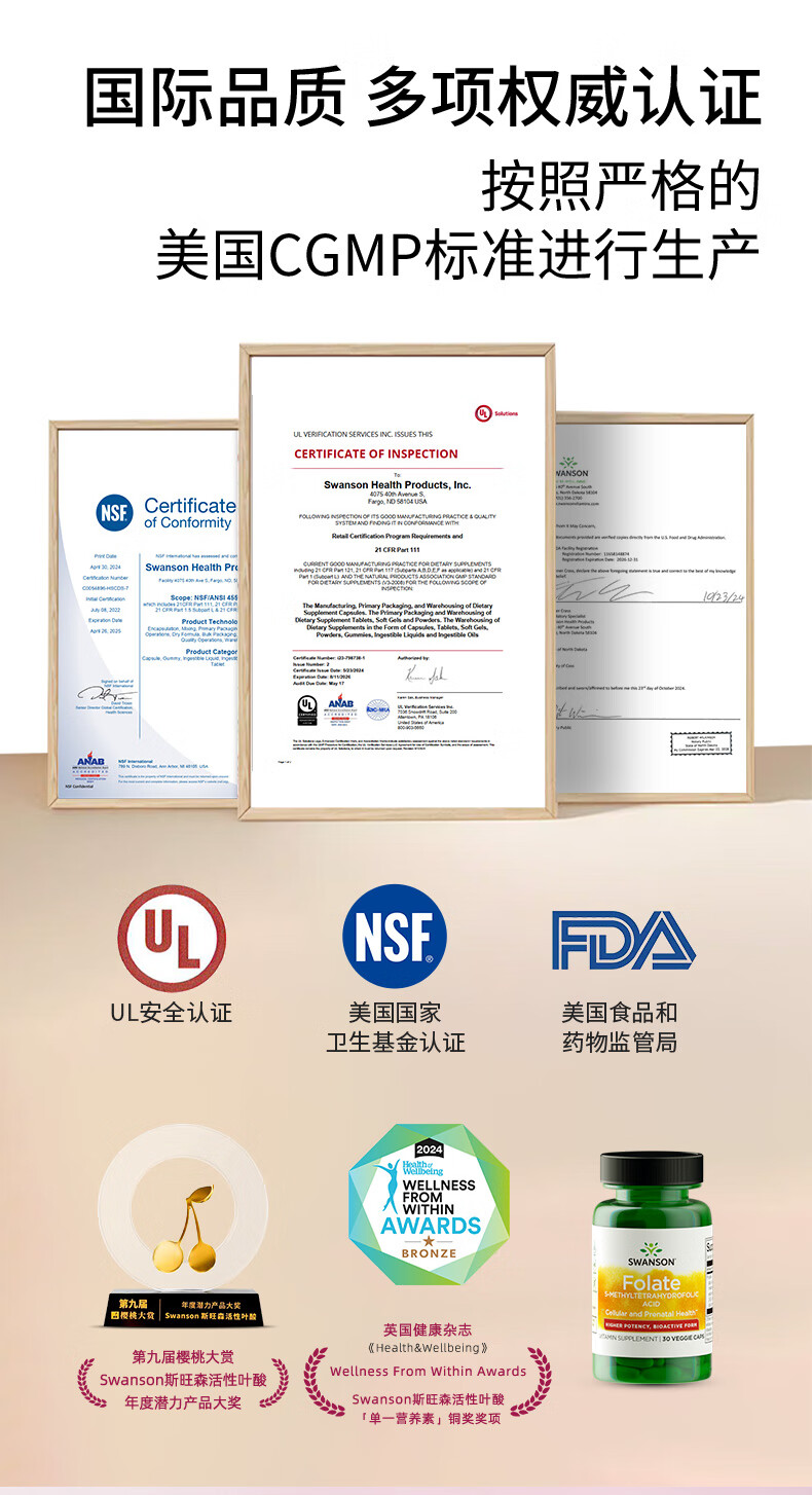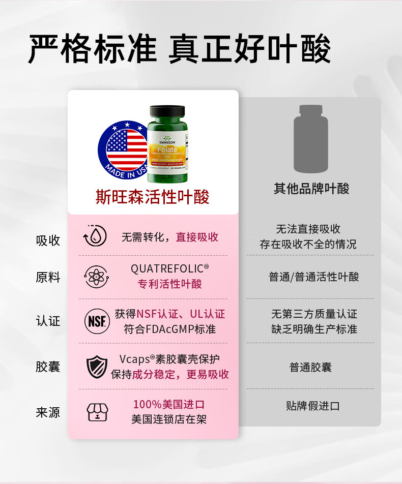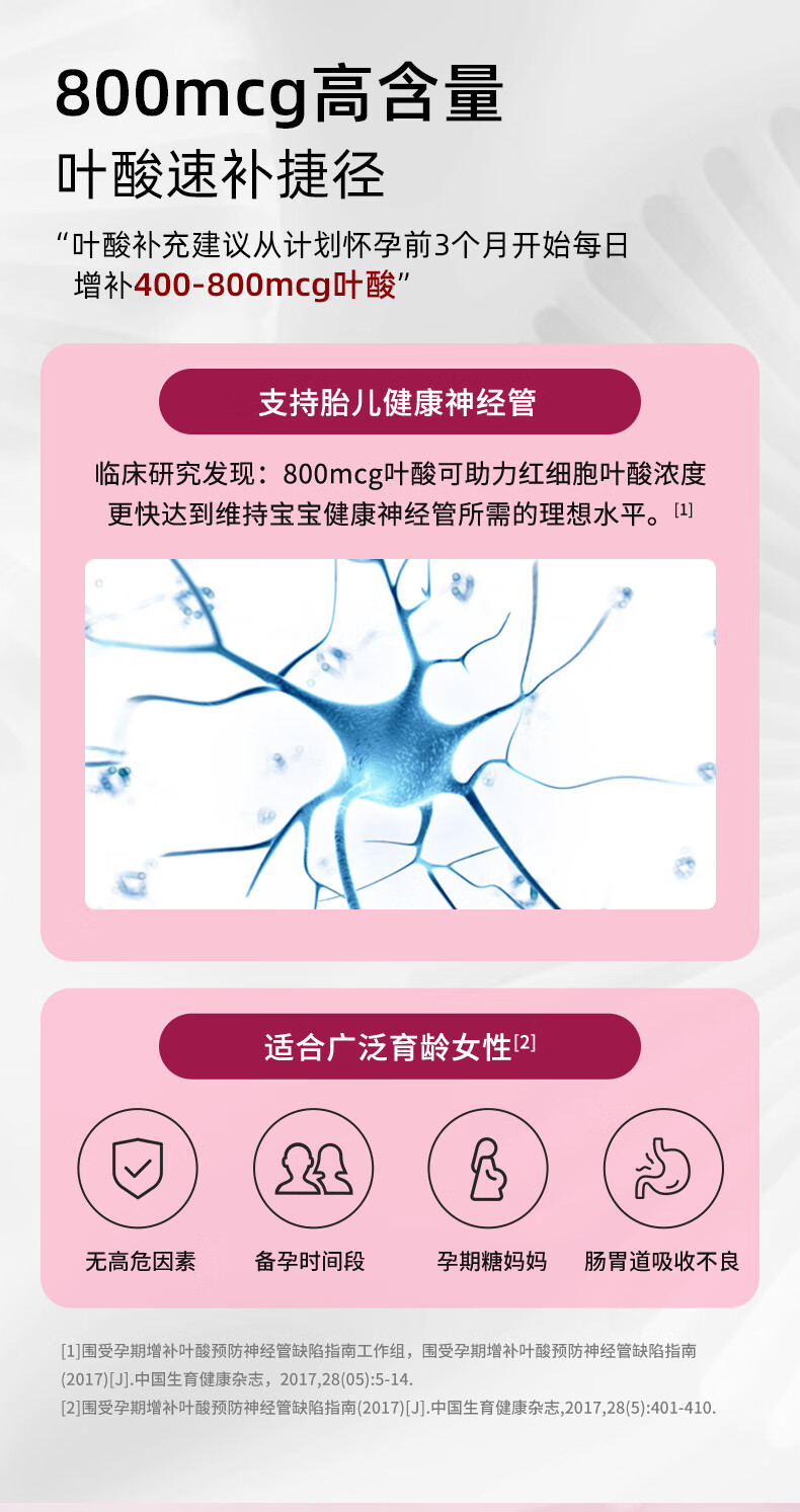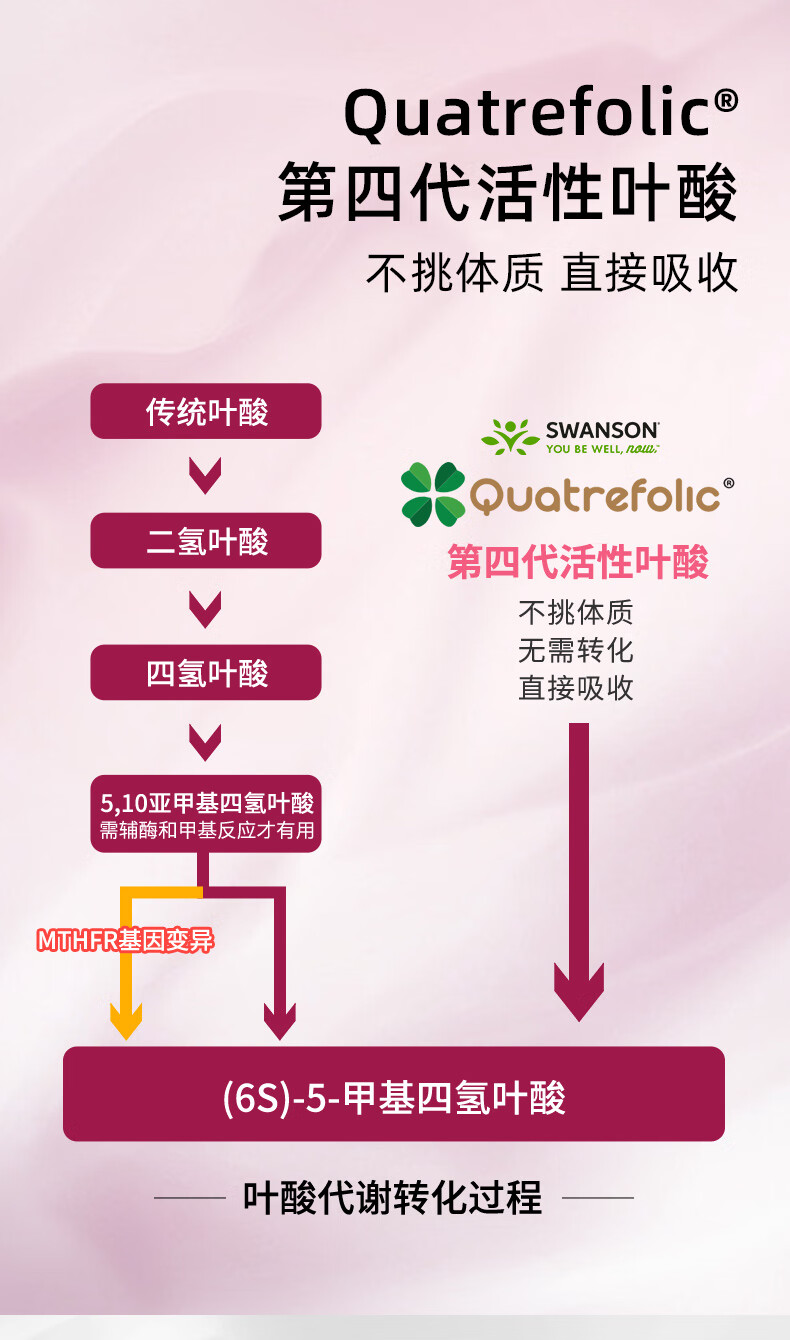 斯旺森(SWANSON)高活性叶酸800mcg30粒mini胶囊 男女士备孕孕妇CT/TT无碘专利配方