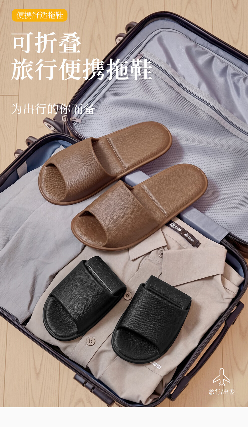FZT可折叠拖鞋女旅行便捷式出差旅游飞机酒店洗澡防滑一次性凉拖鞋男 卡其 38-39 【内长245mm】