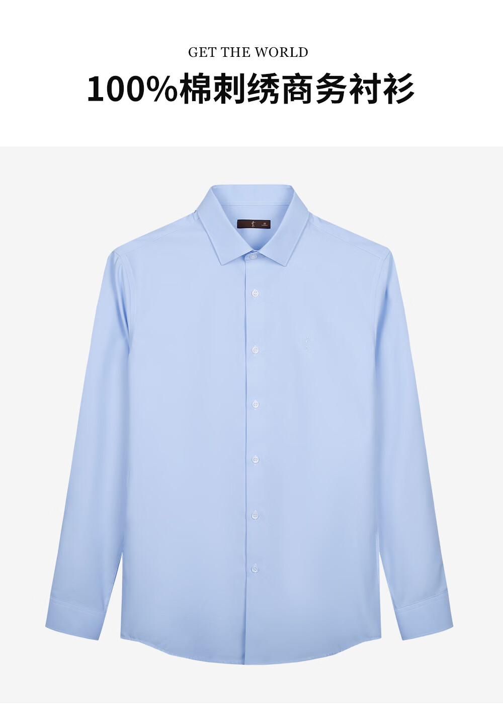 才子(TRIES)男士长袖纯棉商务衬衫100%全棉亲肤透气绵柔商务通勤职业正装衬衣 蓝色 38
