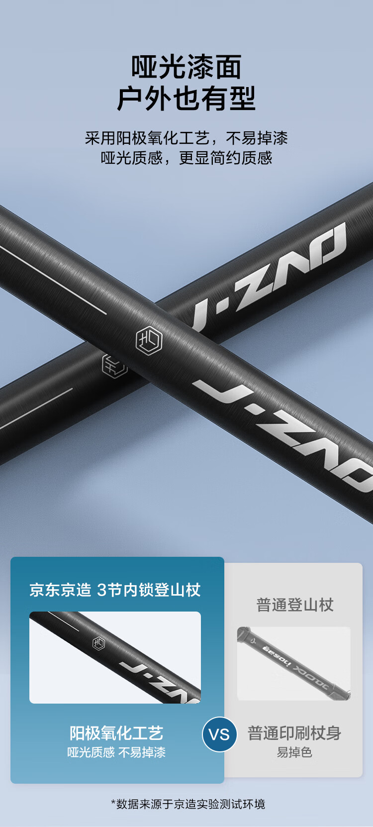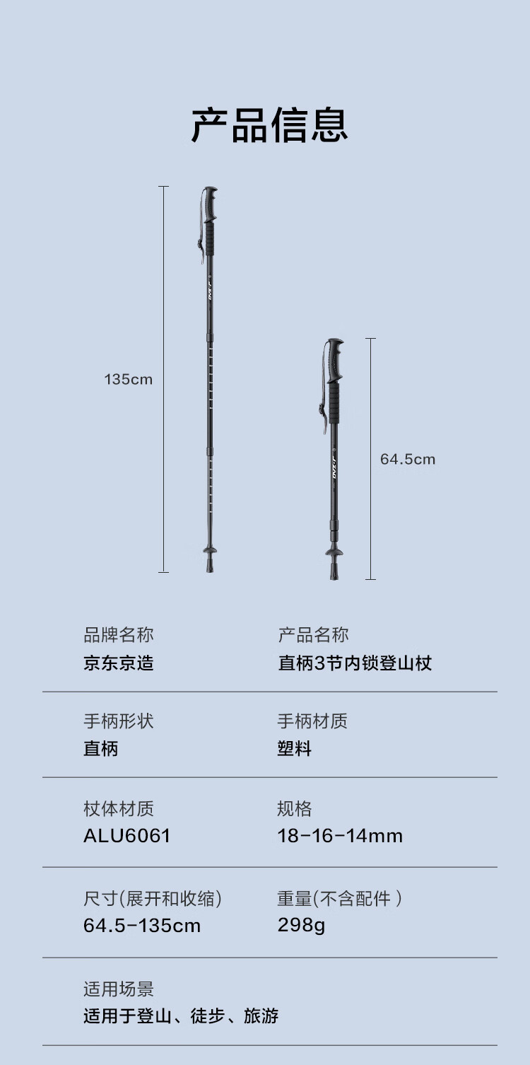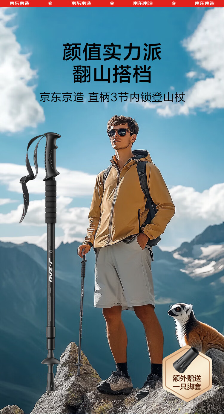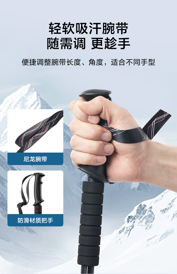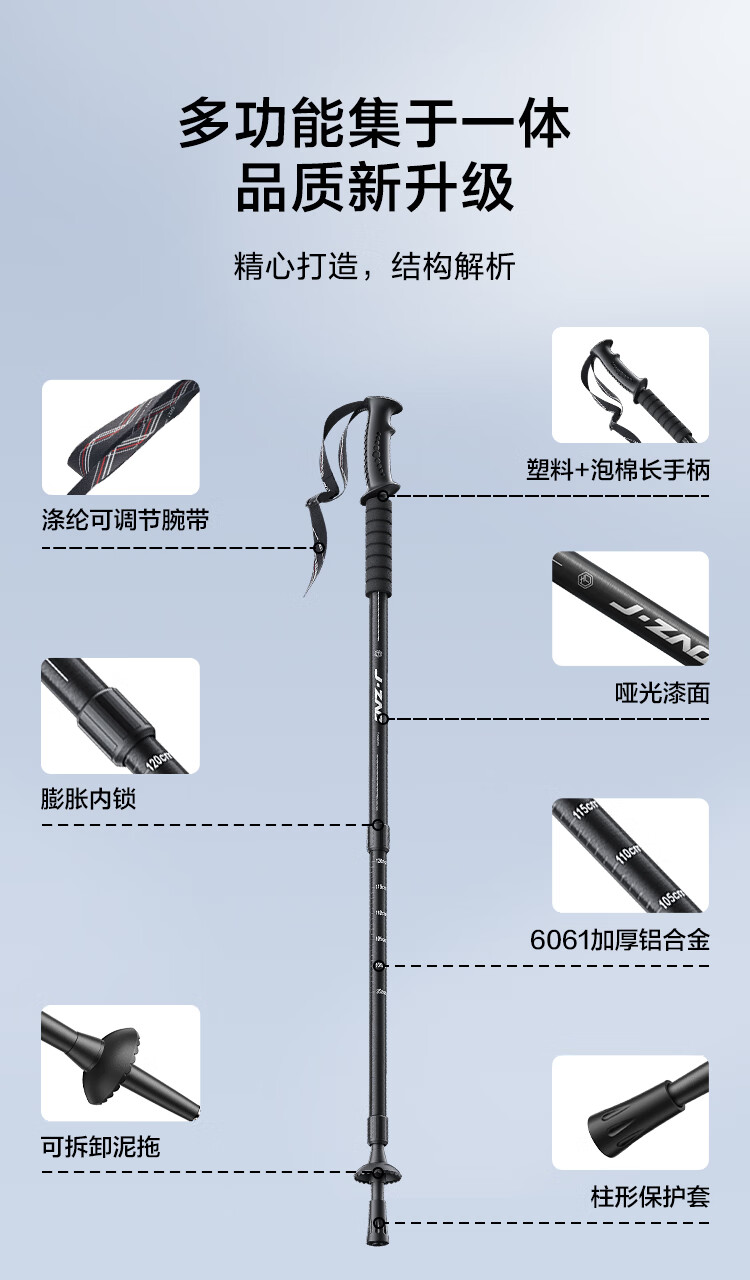 京东京造 峰境直柄6系铝合金登山杖拐杖三节伸缩户外爬山徒步超轻手杖黑色