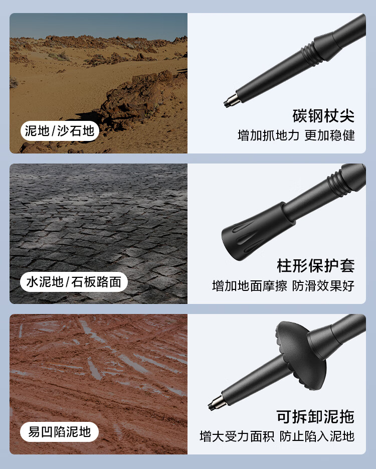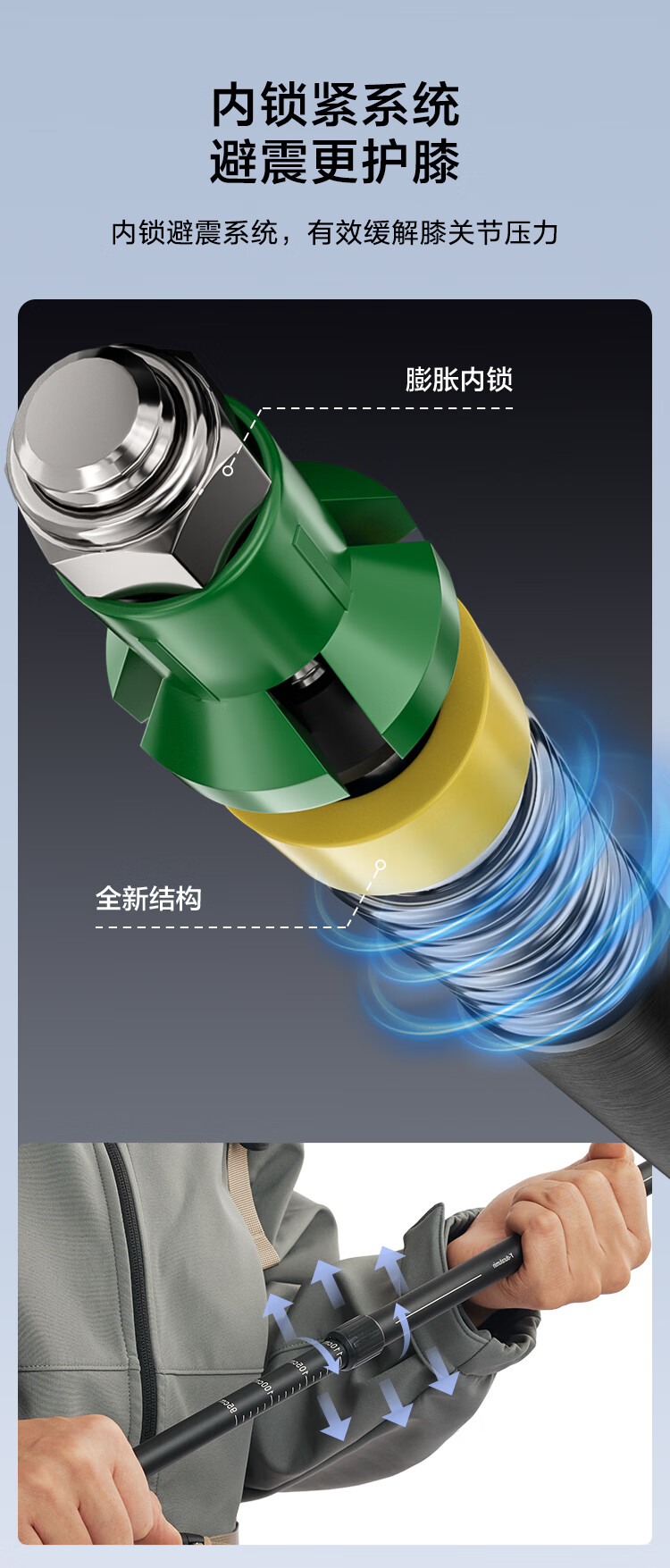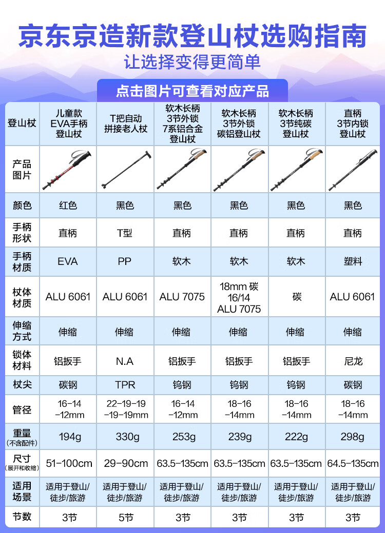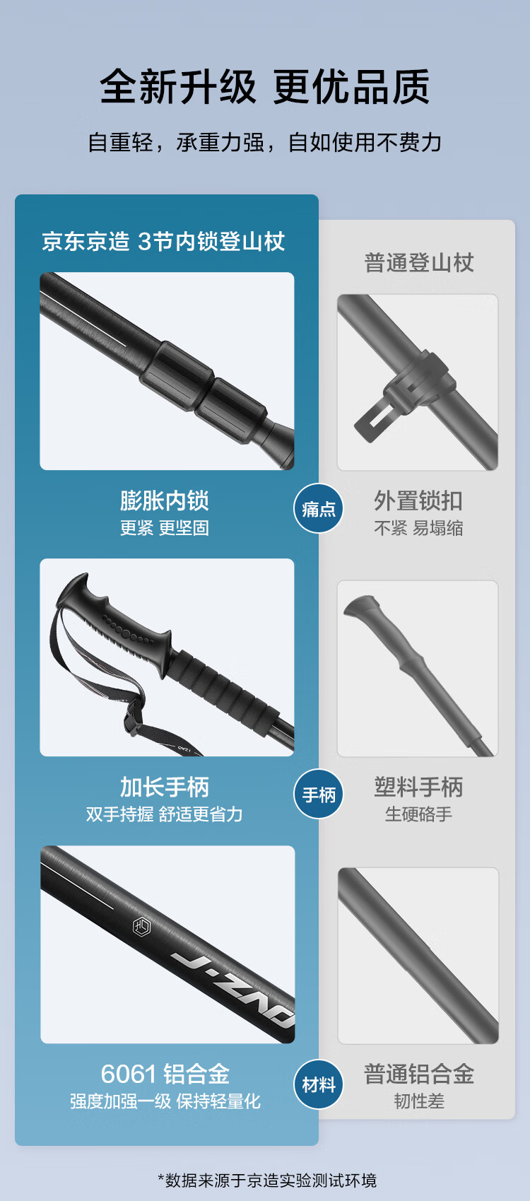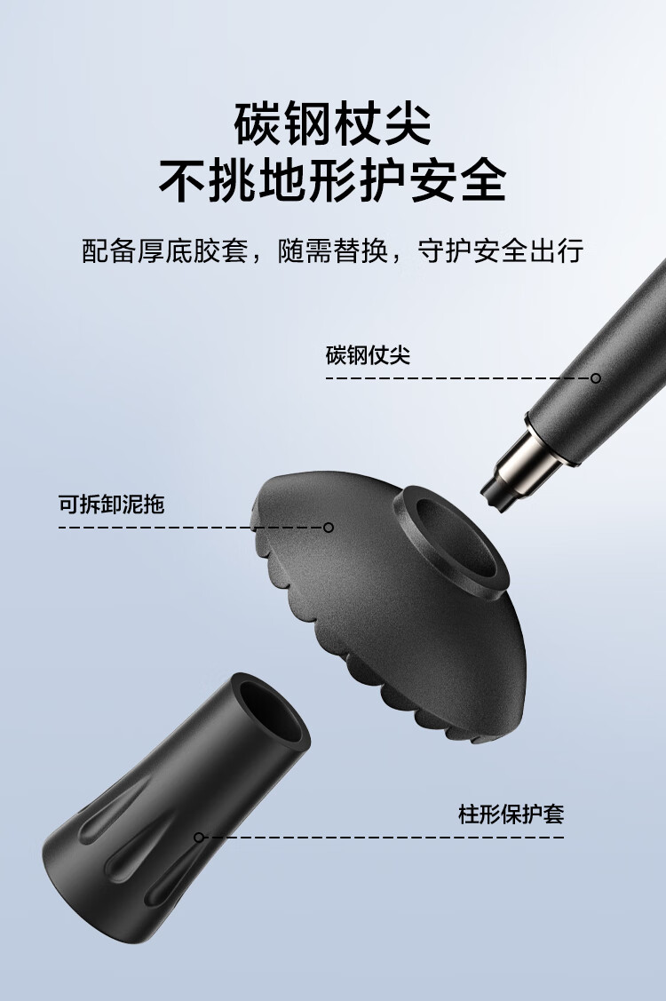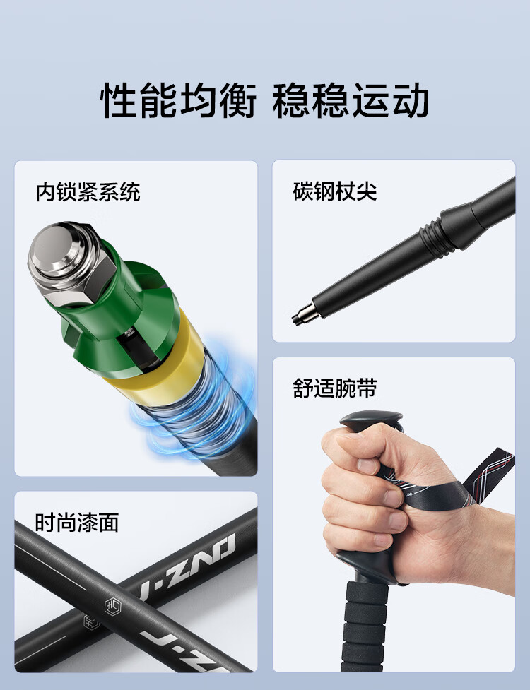 京东京造 峰境直柄6系铝合金登山杖拐杖三节伸缩户外爬山徒步超轻手杖黑色