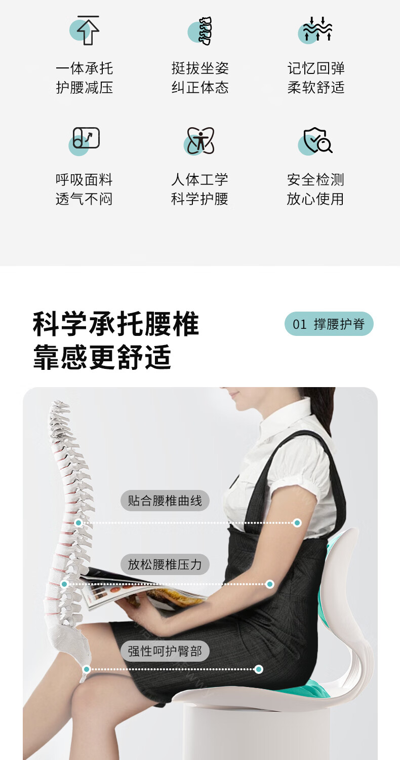 树浩床上靠背椅矫姿坐垫办公室单人飘窗靠椅懒人沙发护腰靠背垫哺乳椅 成人款【护腰矫姿】宁静绿