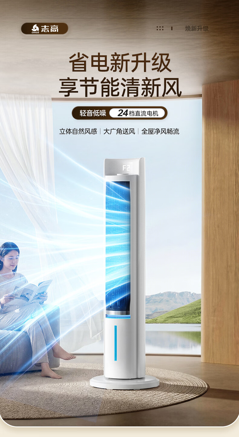 志高空调扇家用冷风机冷气小型宿舍移动立式落地水冷塔式冷风扇加水制冷机单冷 升级加高-直流负离子语音冷风款【24档】配8个冰晶