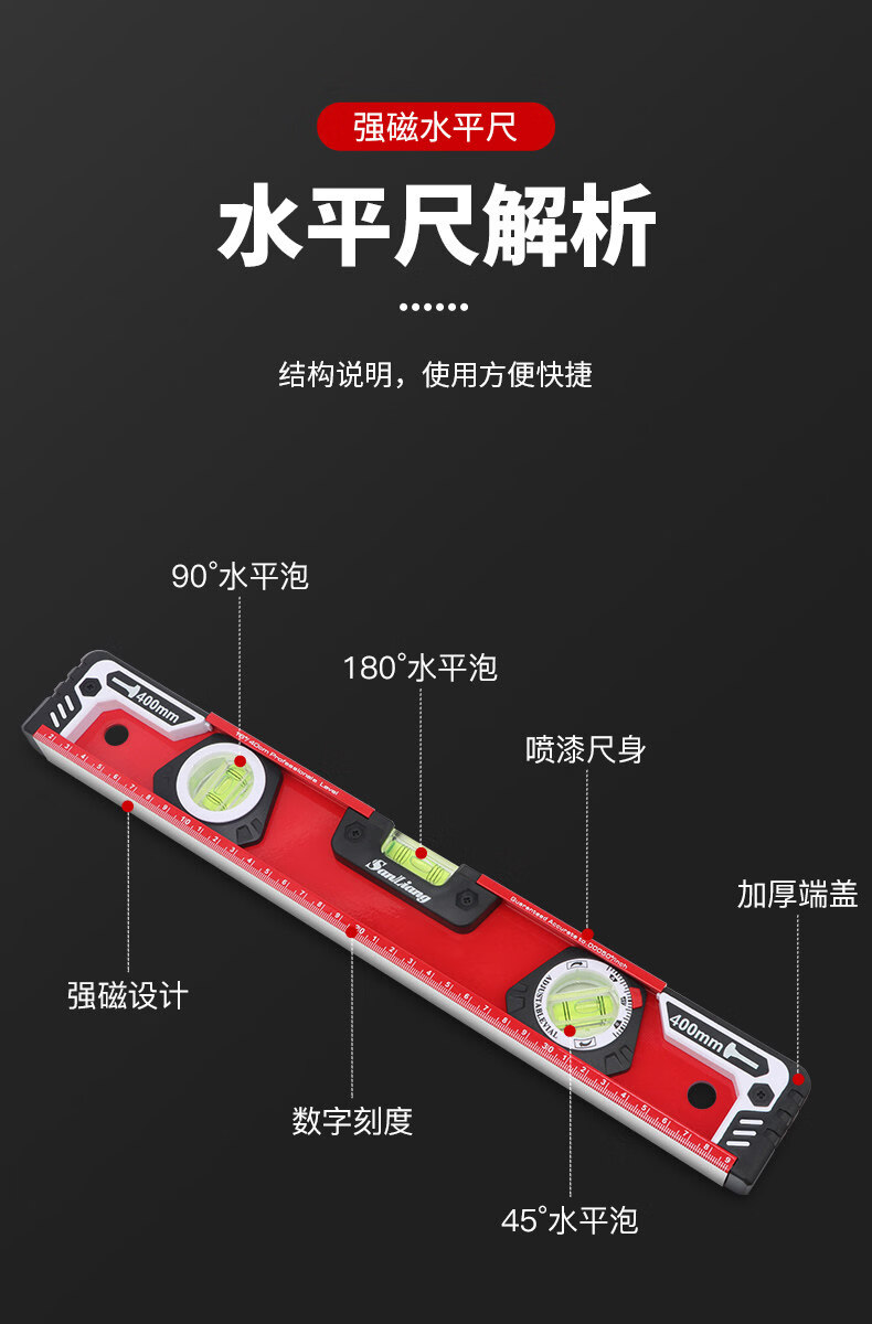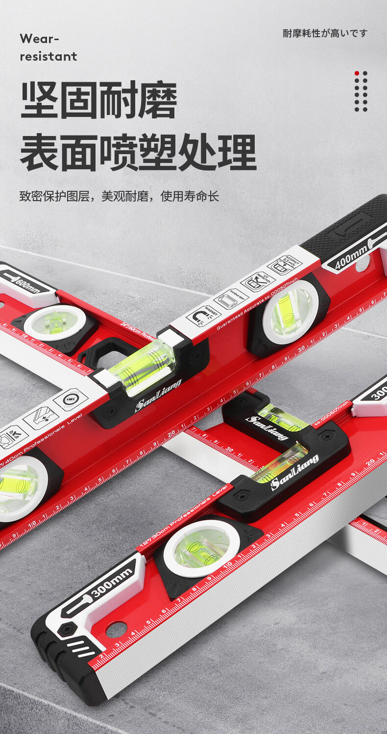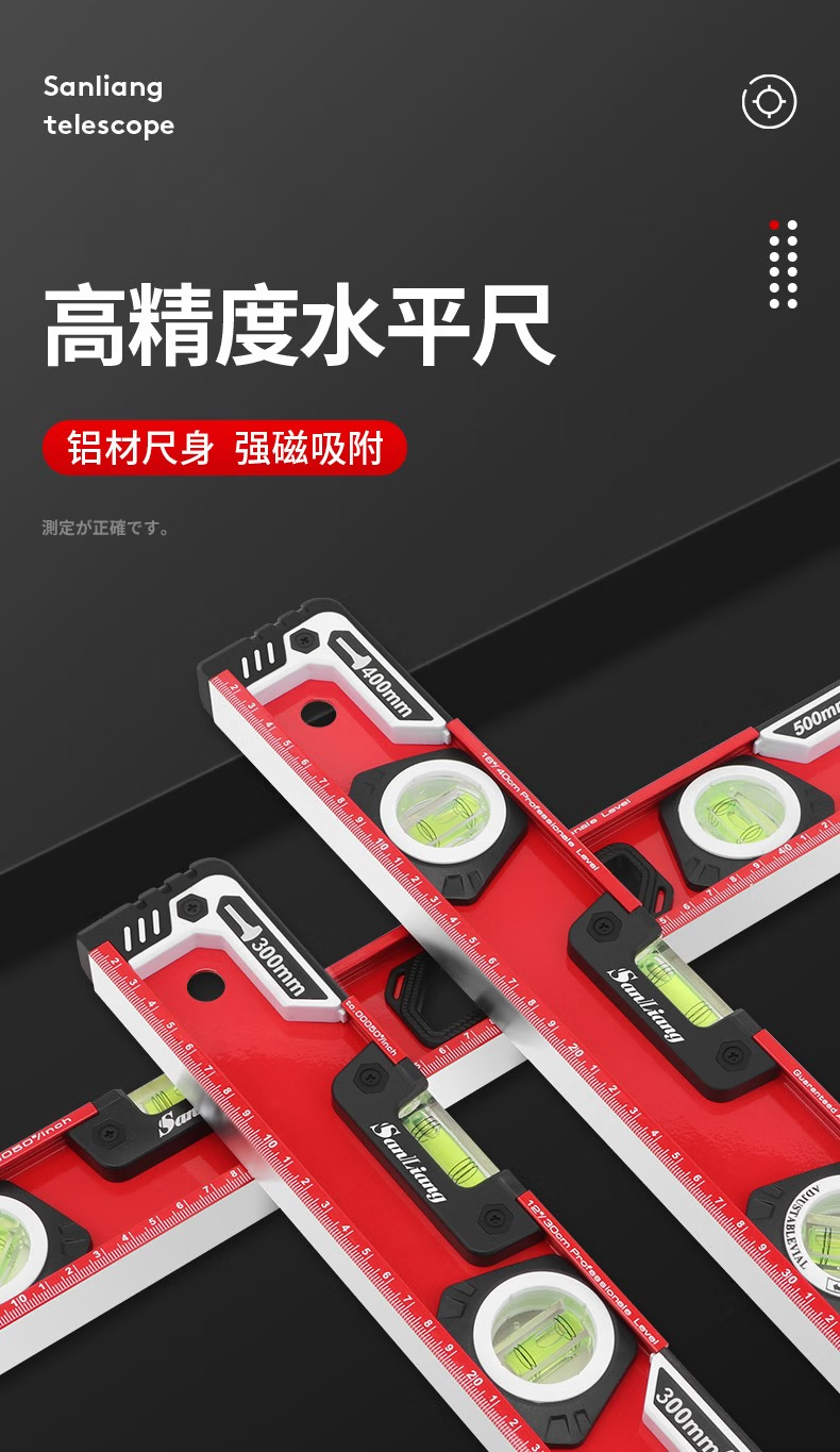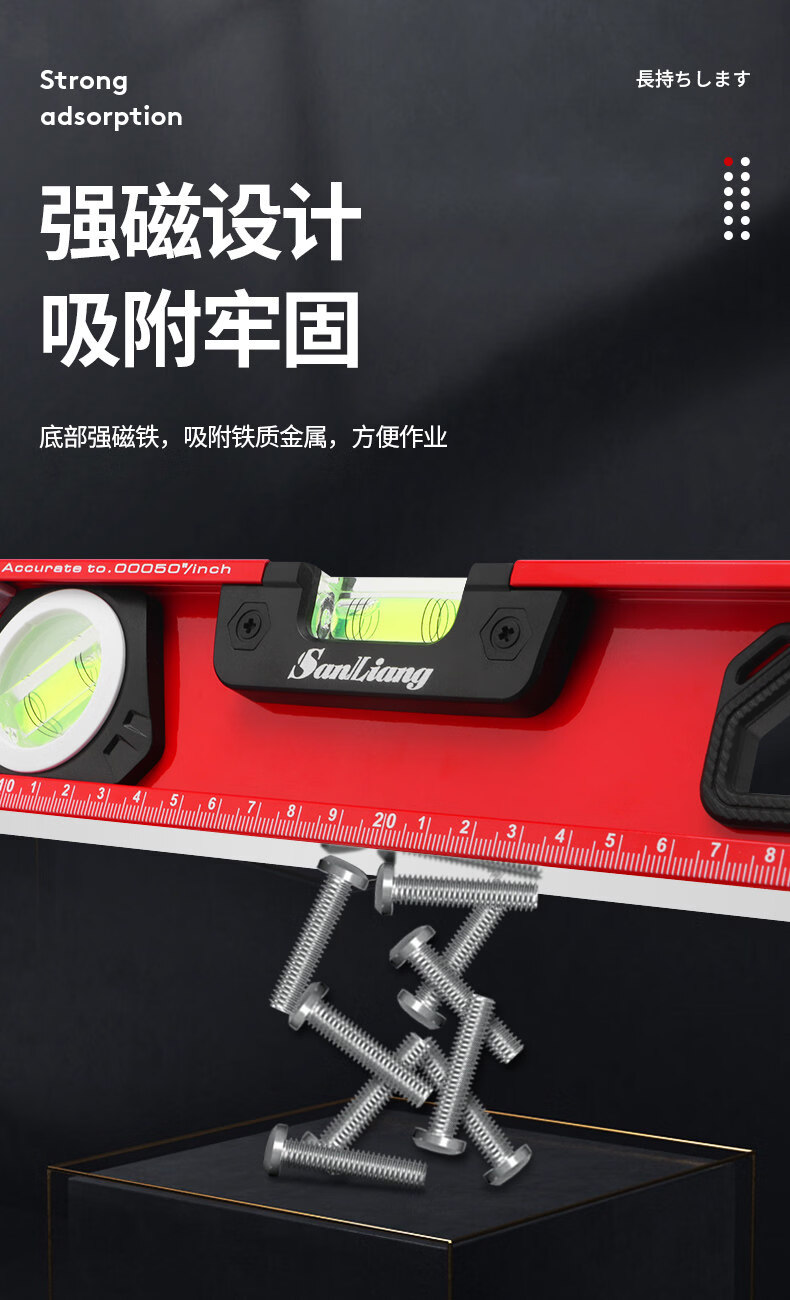 三量(sanliang)正品三量平衡仪水平尺带磁超厚铝合金水平高精度迷你小型测量尺 187-121强磁工业级300mm 无规格