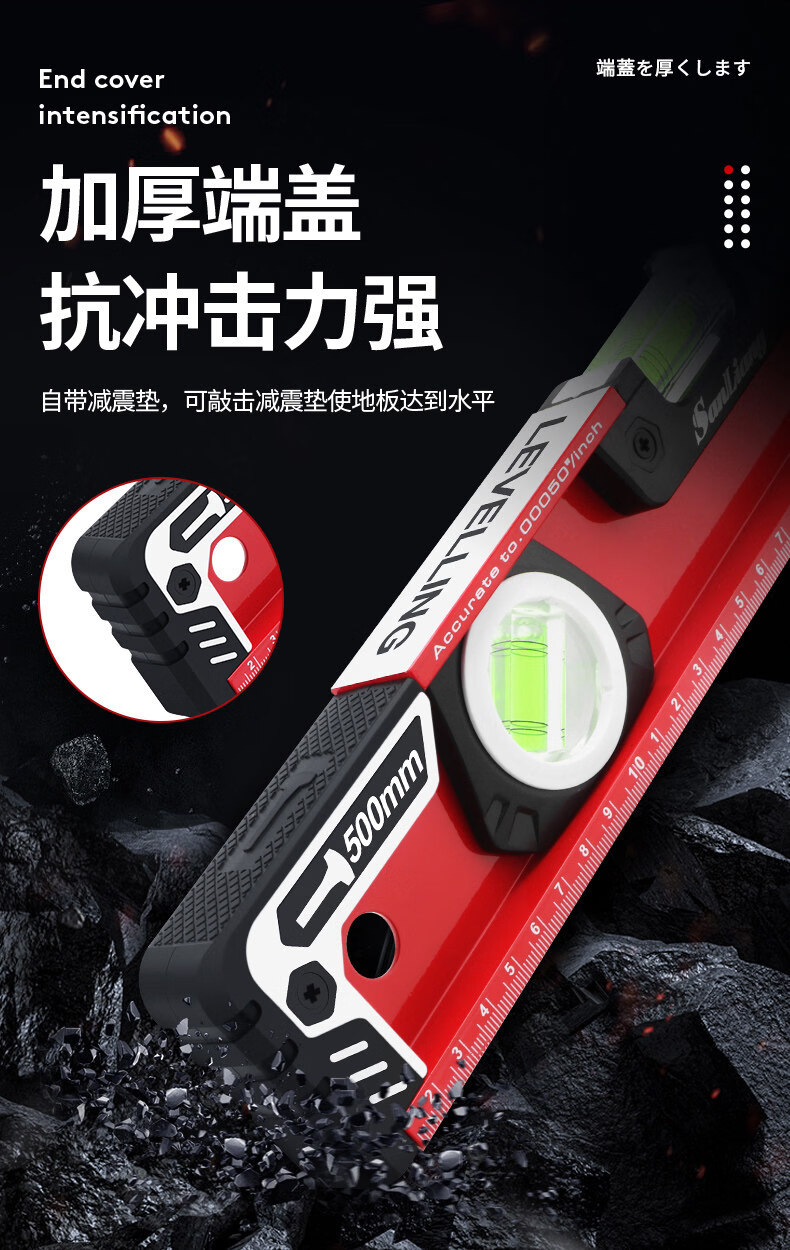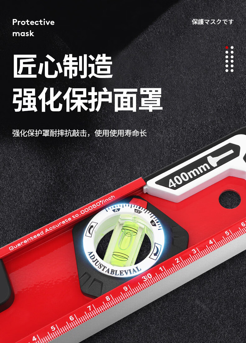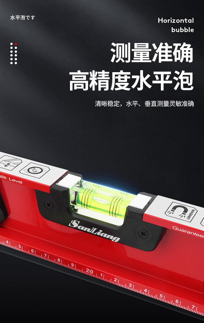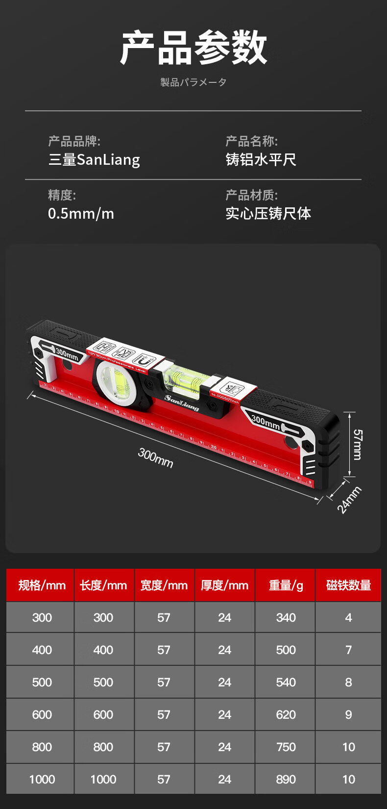 三量(sanliang)正品三量平衡仪水平尺带磁超厚铝合金水平高精度迷你小型测量尺 187-121强磁工业级300mm 无规格