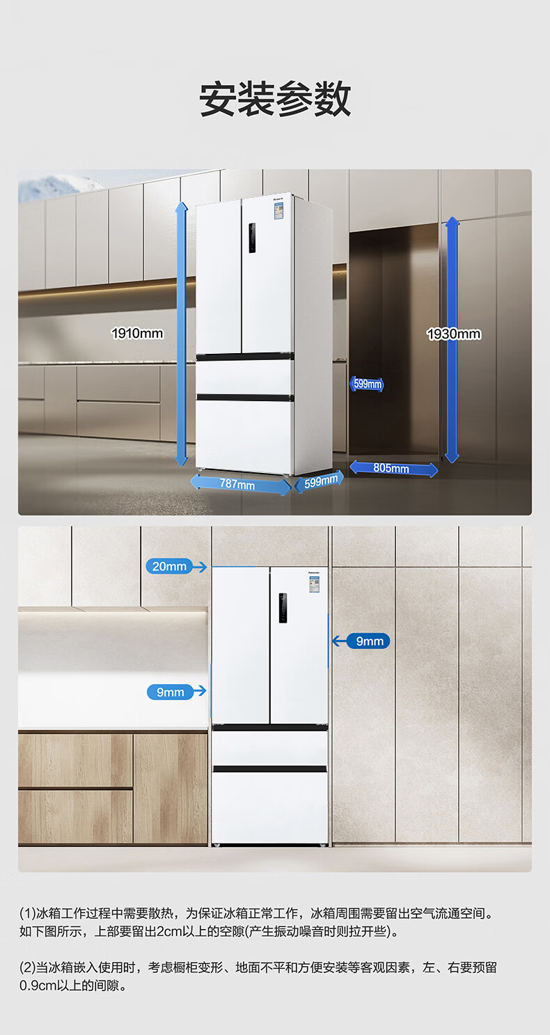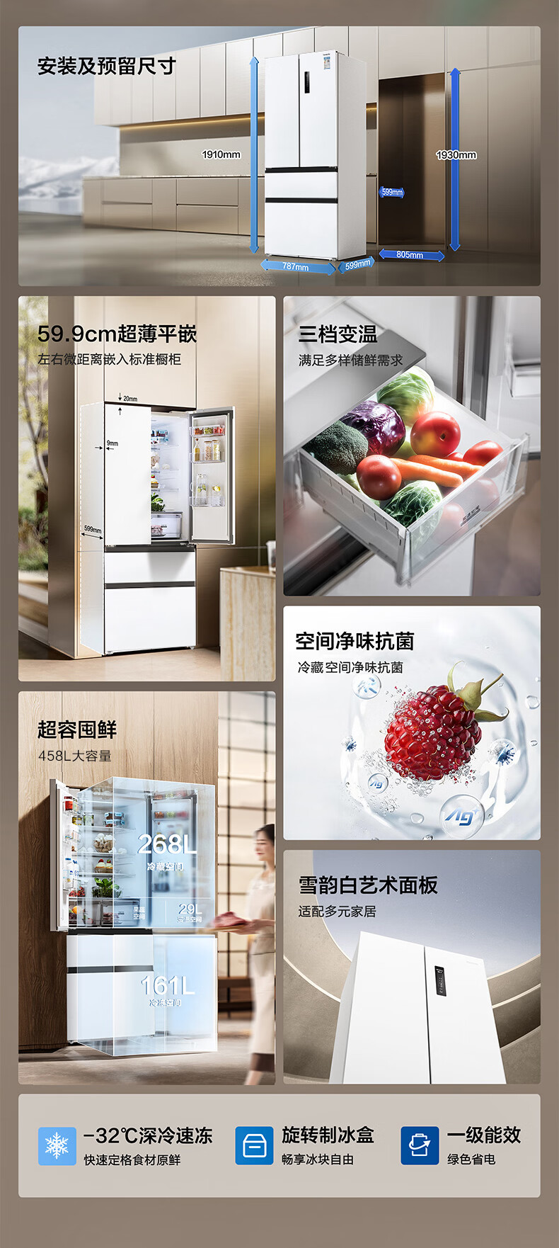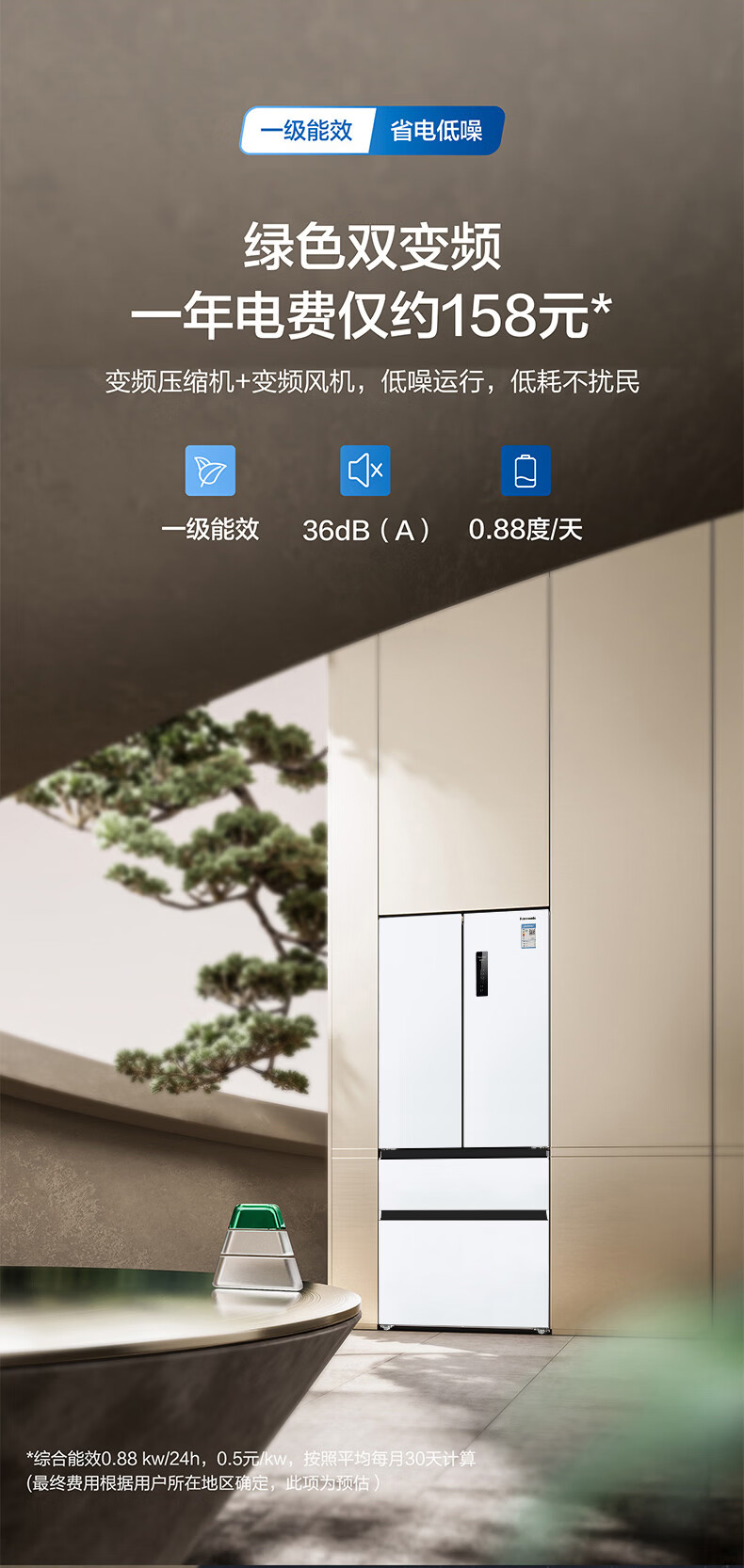 松下(Panasonic)雪墩墩458L法式多门冰箱超薄嵌入制冰银离子净味三挡变温一级能效风冷珠光白NR-XG46PEA-W以旧换新 【雪墩墩法式】小户型大容量