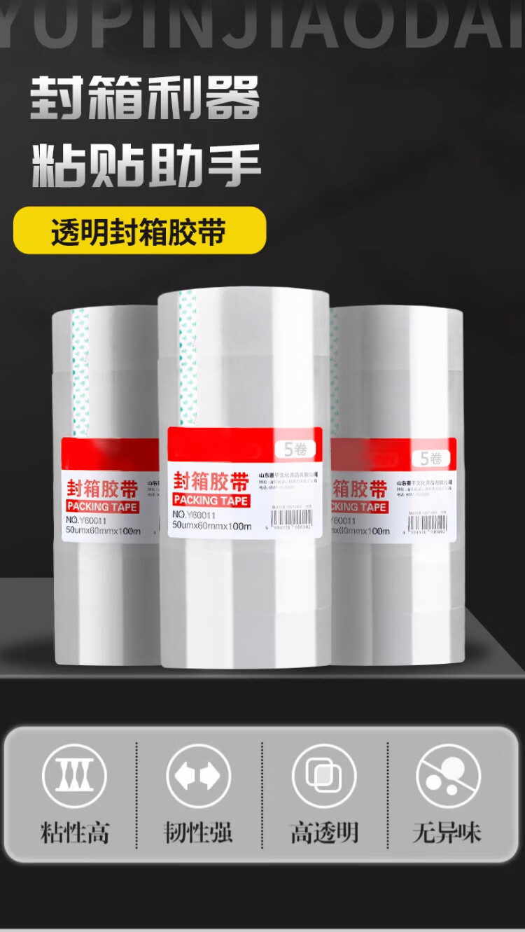 大卷封口透明胶带加宽带封箱带高透明胶布胶纸包装宽胶带快递打包高粘度纳米胶粘性强粘贴 宽45mm*长100米(1卷装)