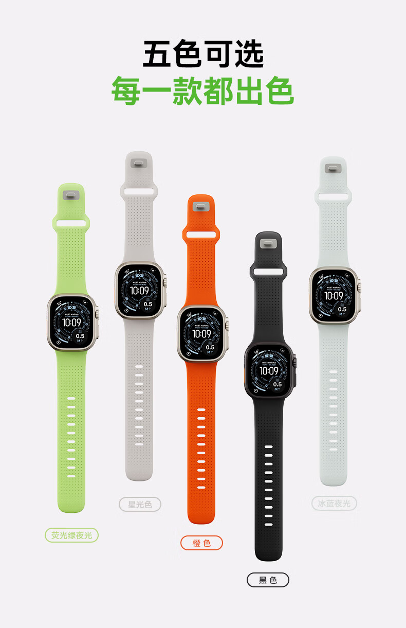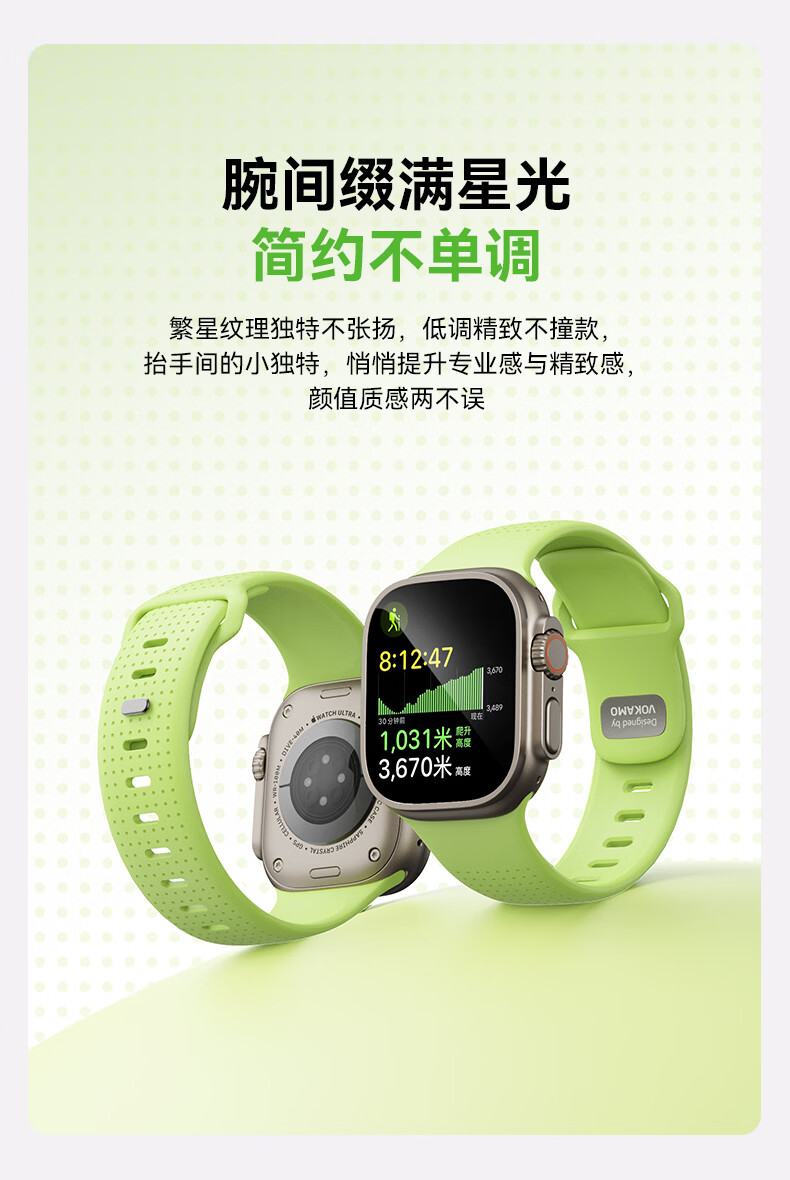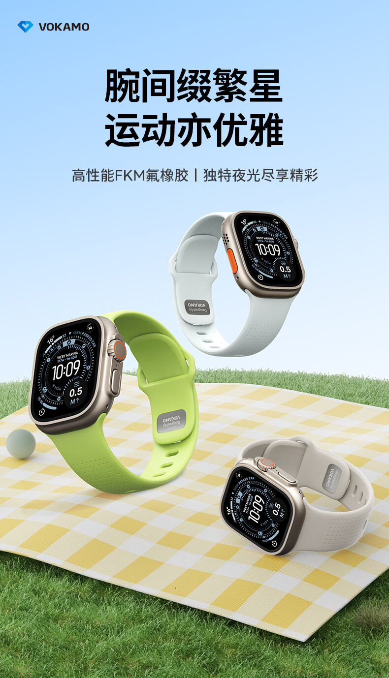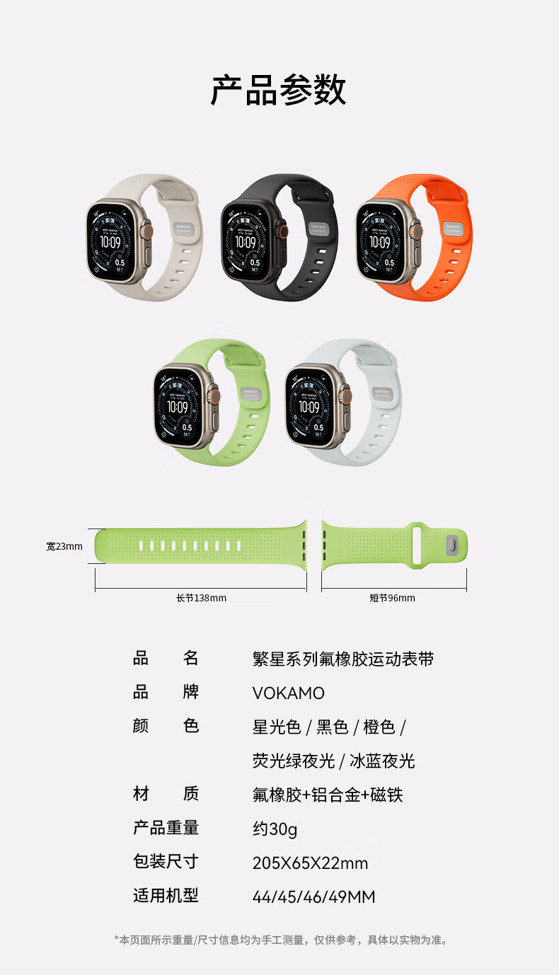 VOKAMO适用iwatch11表带S11苹果S10手表applewatch10新款S9氟橡胶8磁吸7春夏男女高级感ultra3/2/1运动 星光色 44/45/46/49mm
