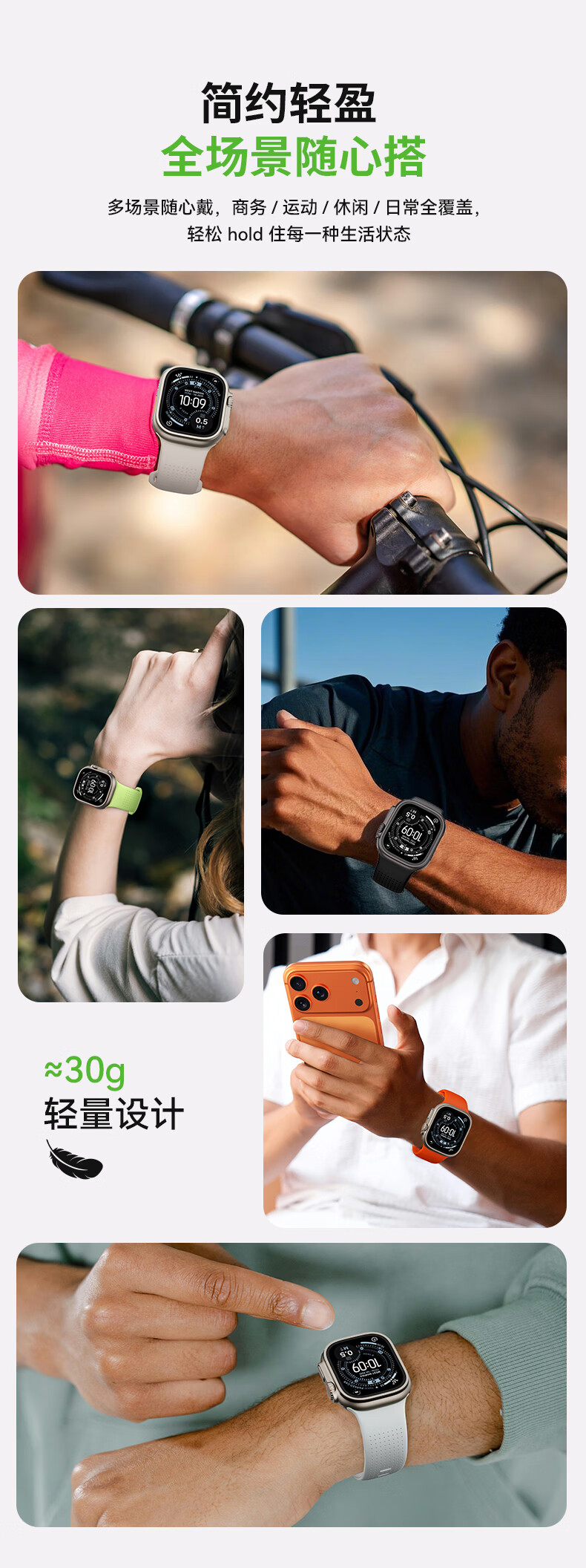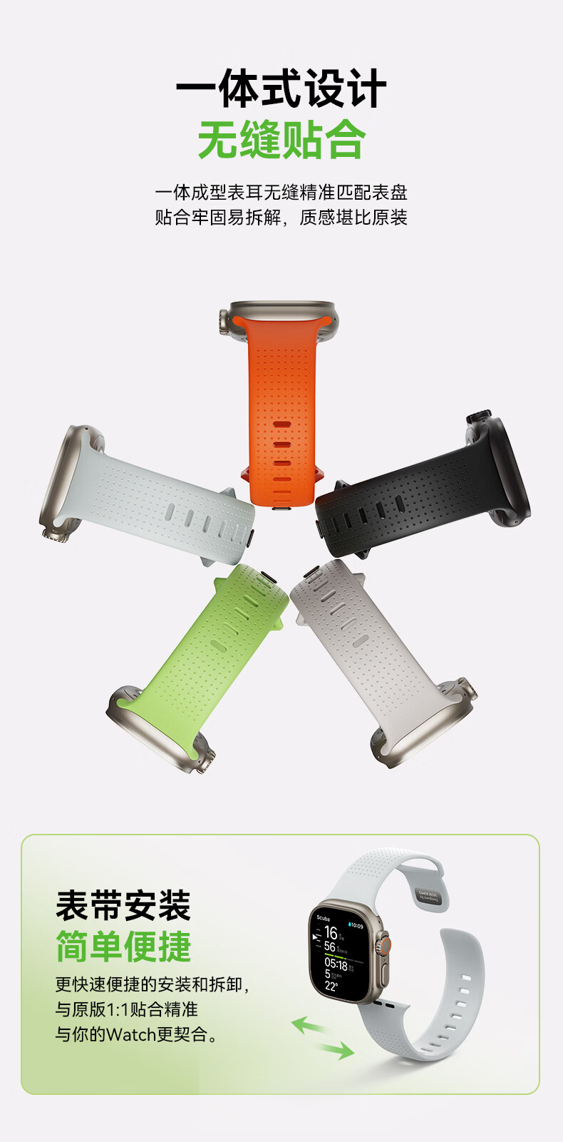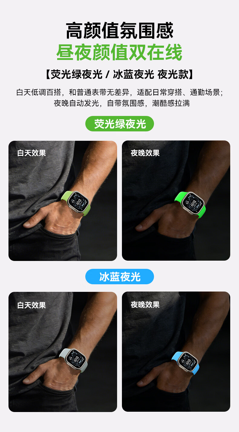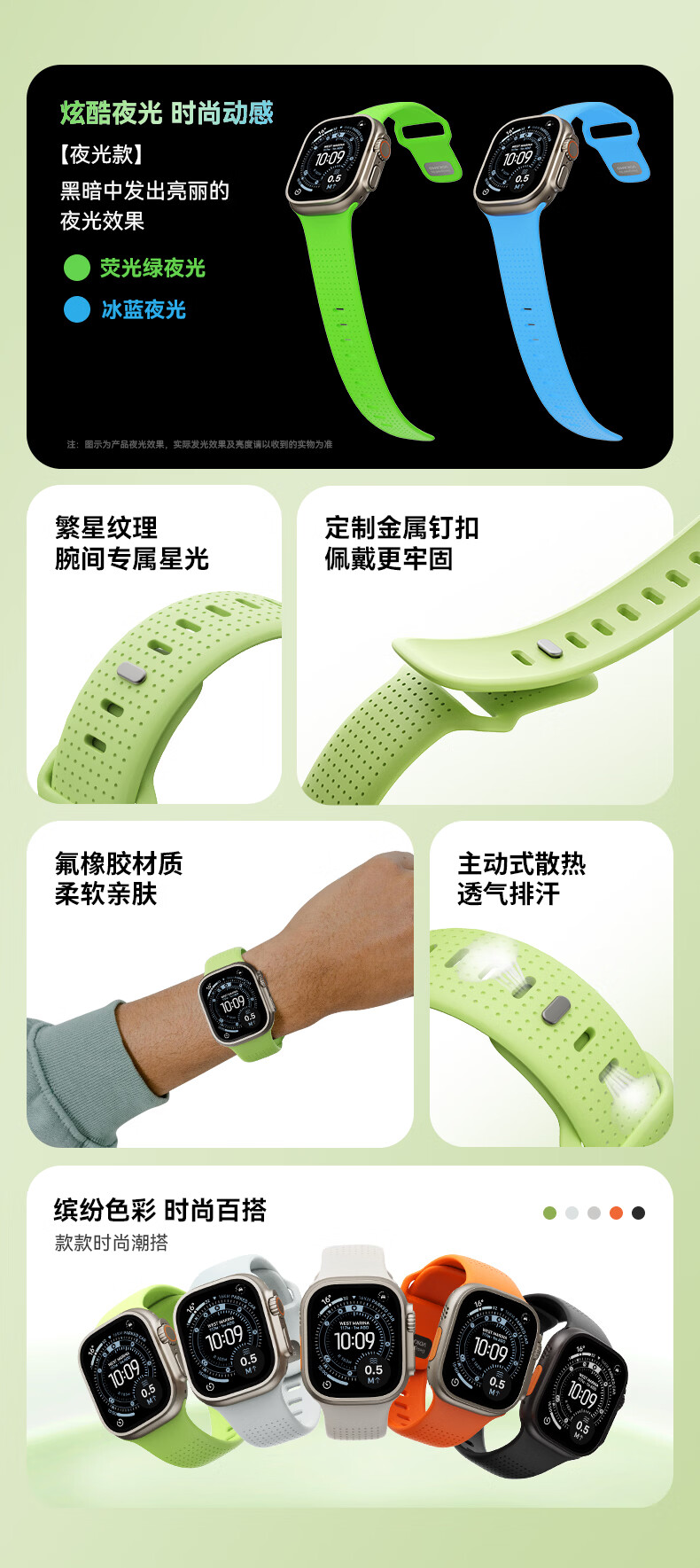 VOKAMO适用iwatch11表带S11苹果S10手表applewatch10新款S9氟橡胶8磁吸7春夏男女高级感ultra3/2/1运动 星光色 44/45/46/49mm