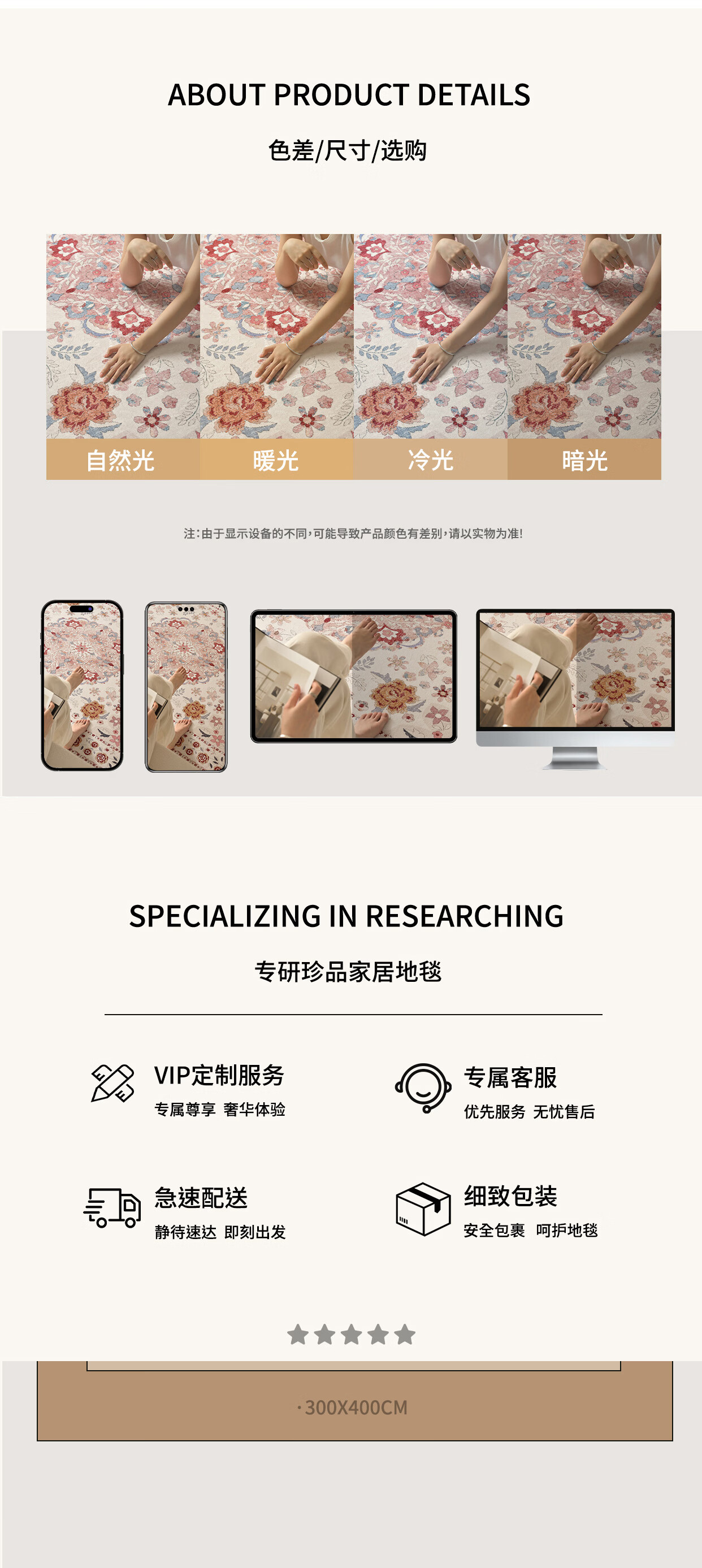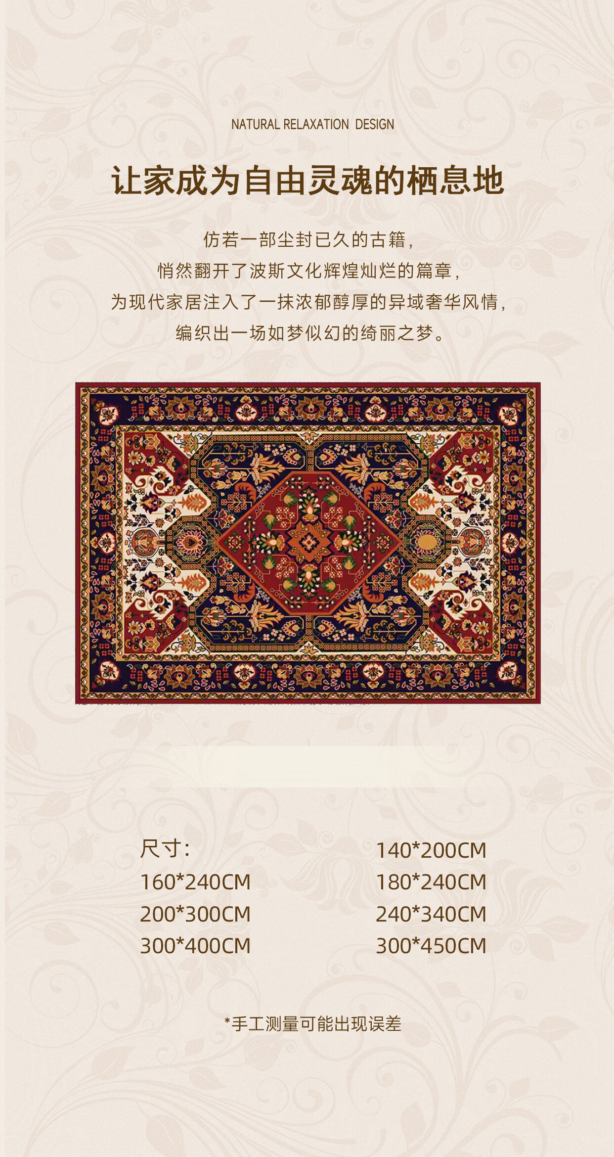 KAYE客厅地毯波斯风家用轻奢高级感地垫加厚卧室床边毯子免洗可擦定制 SJR-K霜华-01 120X160cm