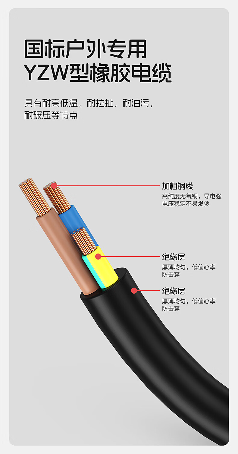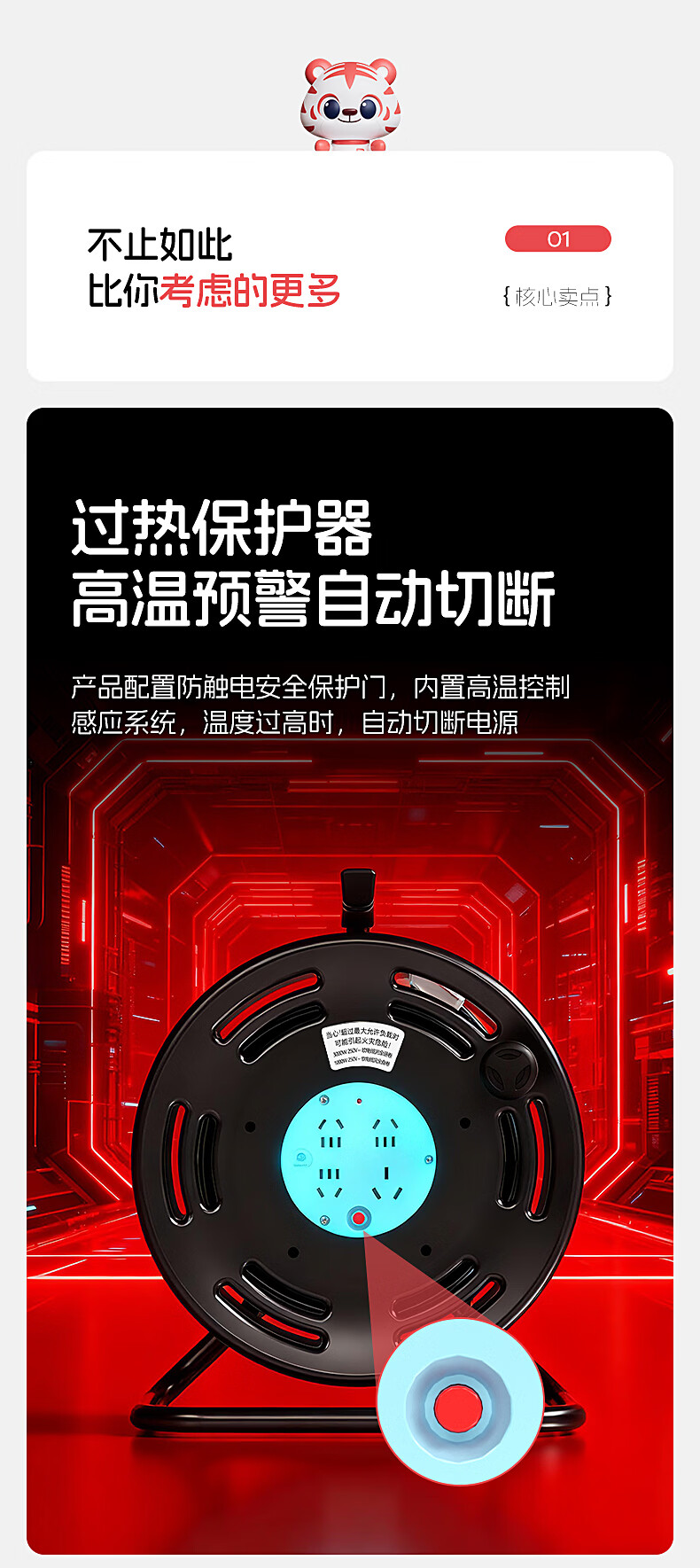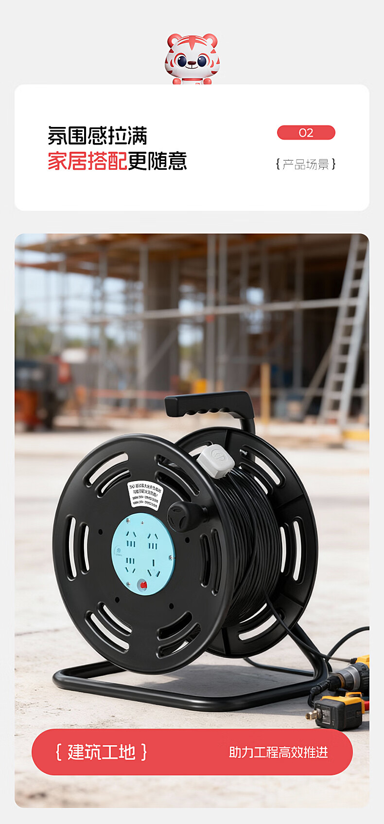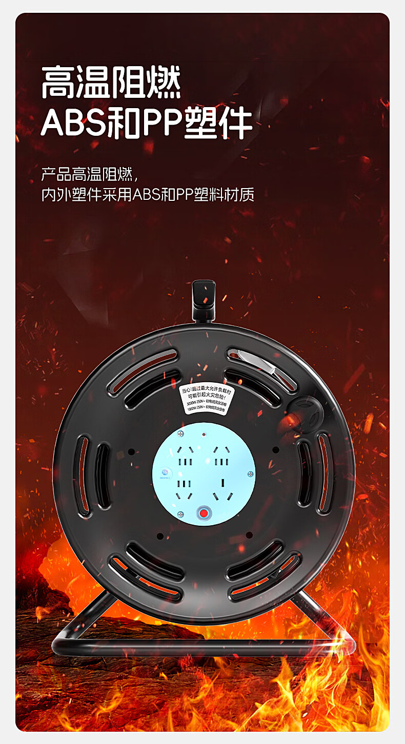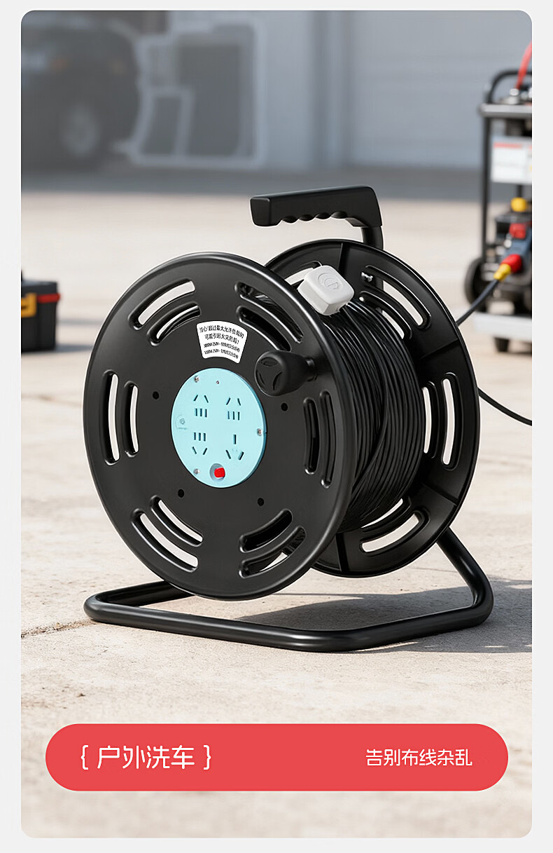 国际电工户外移动电缆卷线盘过热保护工程接线盘漏电过载保护插排卷线器 4位五孔国标插座 线盘带过载16A-3芯1.5平30米电缆线