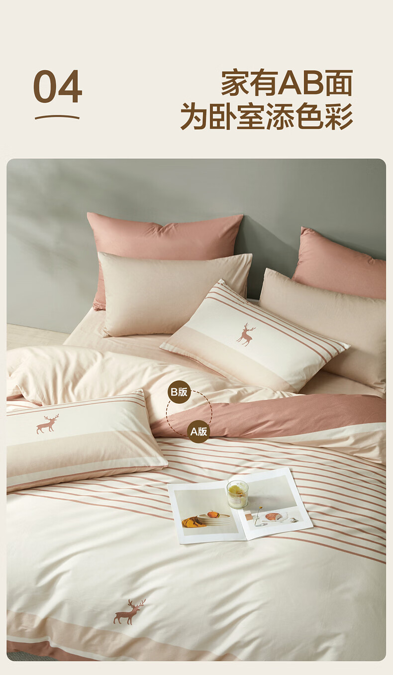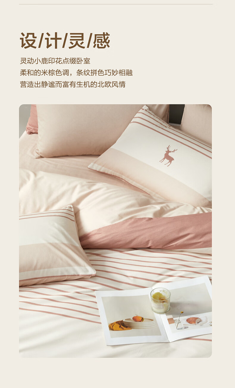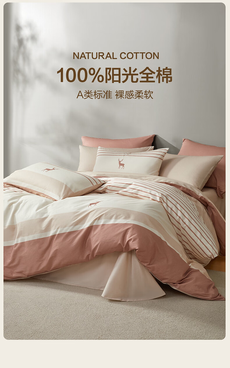 水星家纺四件套床上用品纯棉100%全棉床单被套亲肤透气26年新款套件 北欧·简境 床单款 (被套150*210cm)
