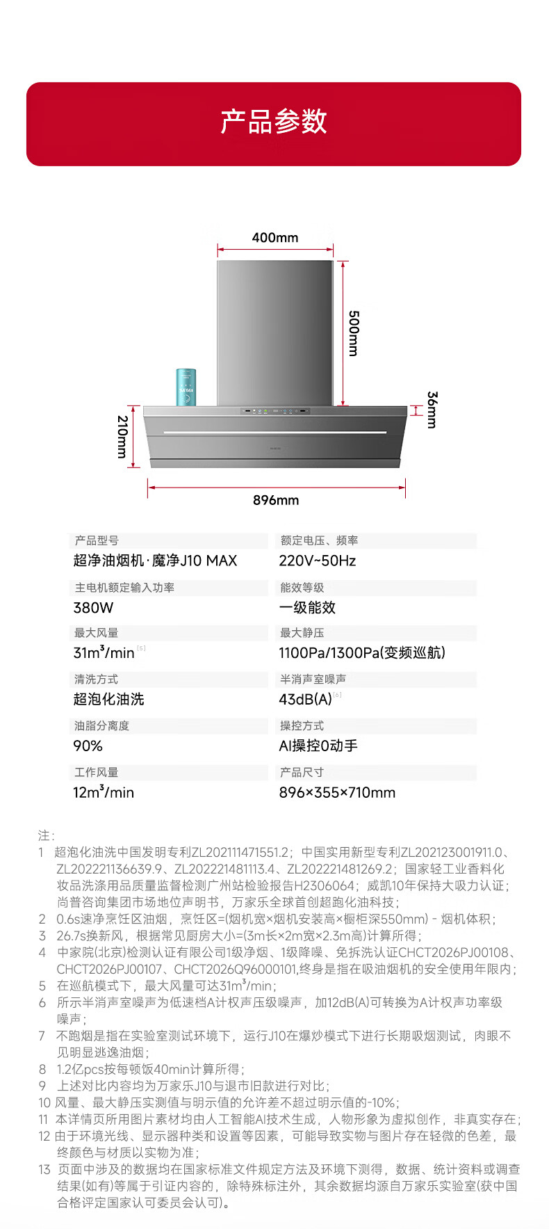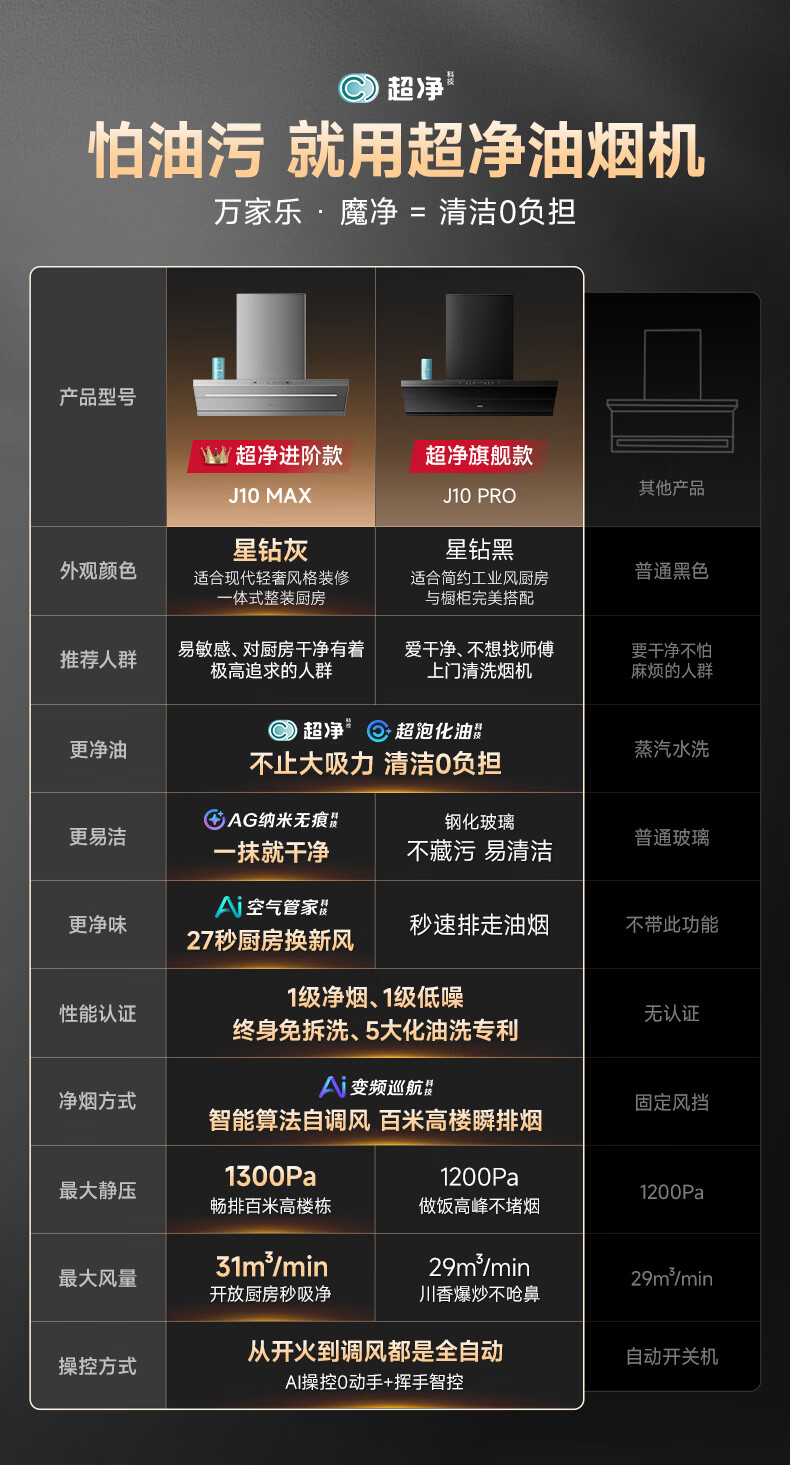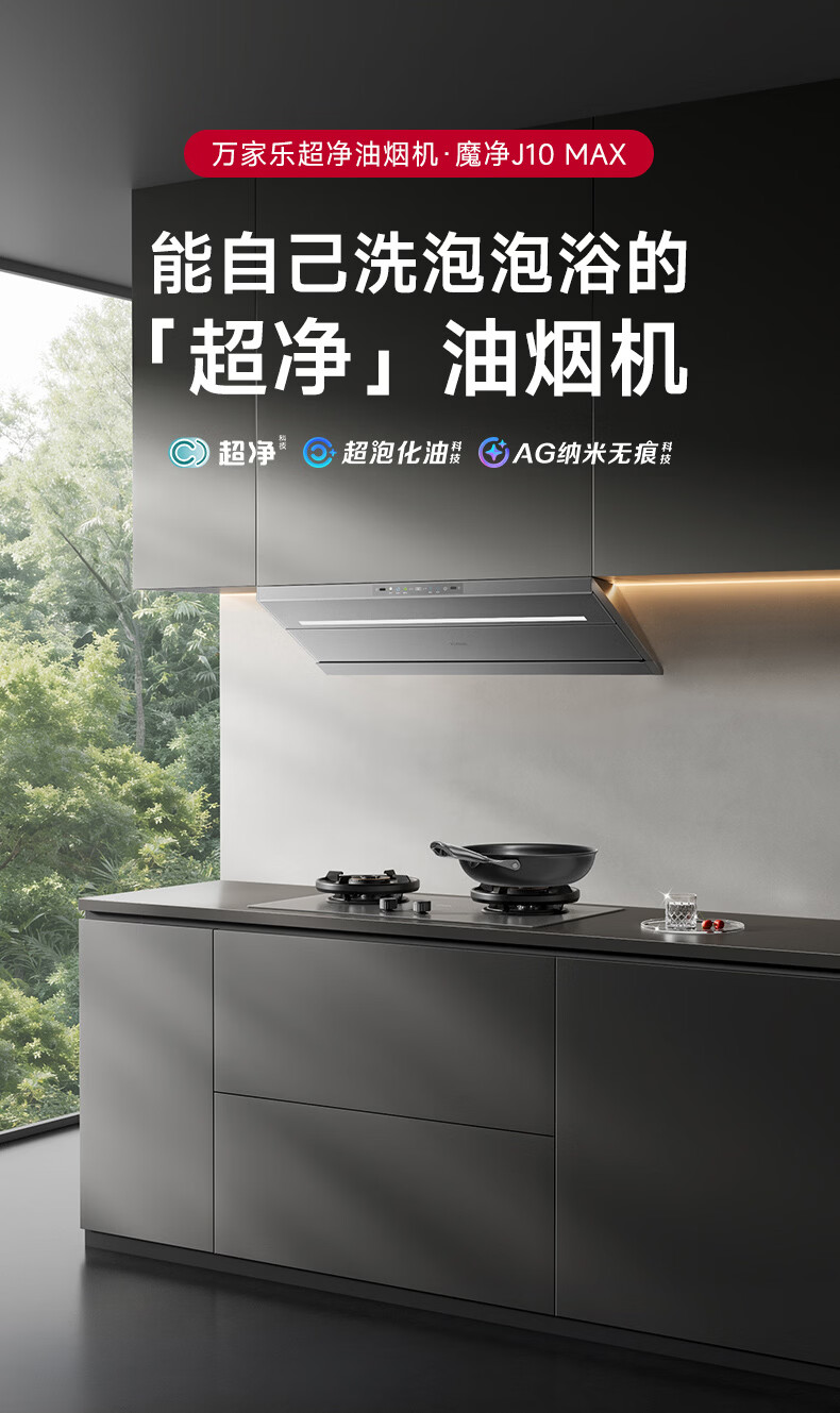 万家乐【全红婵同款超净油烟机·魔净J10Max】31m³大吸力72%热效率定时烟灶联动套装J10Max+K9Pro天然气