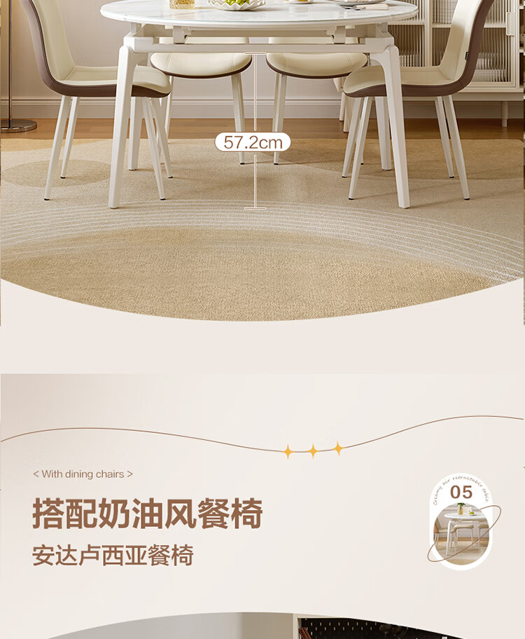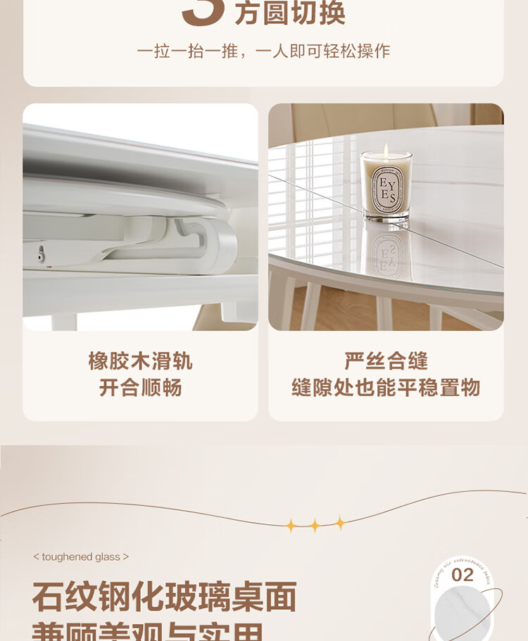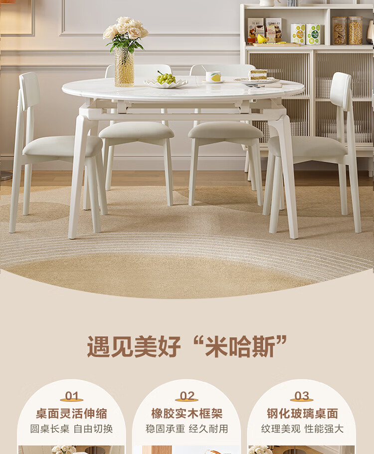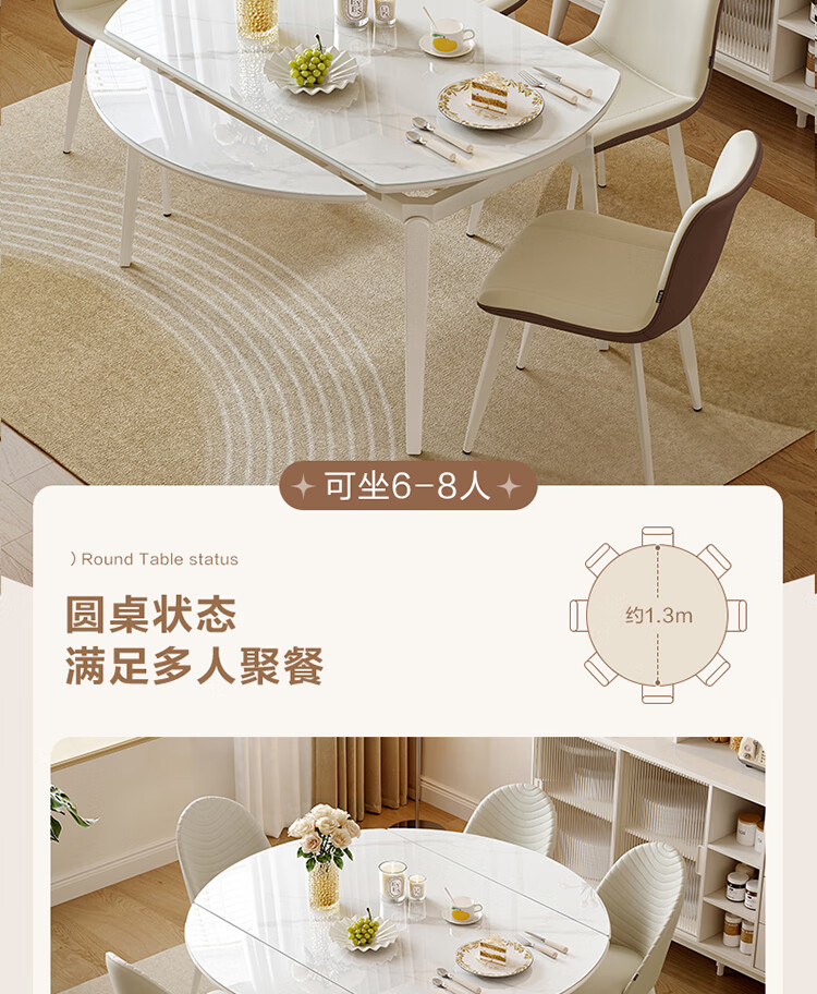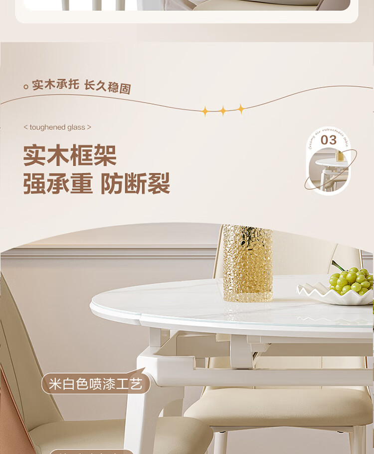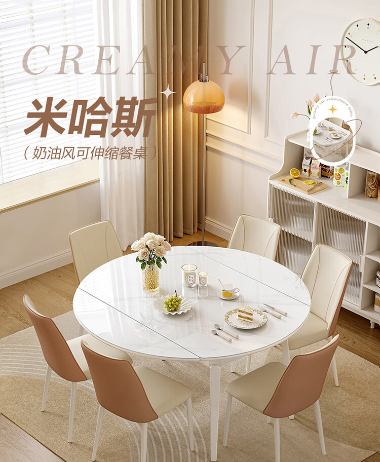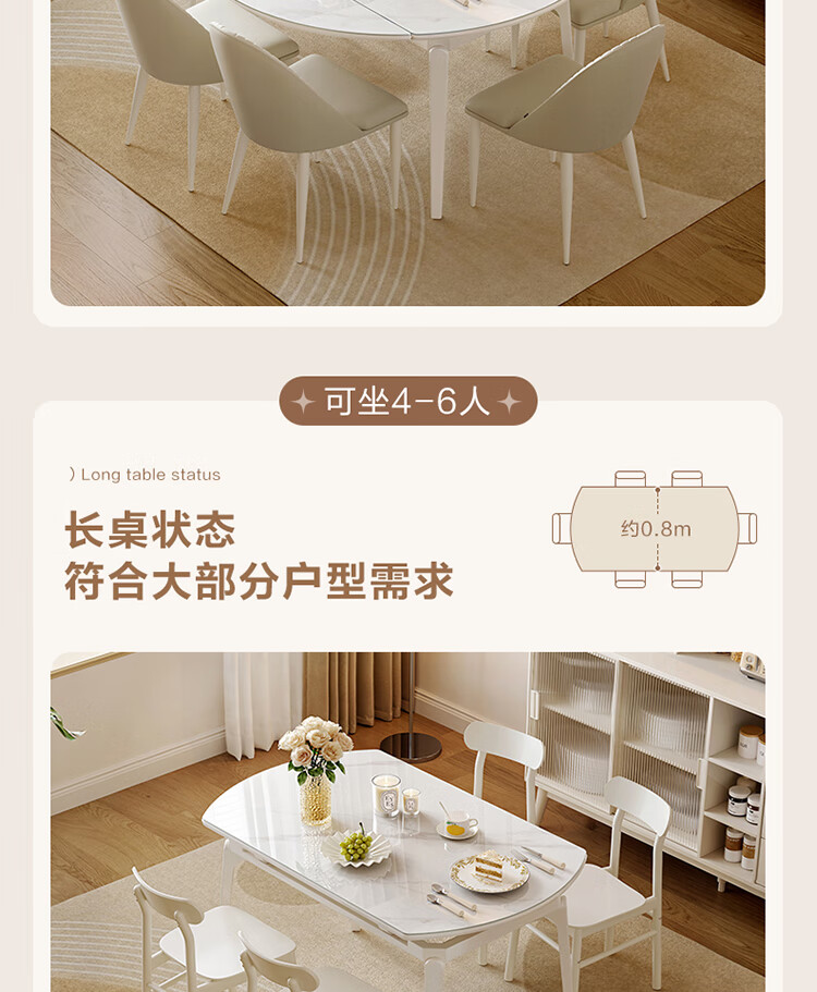 全友家居 现代奶油风餐桌椅子全套客厅多功能可折叠伸缩饭桌家用4-6人