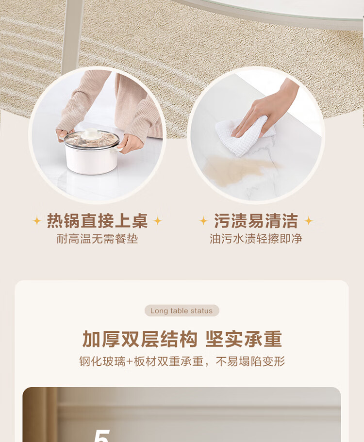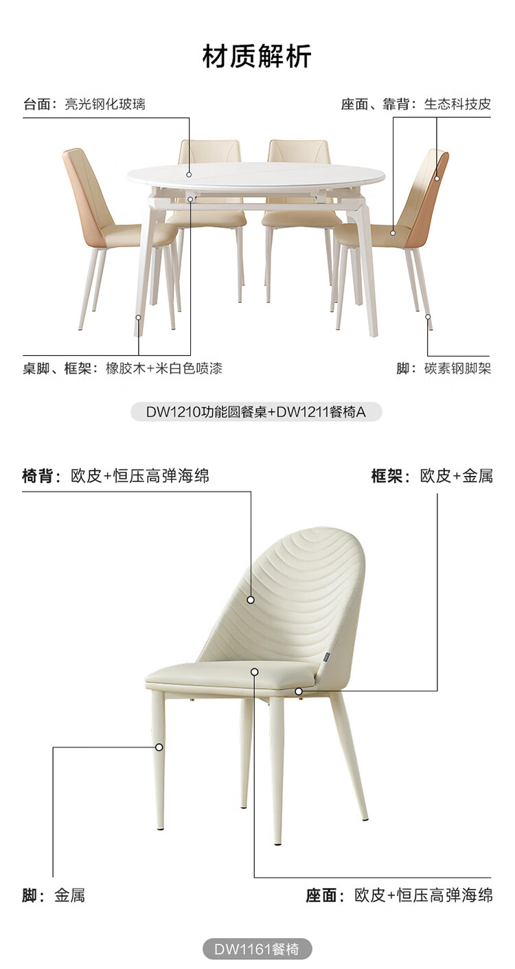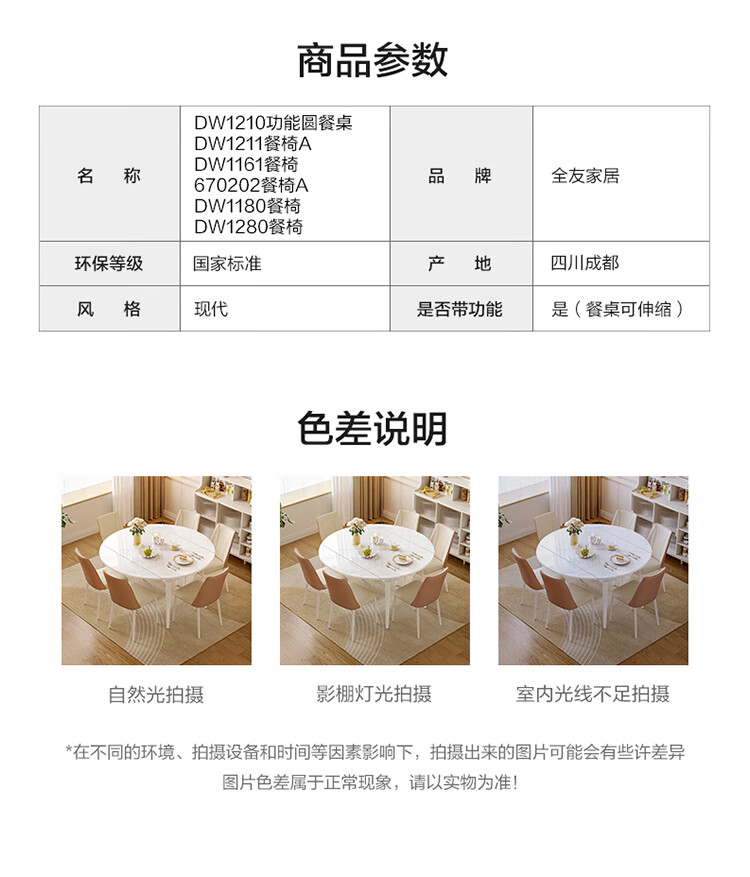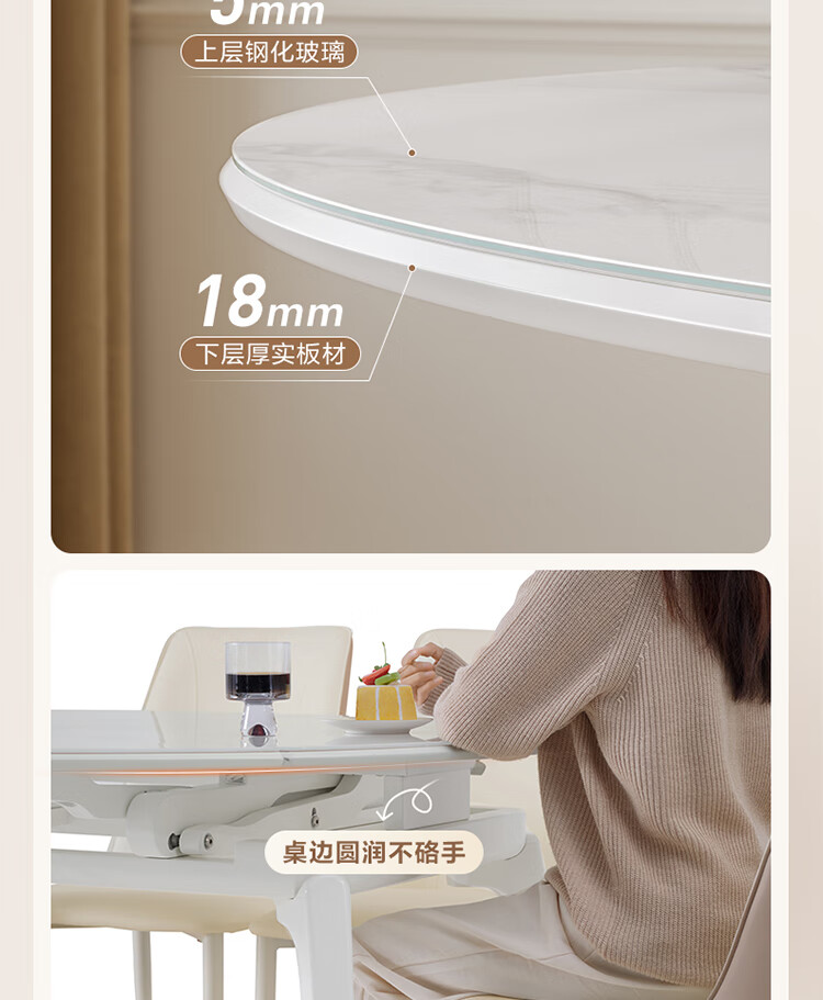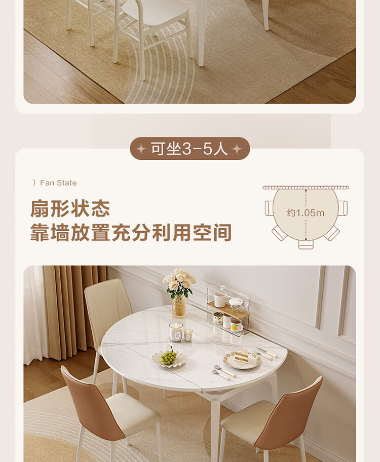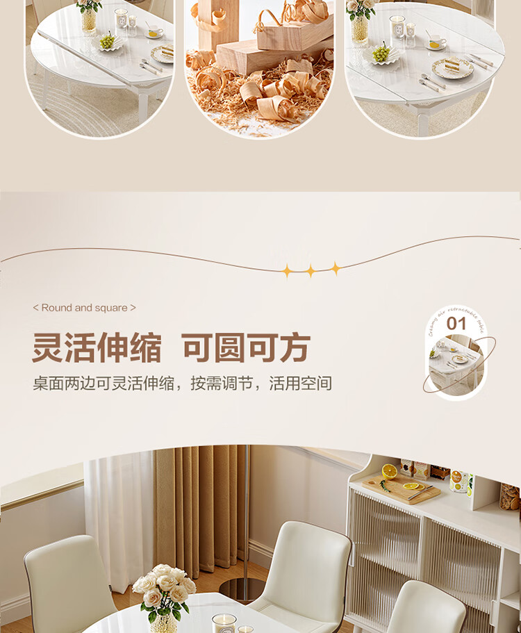 全友家居 现代奶油风餐桌椅子全套客厅多功能可折叠伸缩饭桌家用4-6人