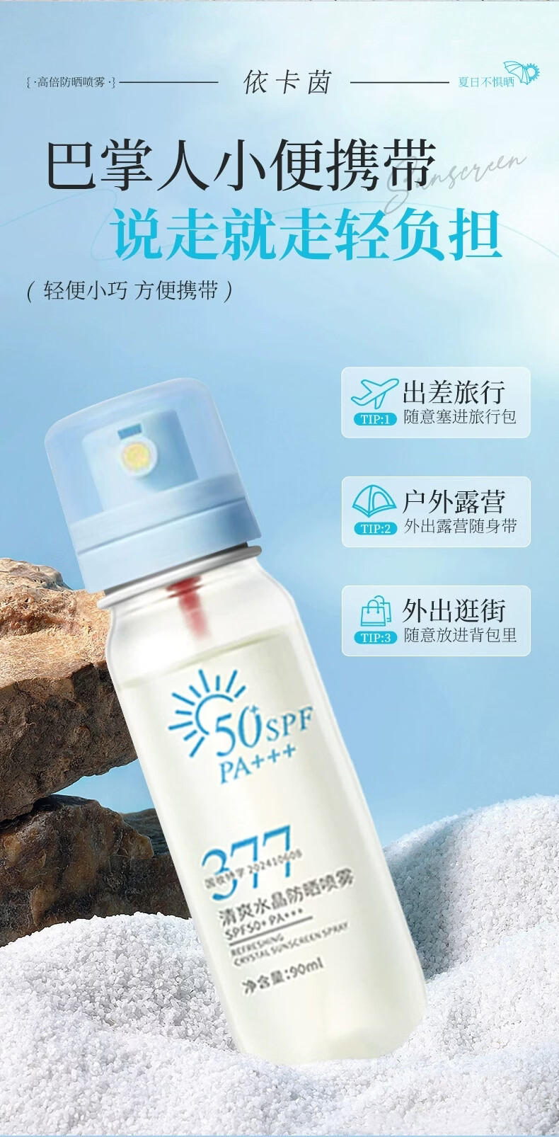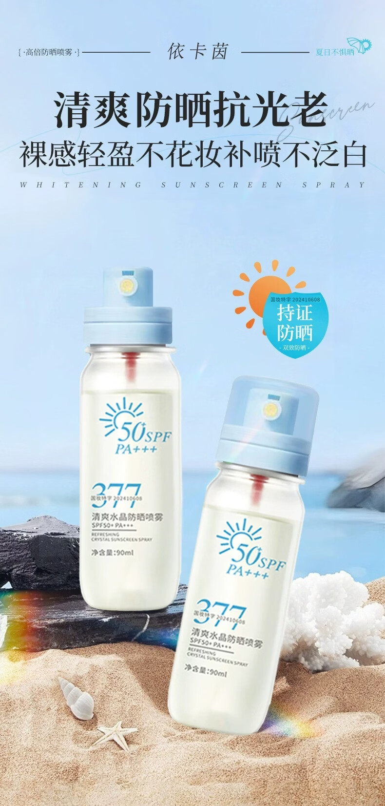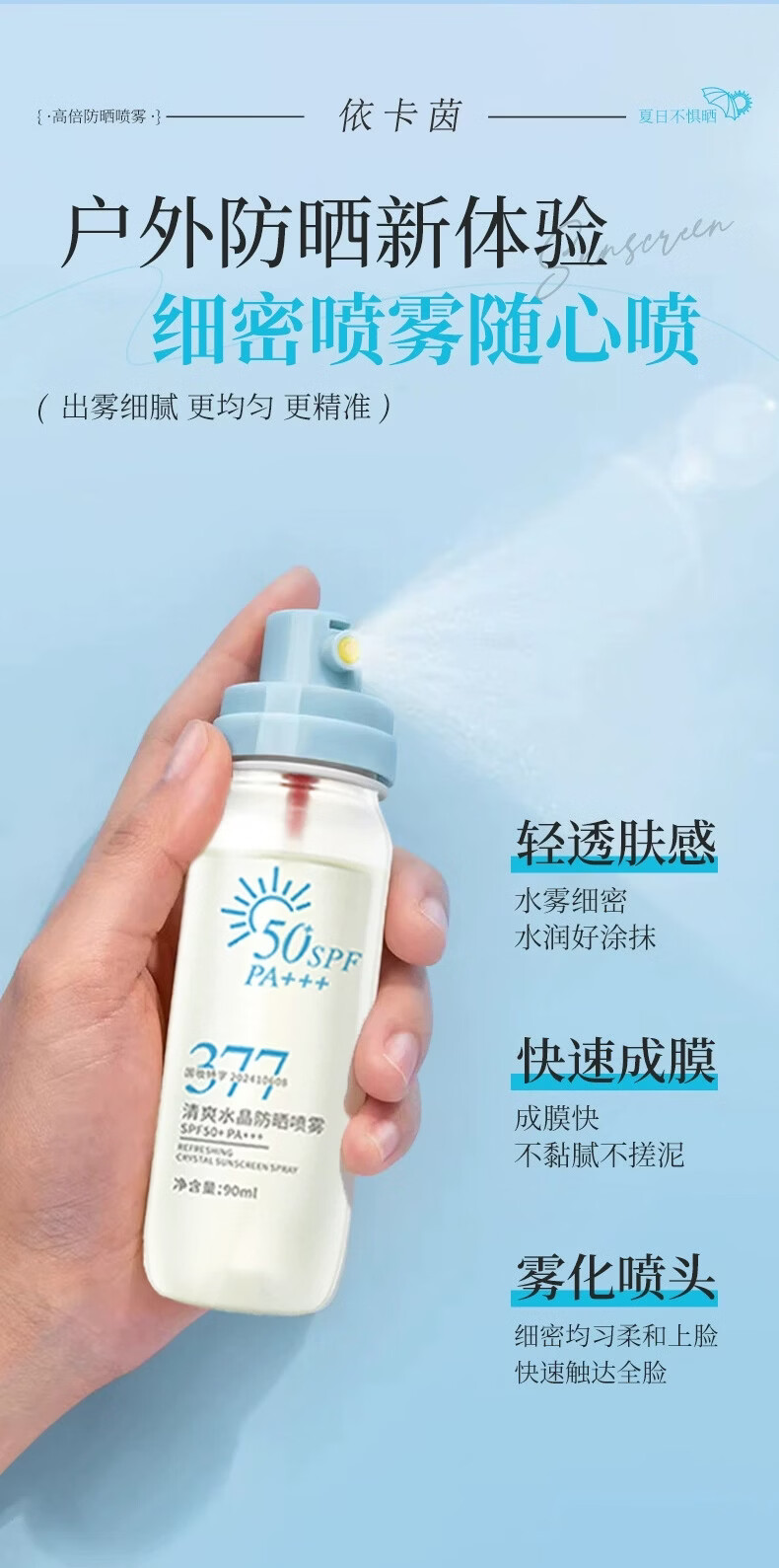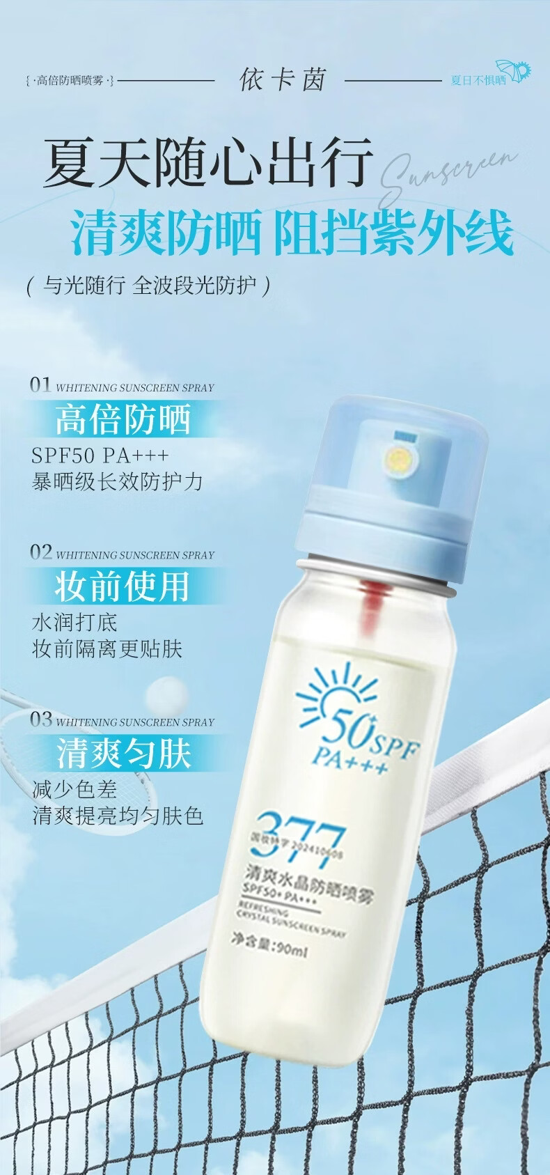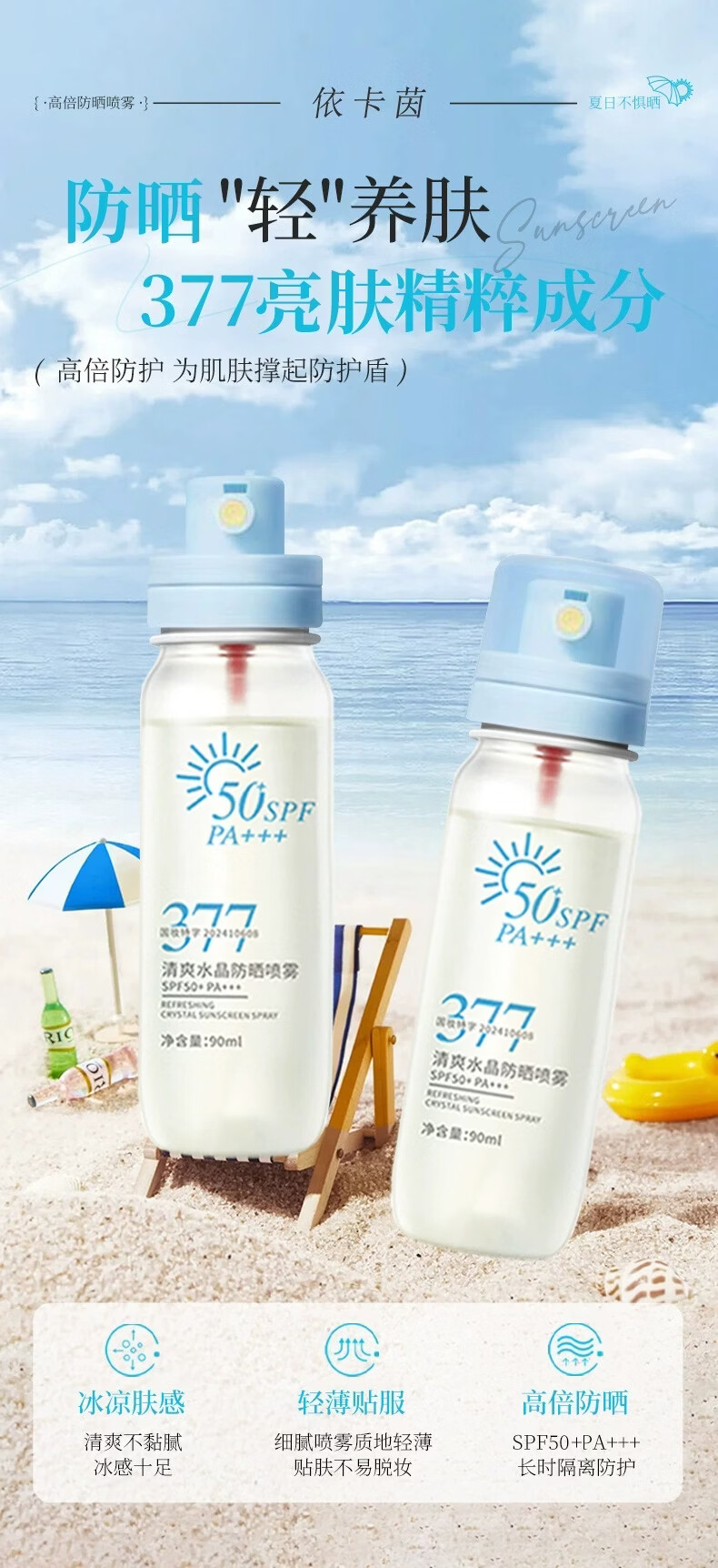 VSZE377清爽水晶防晒喷雾SPF50+高倍防晒防紫外线防水汗持久隔离 377清爽水晶防晒喷雾90ml×1瓶